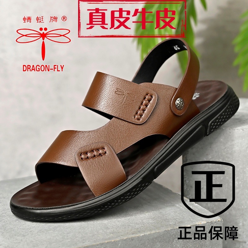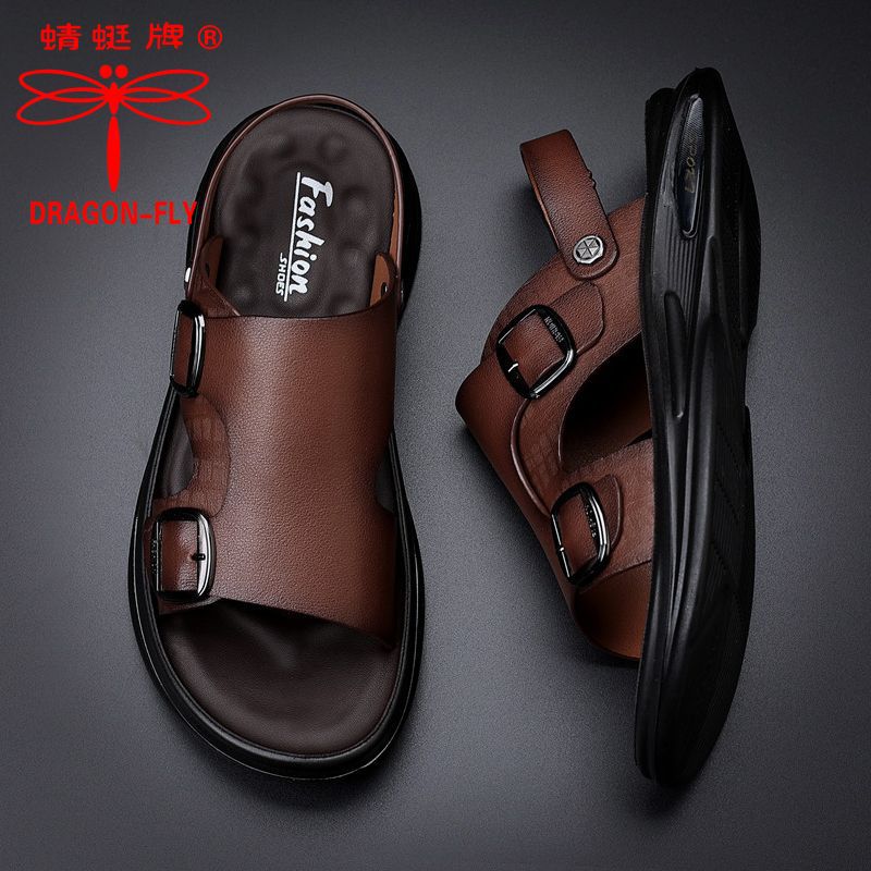 蜻蜓牌凉鞋男士防滑防水夏天两用凉拖鞋真皮男款厚底外穿沙滩鞋男