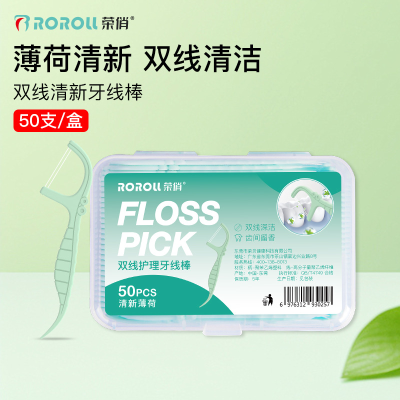 现货批发超细双线牙线薄荷味牙线棒高拉力盒装50支外贸英文新品