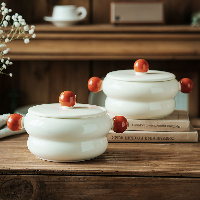 精致双耳碗可爱球球手柄陶瓷碗家用碗高颜值收纳餐具碗泡面碗