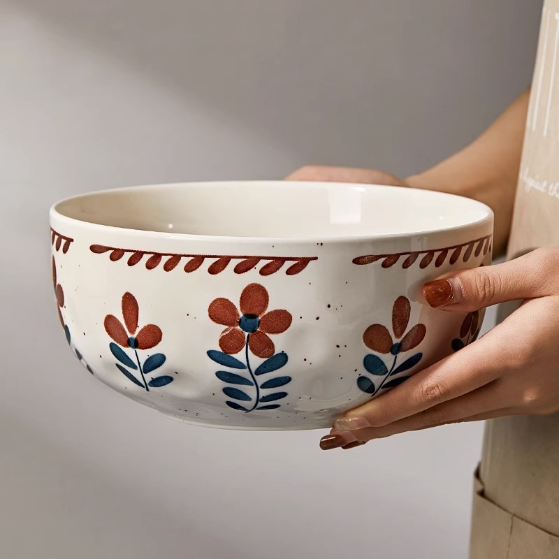 奶油风8寸大汤碗家用新款大号陶瓷泡面碗喝汤釉下彩大碗汤盆