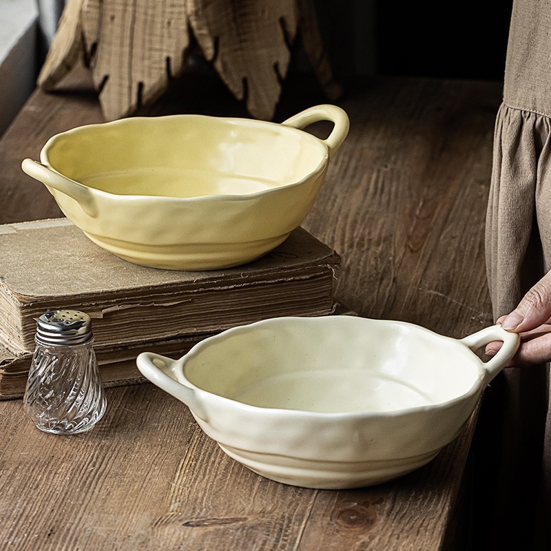 复古有创意陶瓷双耳碗6英寸带耳碗沙拉碗家用泡面碗咖喱饭碗餐具