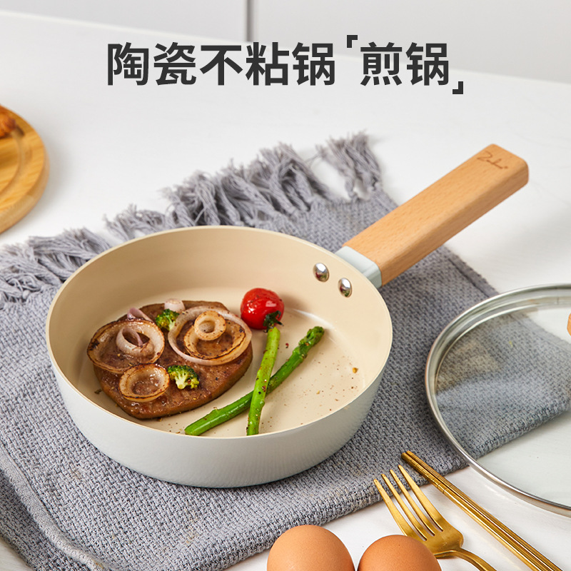 日式煎锅不粘锅陶瓷平底锅牛排迷你锅烙饼电磁炉专用炒菜锅煎蛋锅