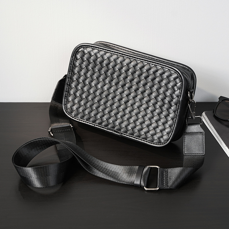 真编织男士通勤小方包 手工编织单肩包时尚小包男包街头休闲挎包