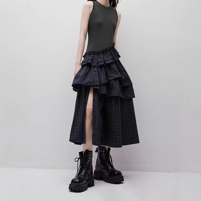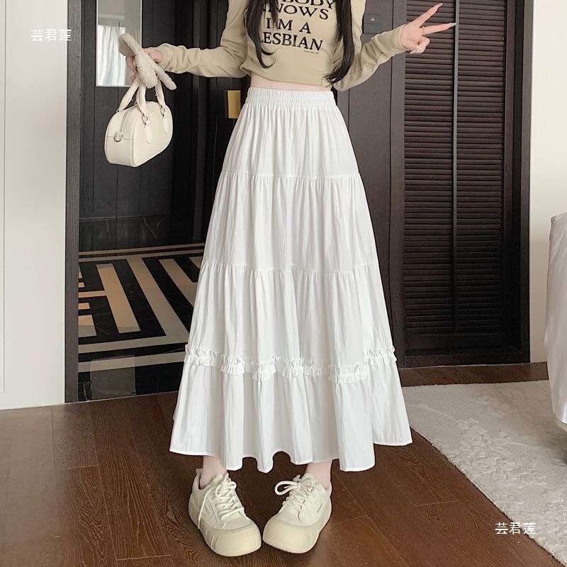 木耳边设计蛋糕半身裙女2025春夏高腰显瘦垂感中长款A字大摆伞裙