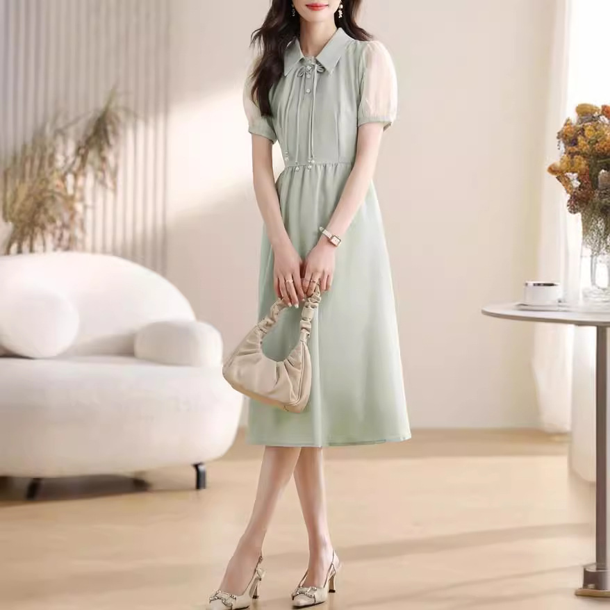 茶歇法式显瘦连衣裙夏季女新款新中式高级感气质收腰温柔长裙