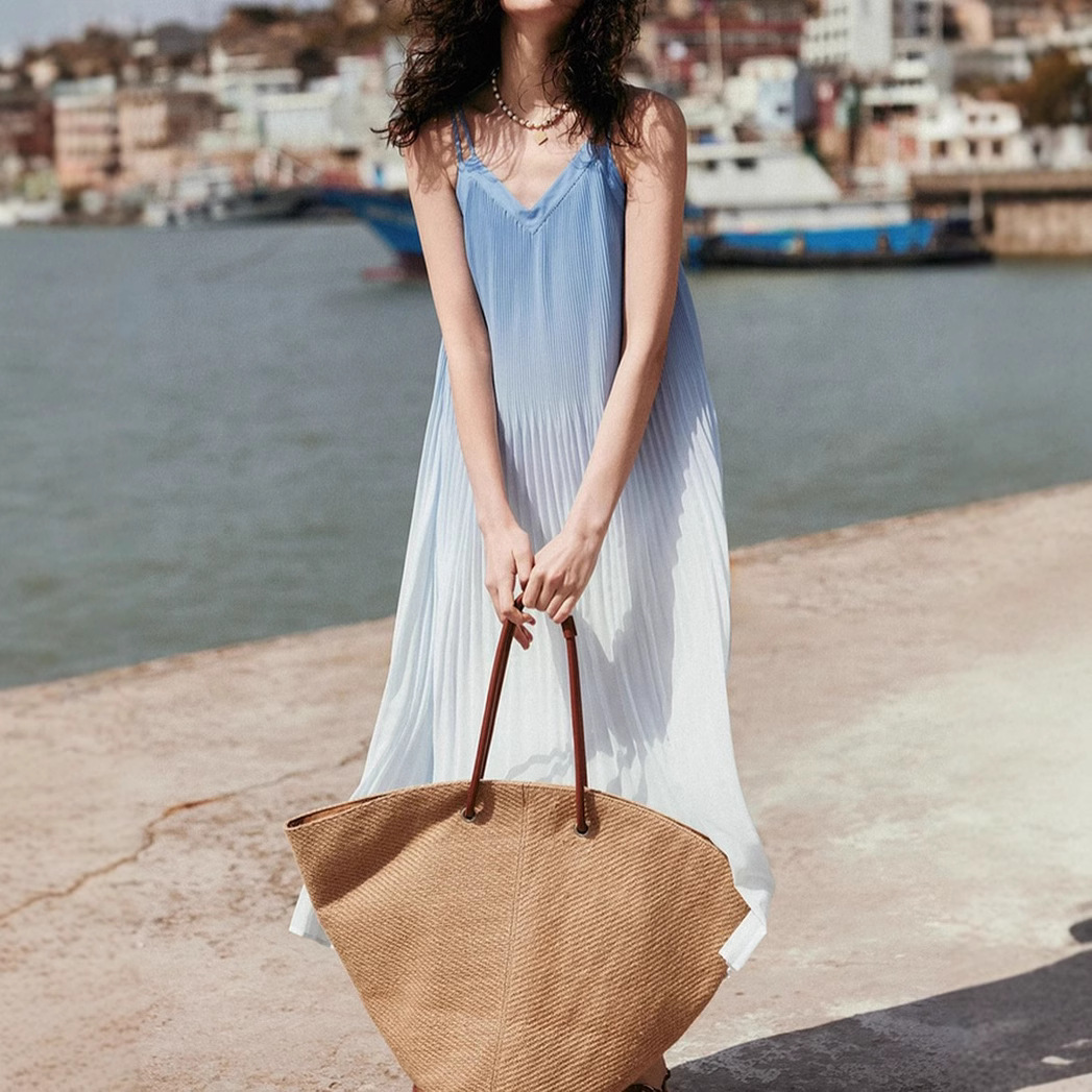 ELEL 法式海边度假风渐变吊带连衣裙女2025夏新款长款无袖海浪裙