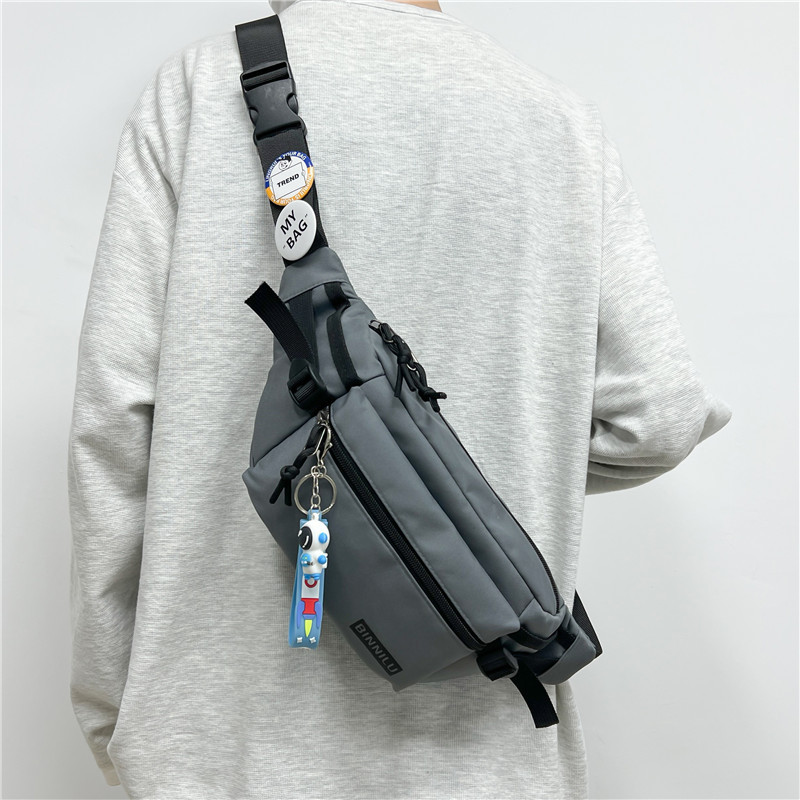 潮牌复古日系简约运动胸包男百搭防水日系斜挎包骑行运动腰包女生