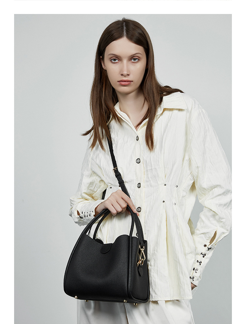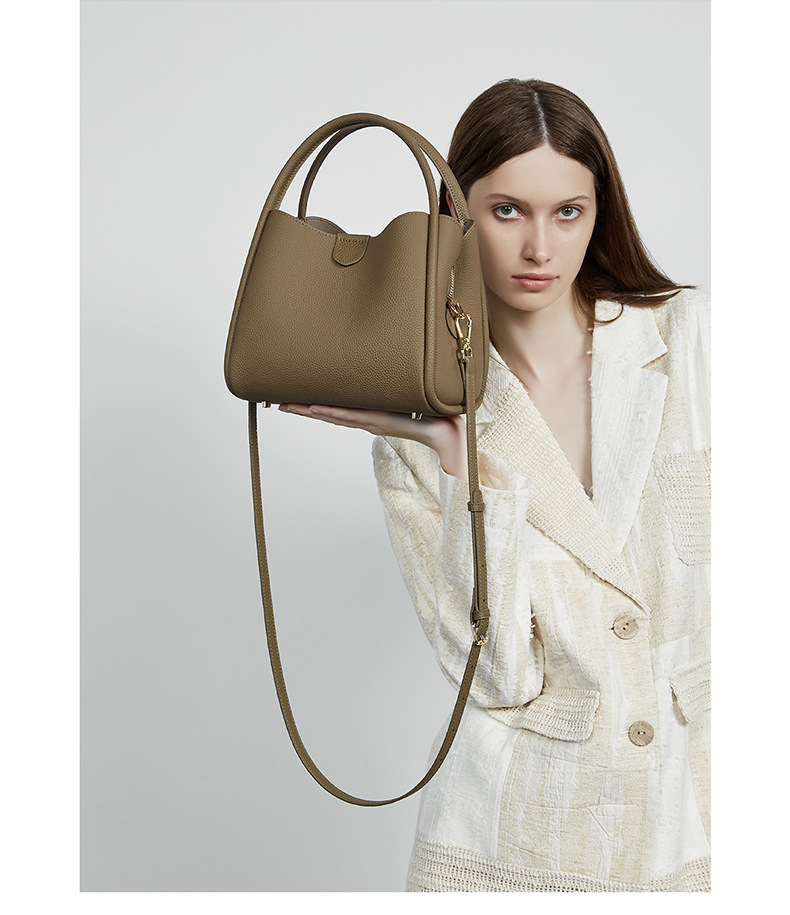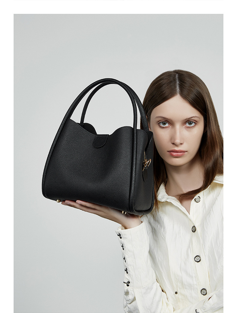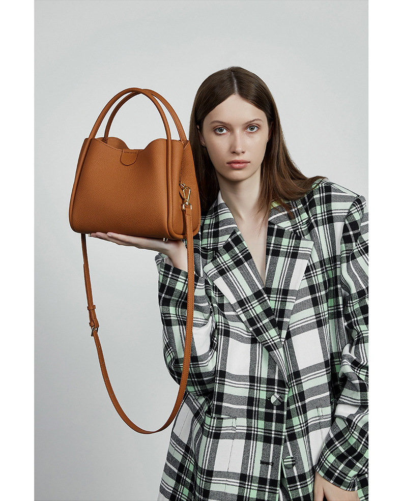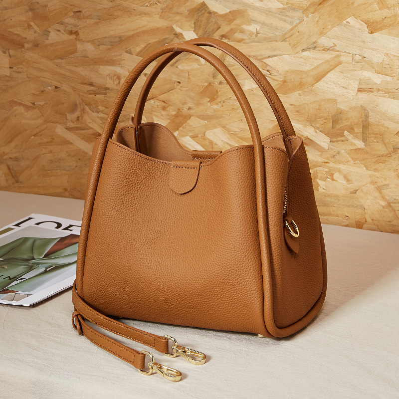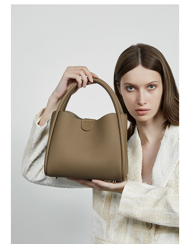 超火真皮女包春夏新款简约百搭斜挎包今年流行手提水桶包