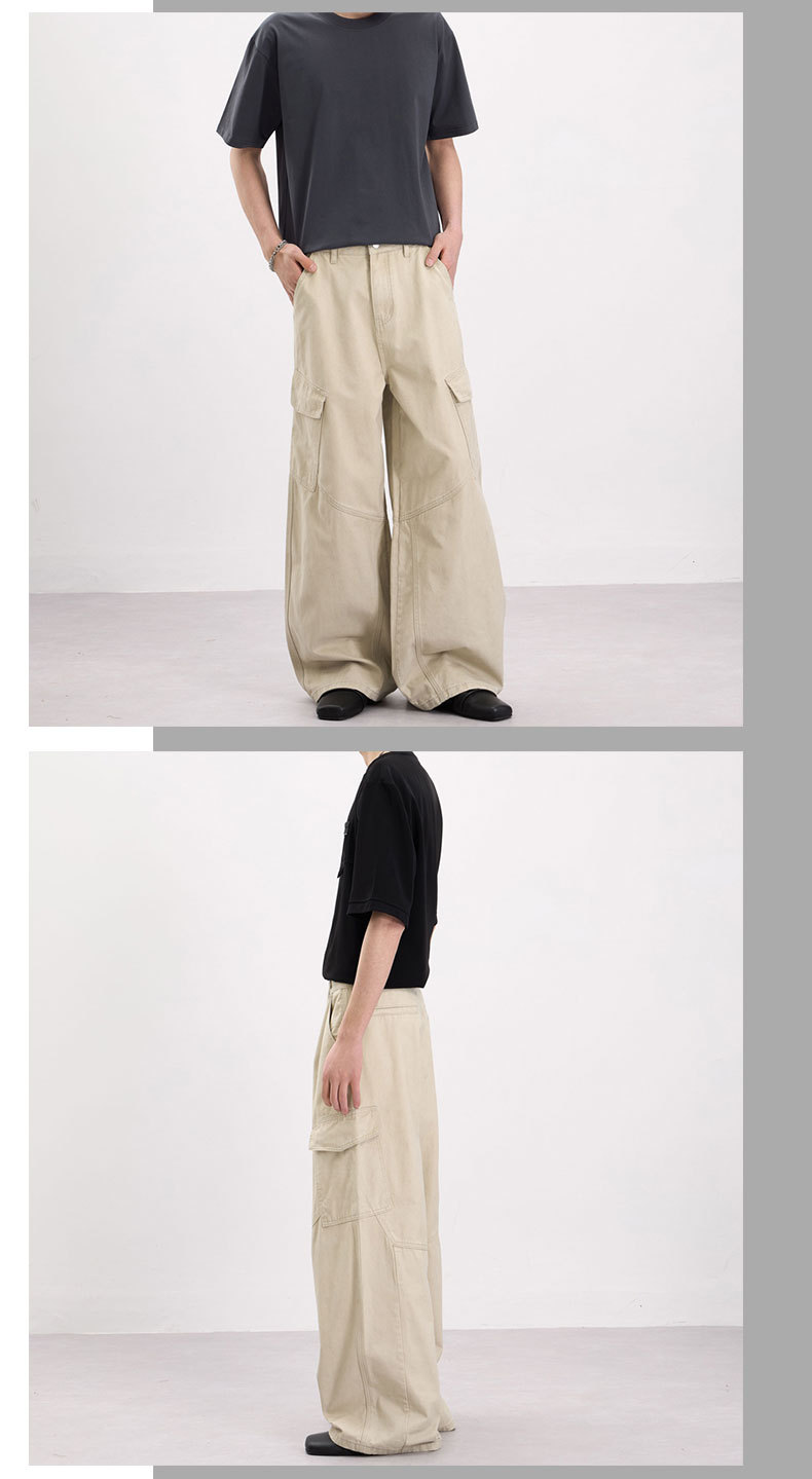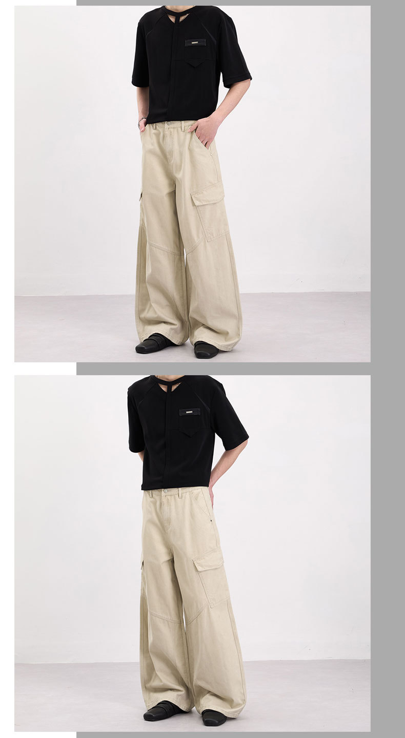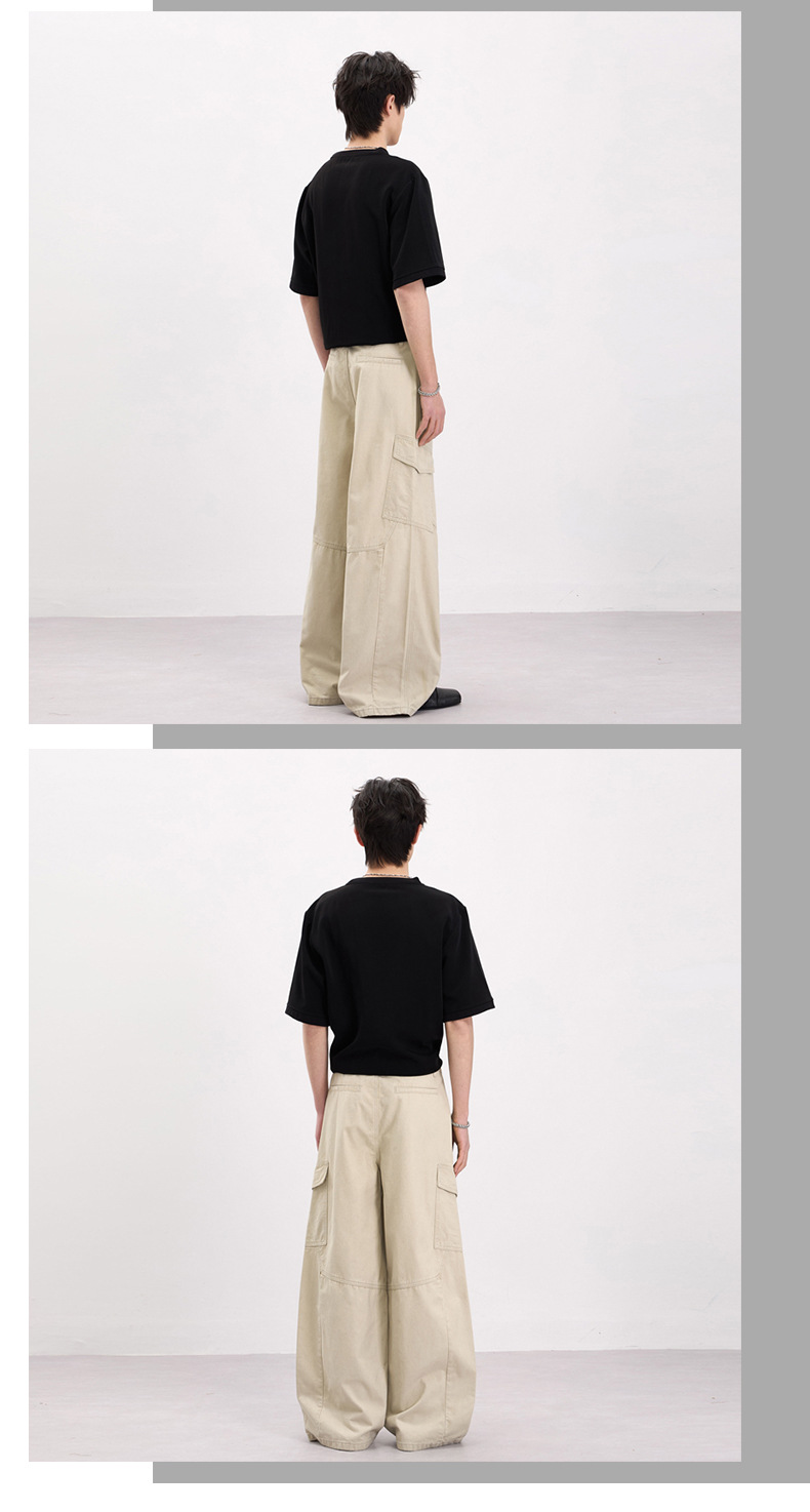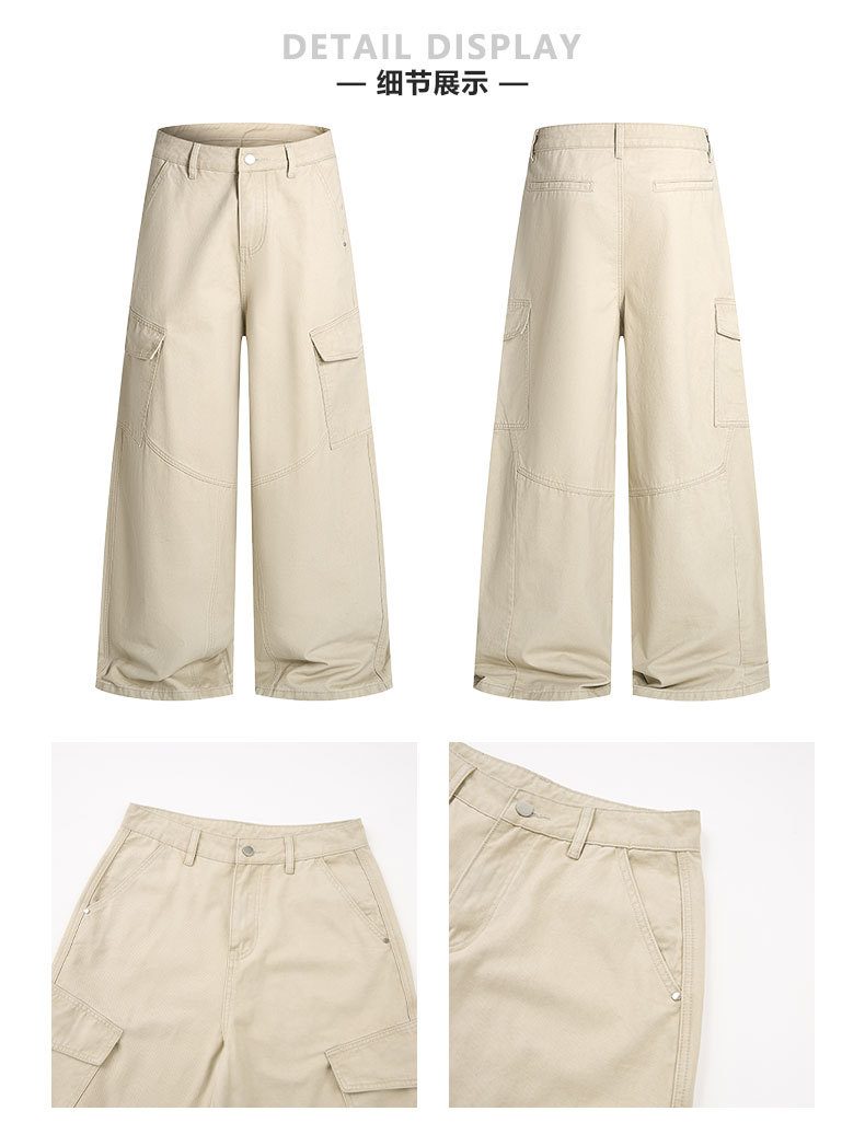 LKTM男装 美式复古侧边大口袋设计工装裤男女宽松慵懒休闲直筒裤