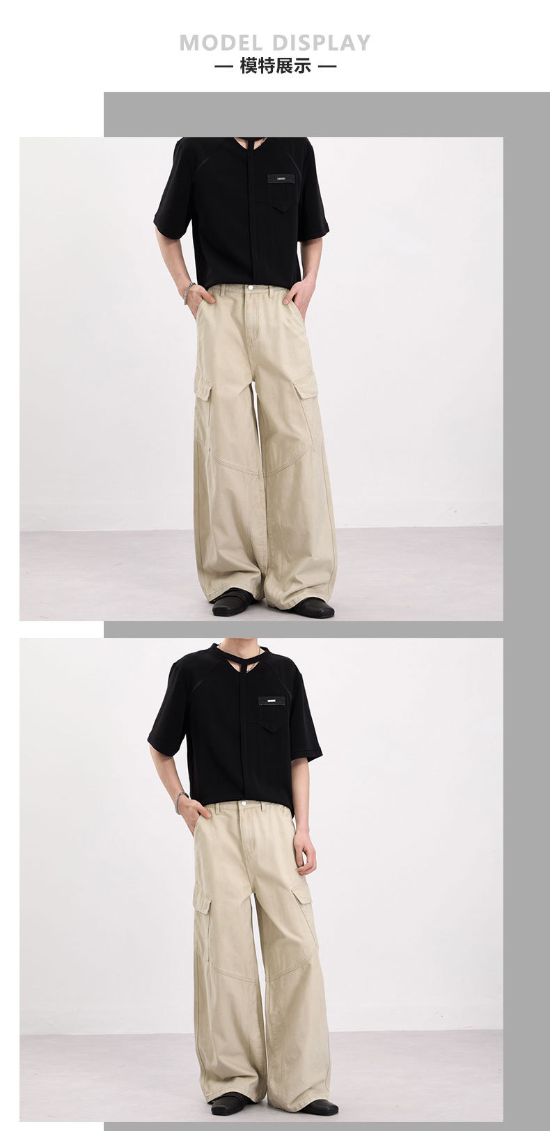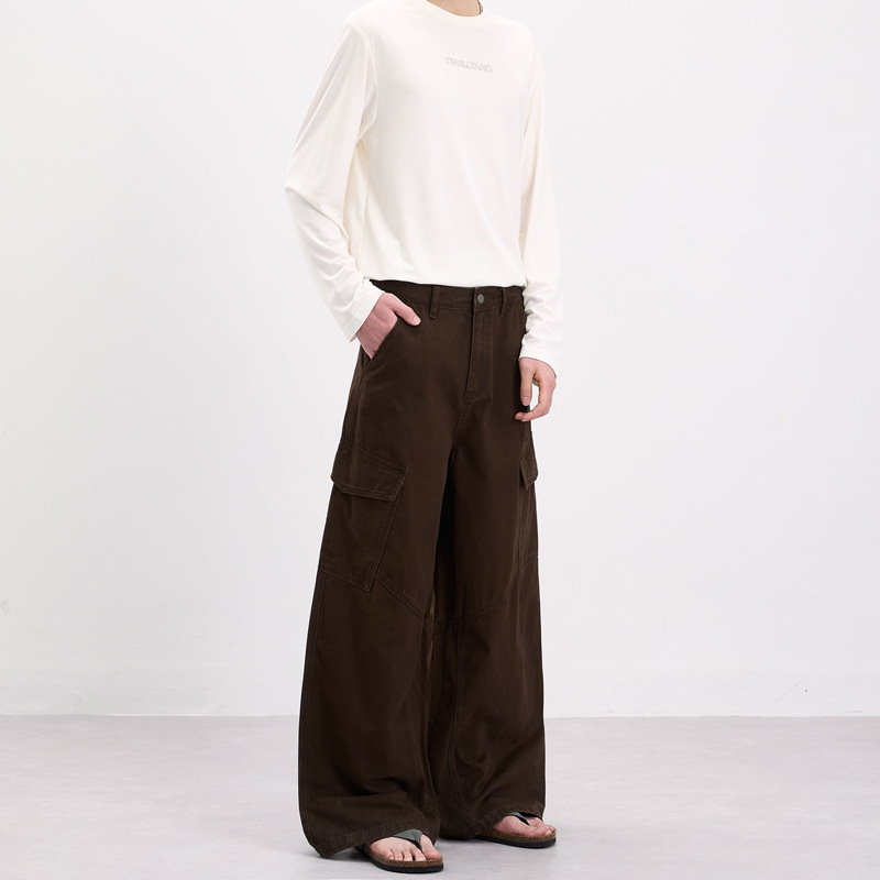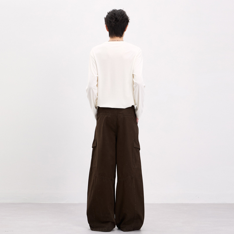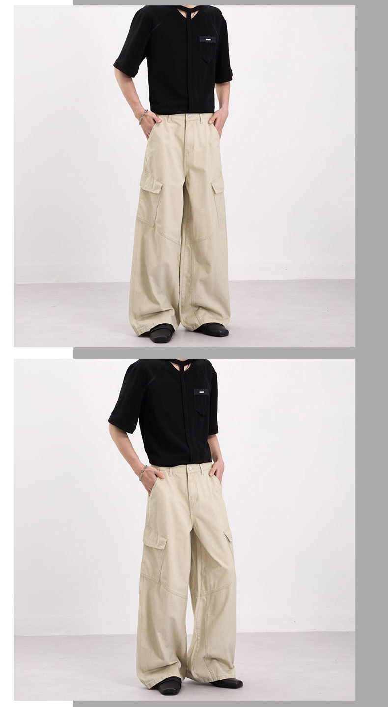 LKTM男装 美式复古侧边大口袋设计工装裤男女宽松慵懒休闲直筒裤