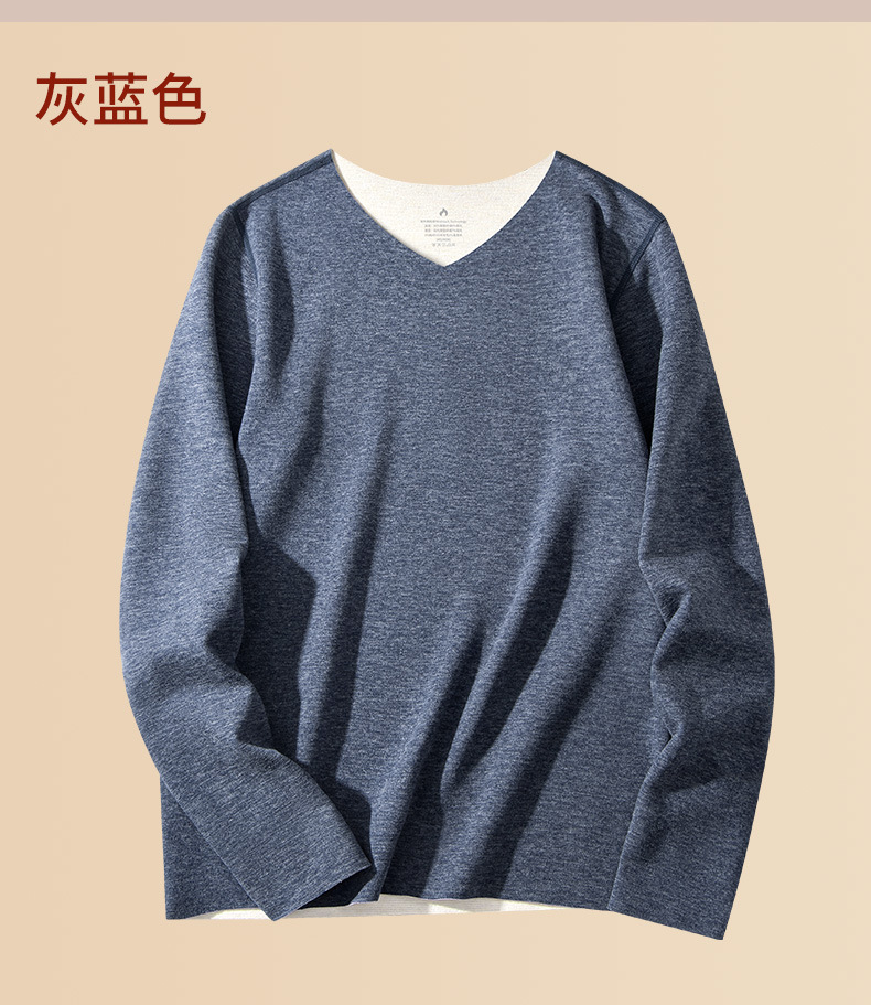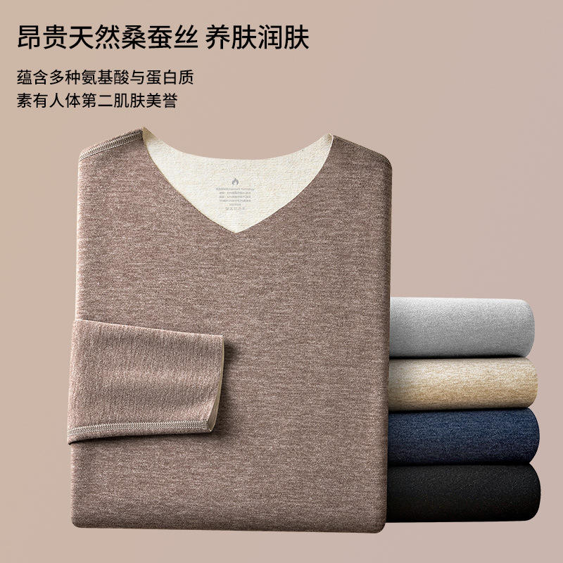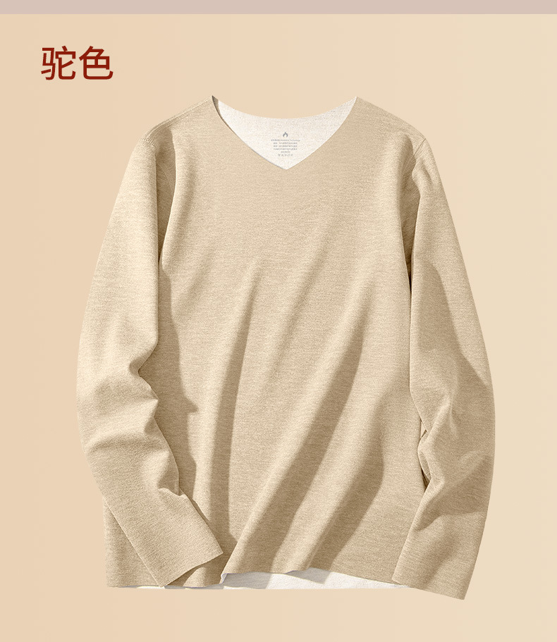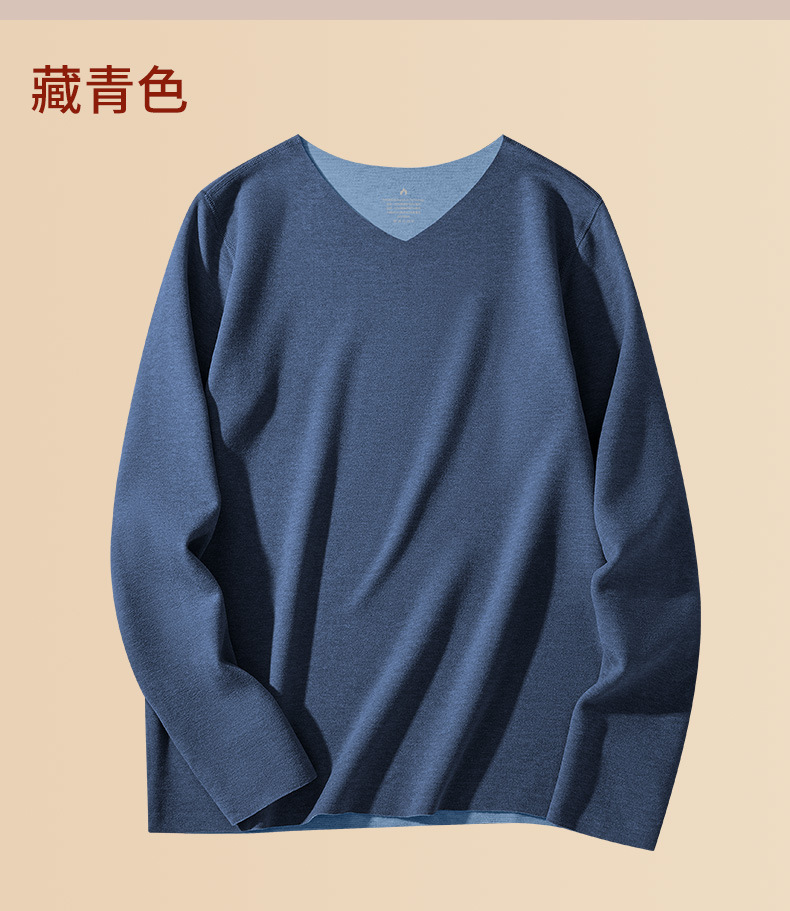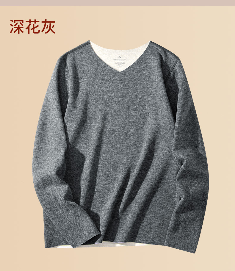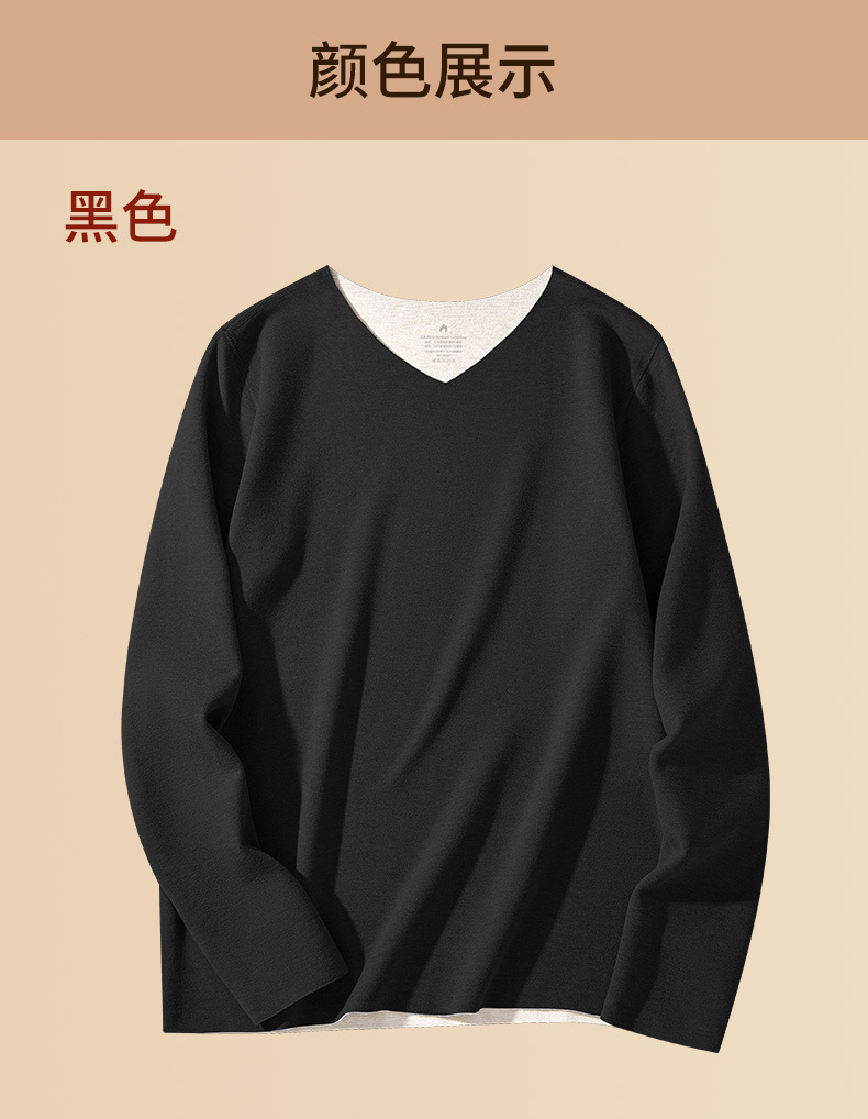 羊毛桑蚕丝德绒无痕保暖加绒内衣男士长袖t恤秋冬季新款v领打底衫