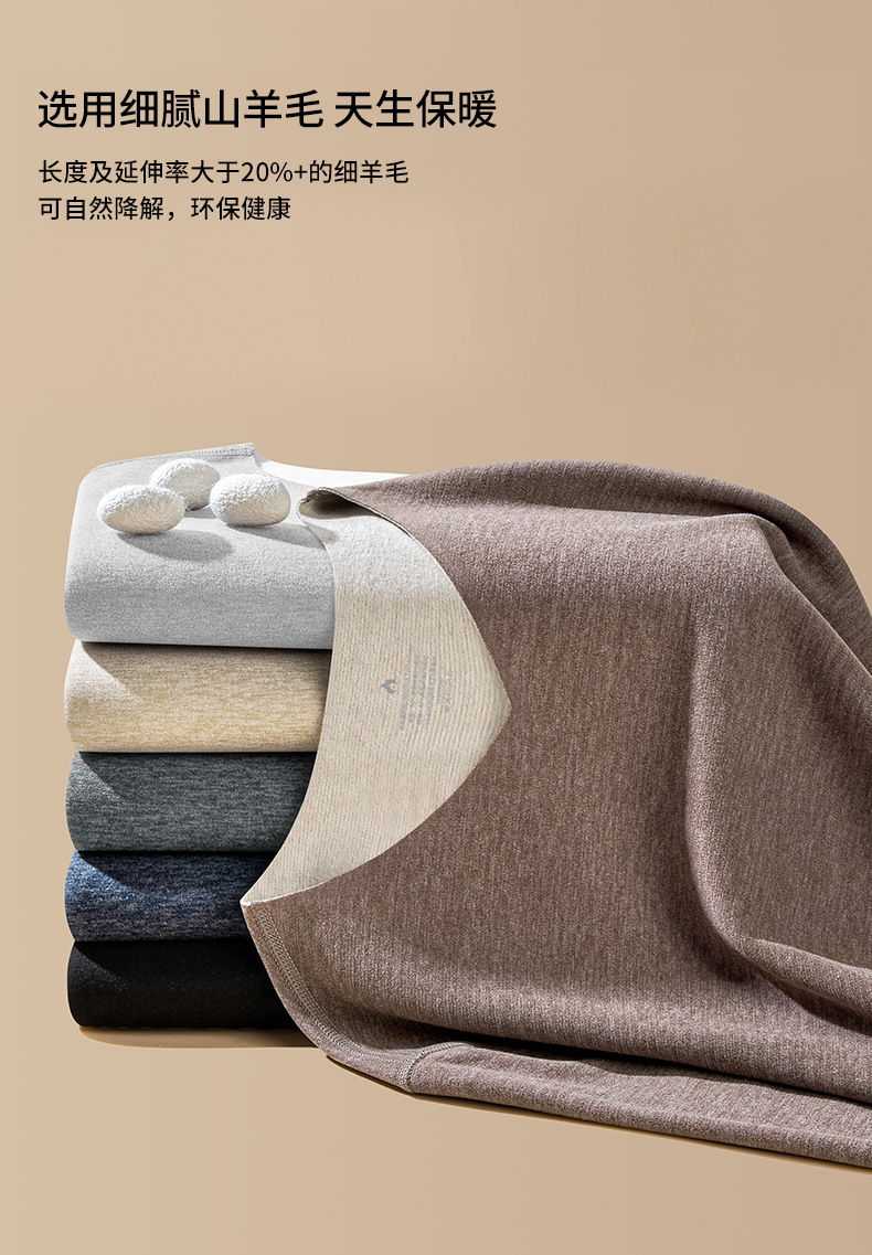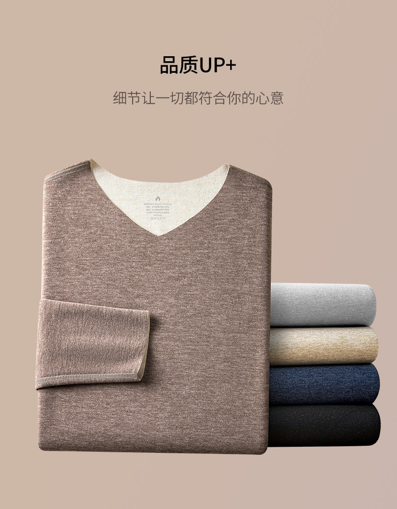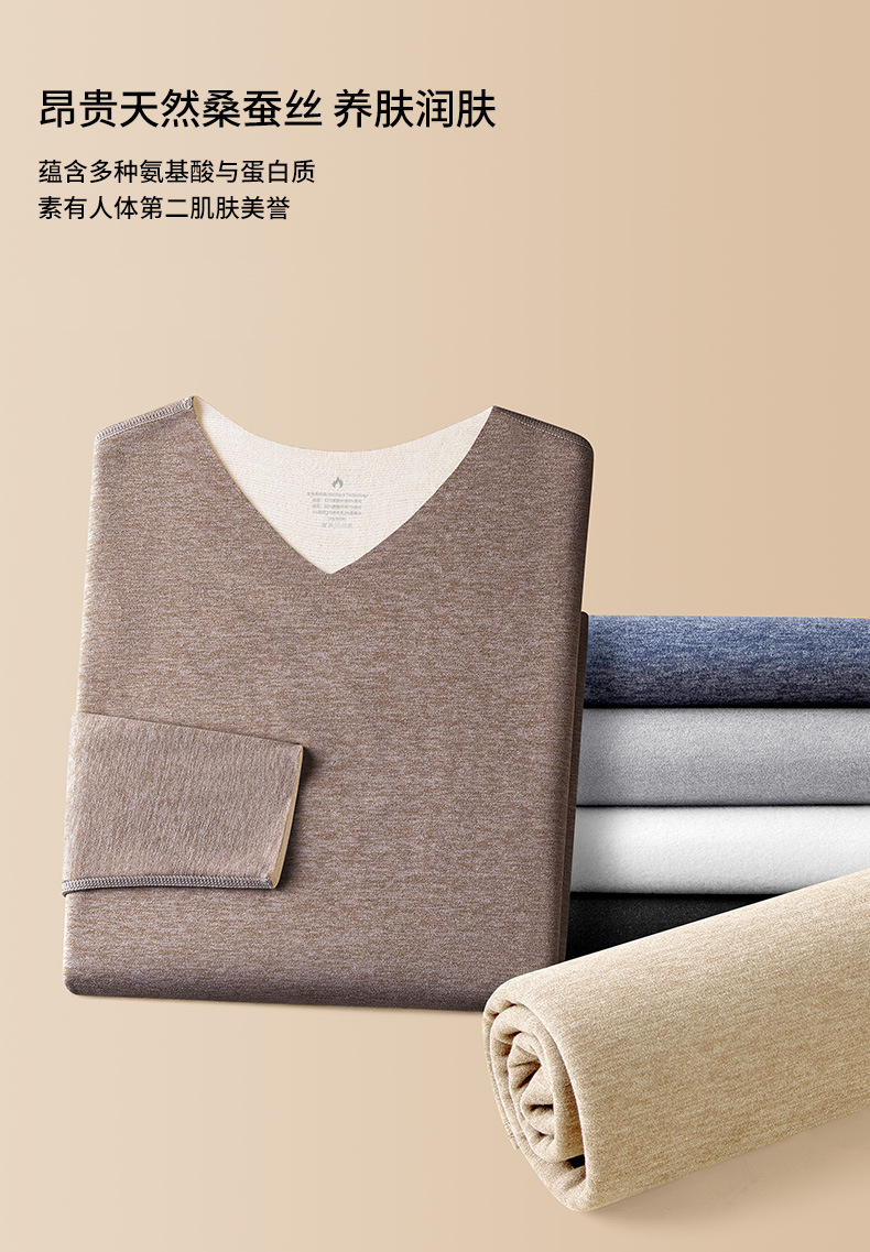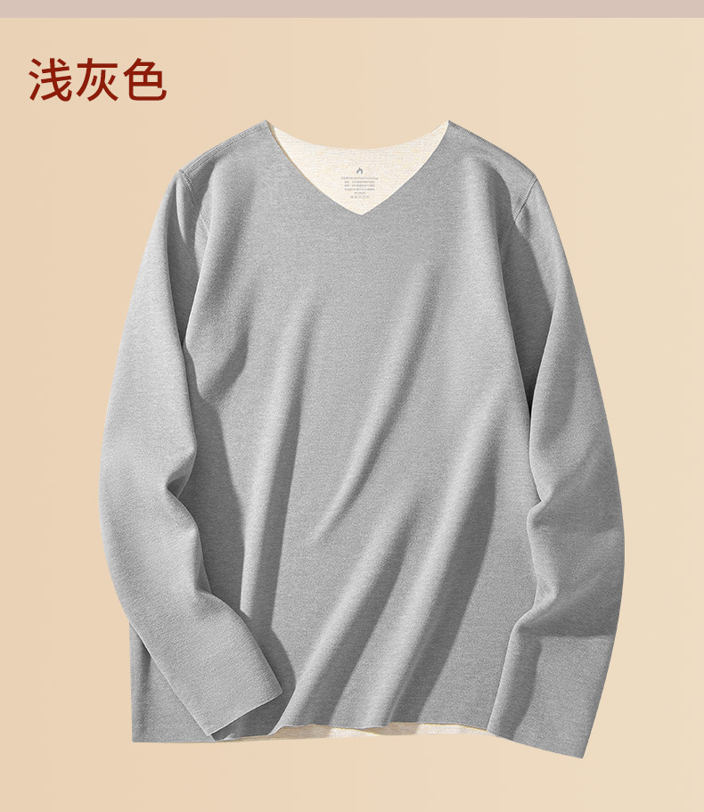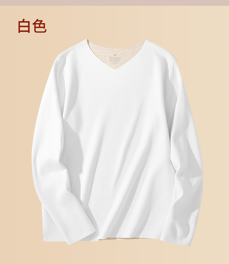 羊毛桑蚕丝德绒无痕保暖加绒内衣男士长袖t恤秋冬季新款v领打底衫