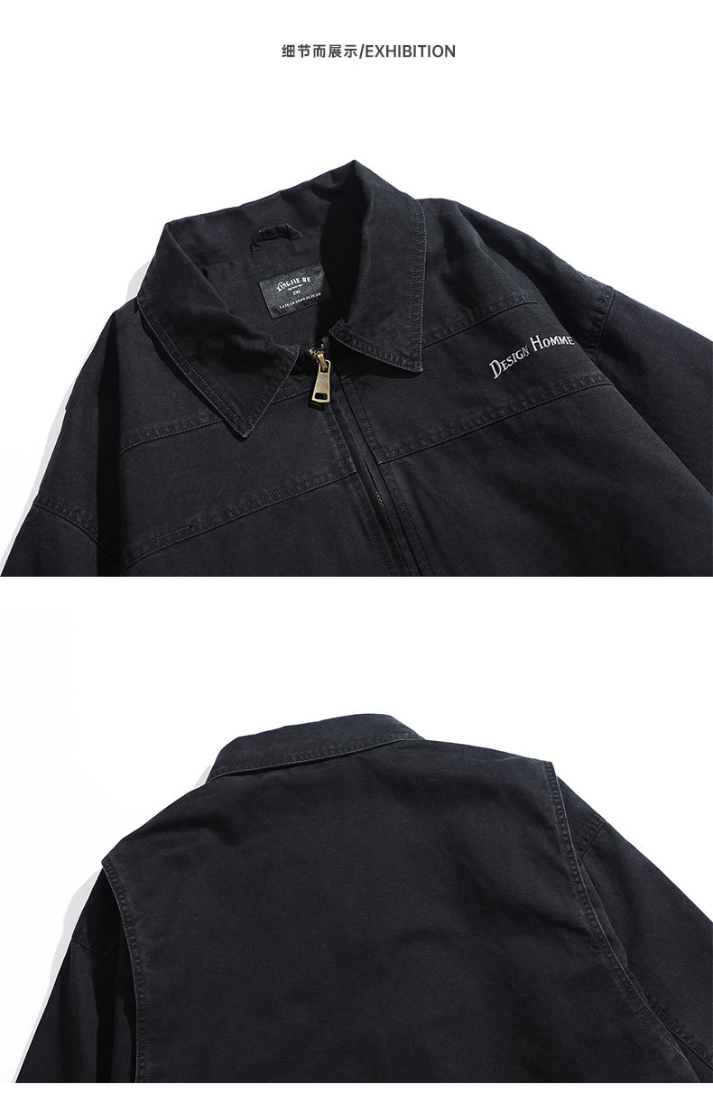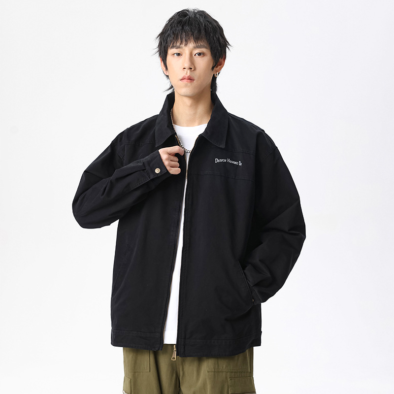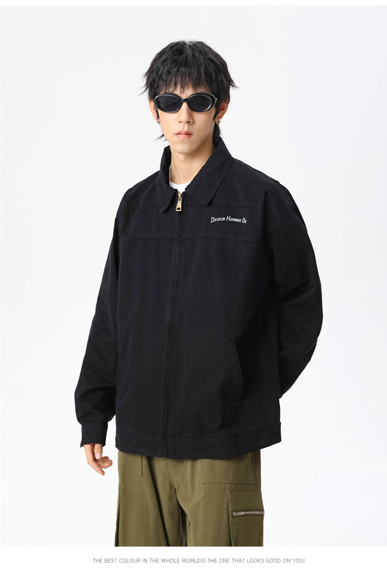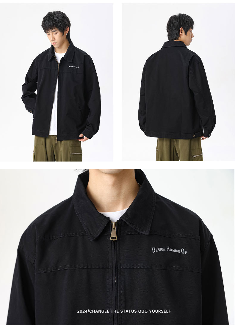 LKTM男装#重磅高密双经斜棉翻领刺绣夹克男潮牌百搭痞帅宽松外套