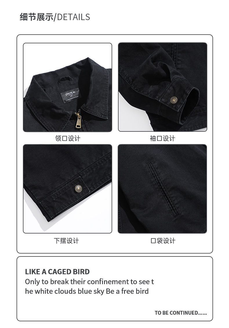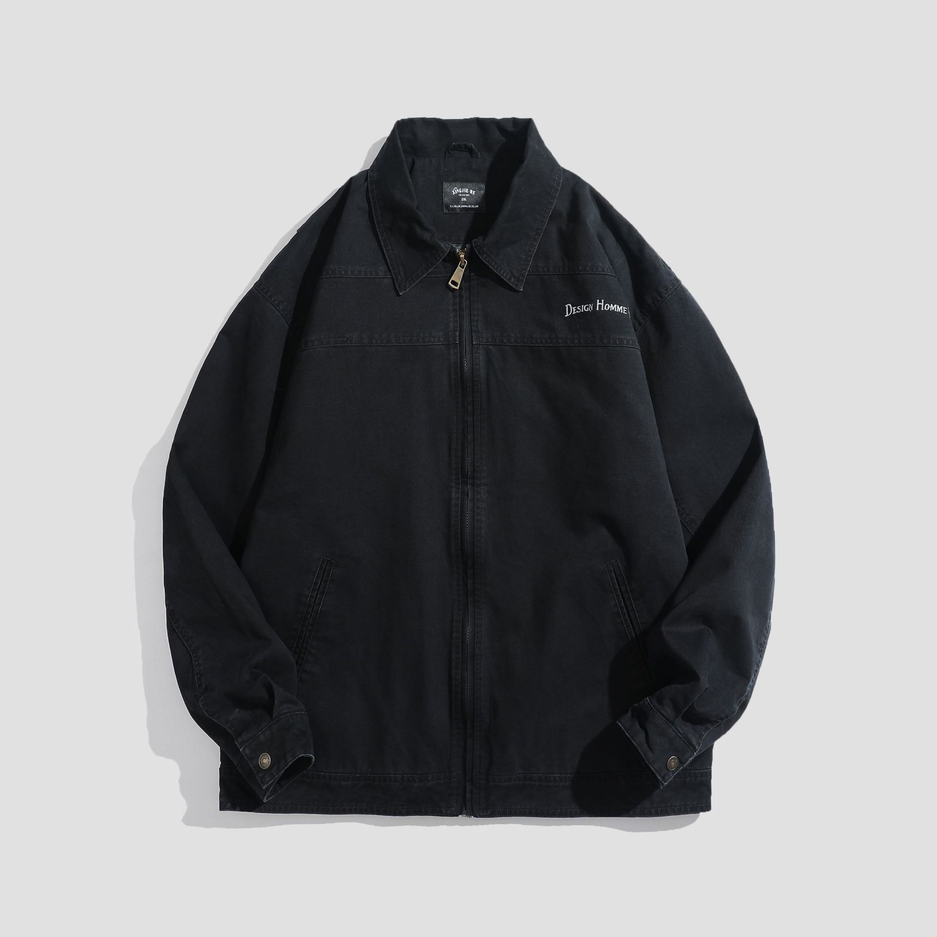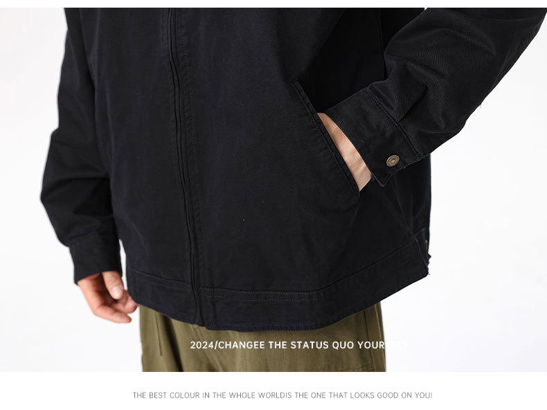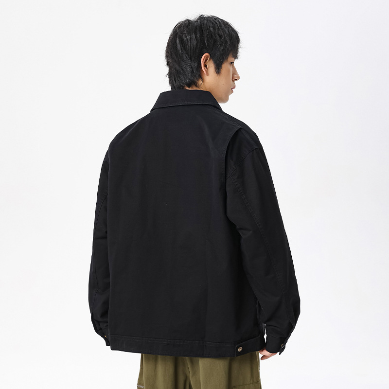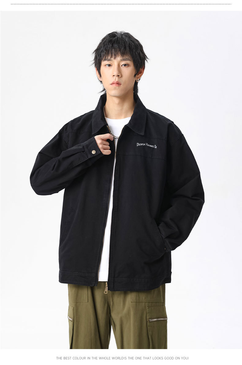 LKTM男装#重磅高密双经斜棉翻领刺绣夹克男潮牌百搭痞帅宽松外套