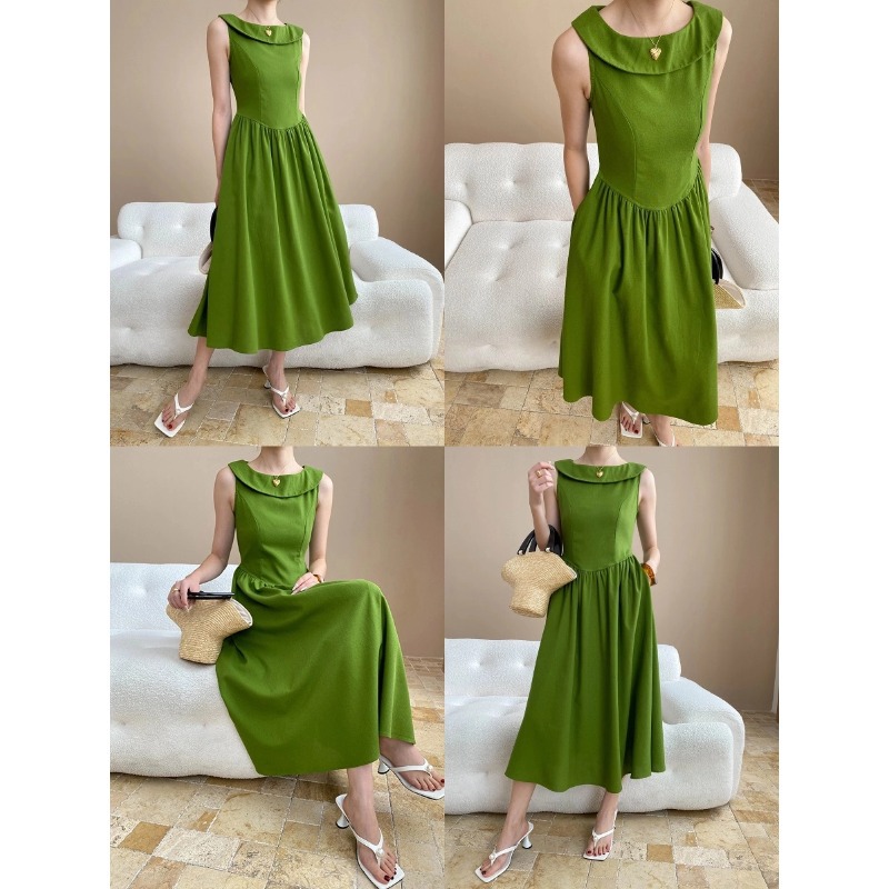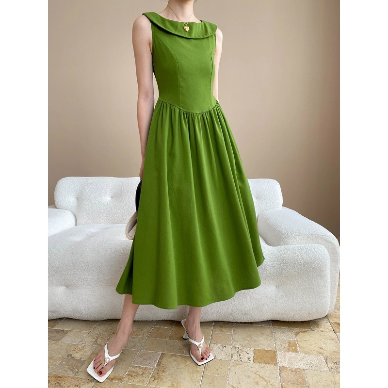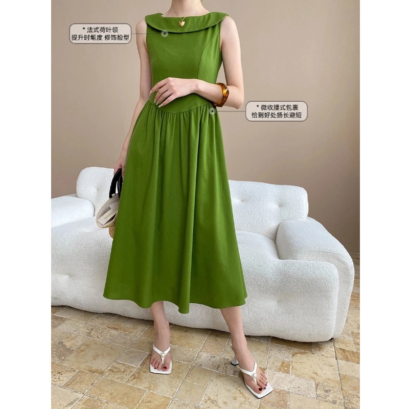 司南夏日曼波设计感法式荷叶领无袖气质收腰显瘦连衣裙