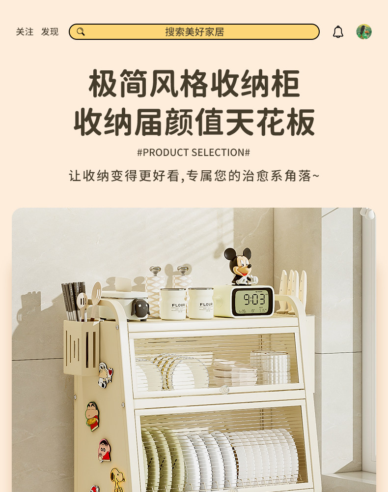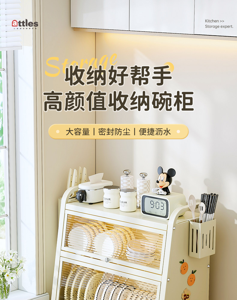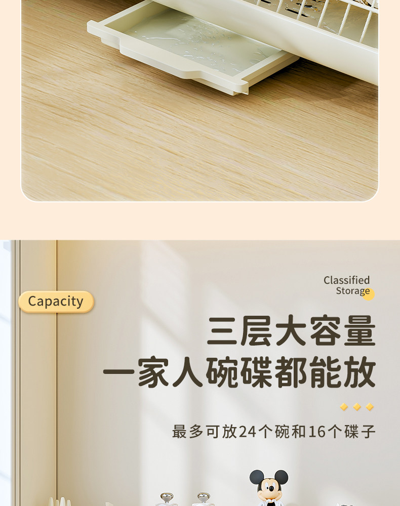 - 【42CM】奶白-三层碗碟柜(沥水盘)
