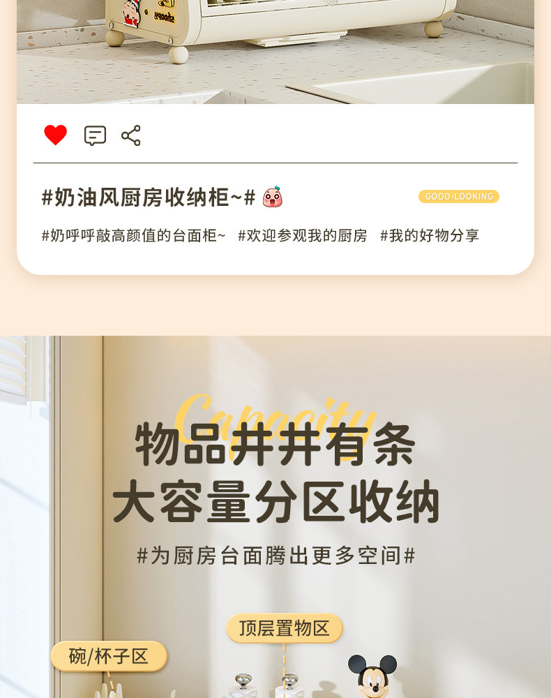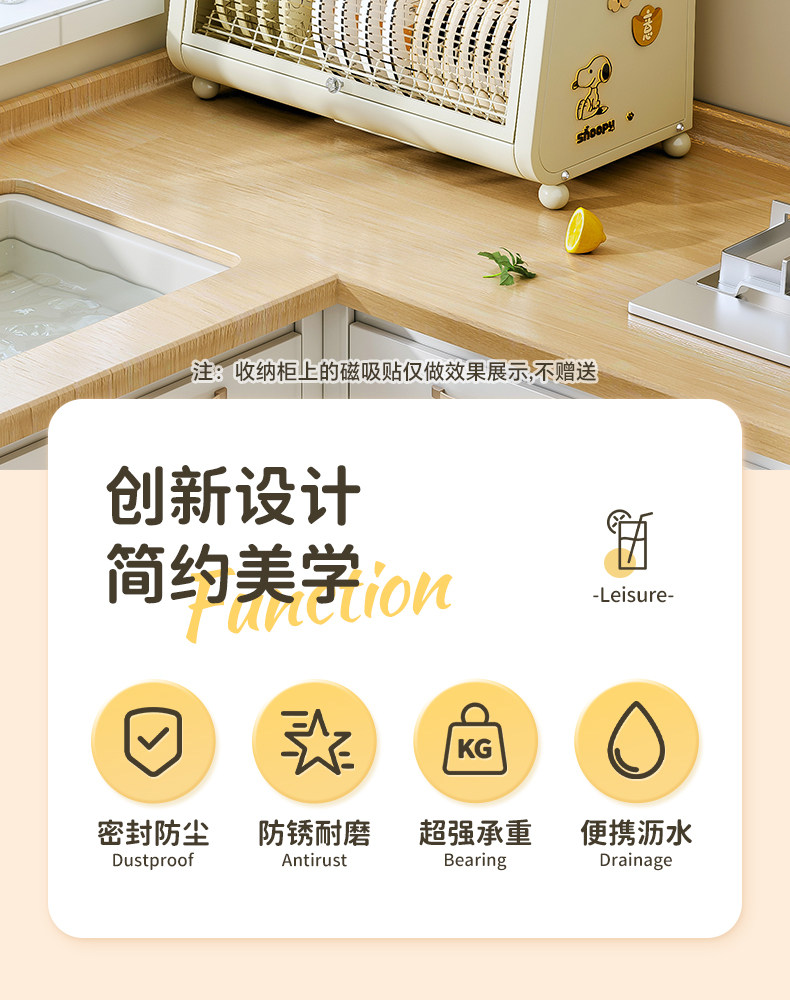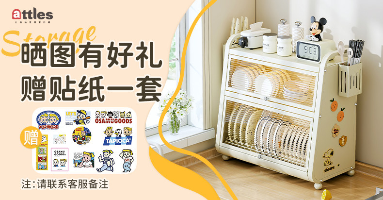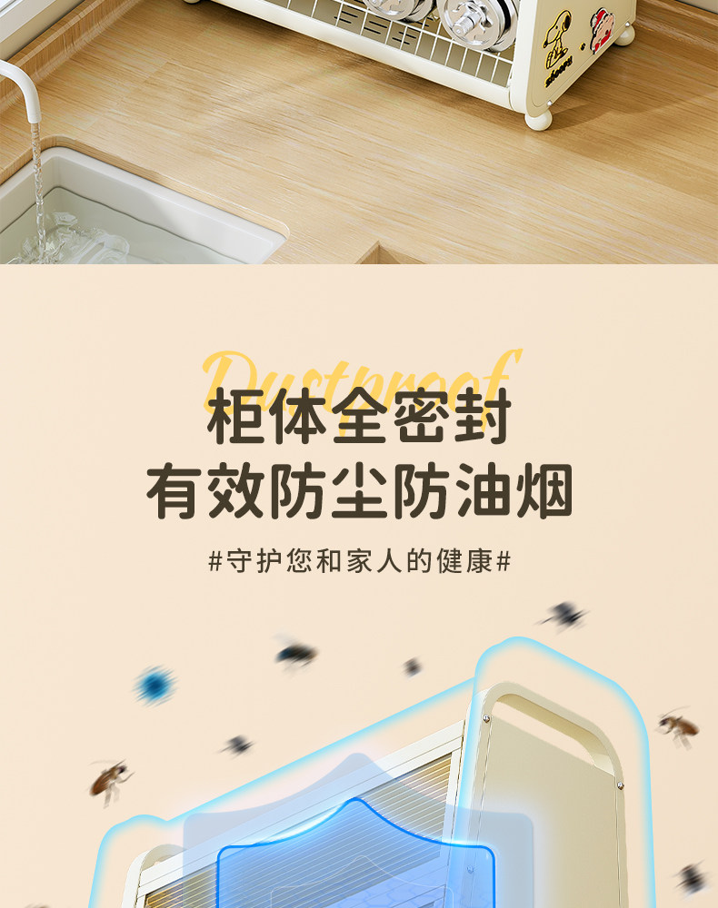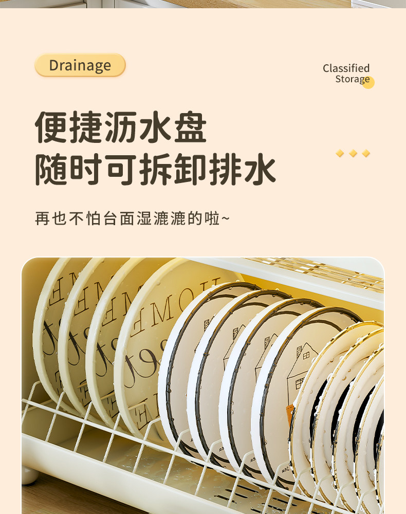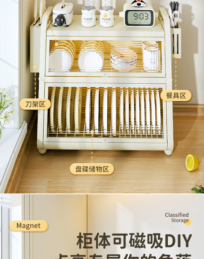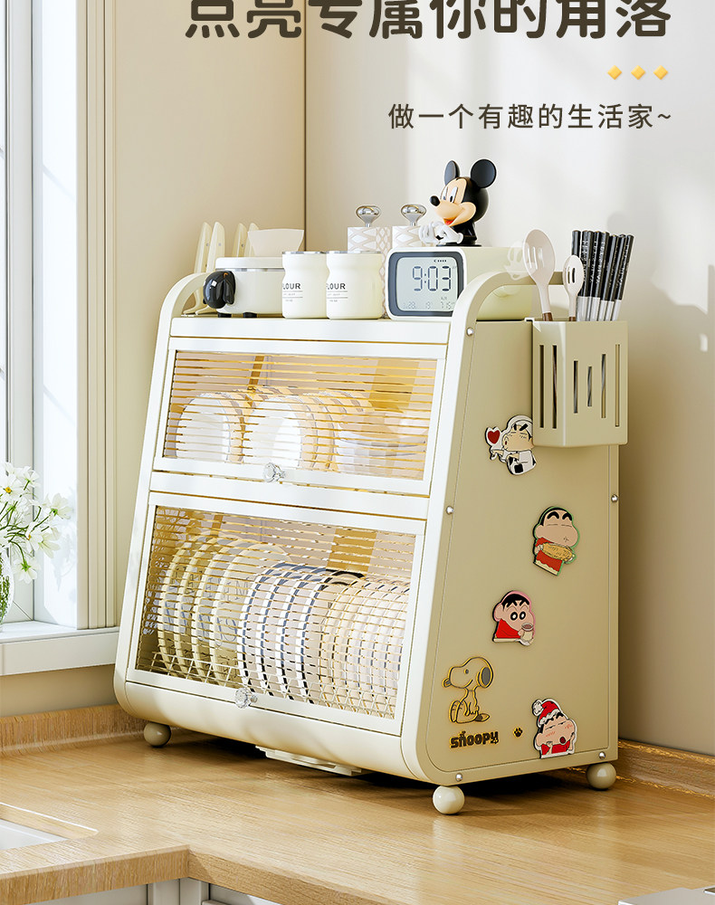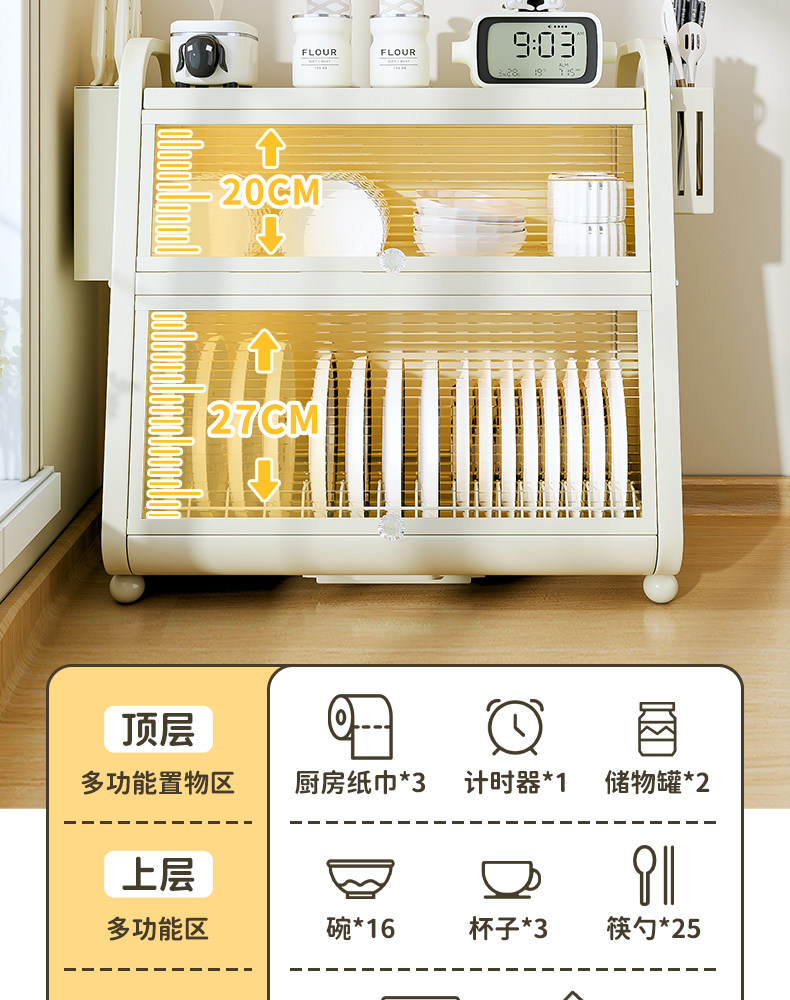 - 【42CM】奶白-双层碗碟柜(沥水盘)