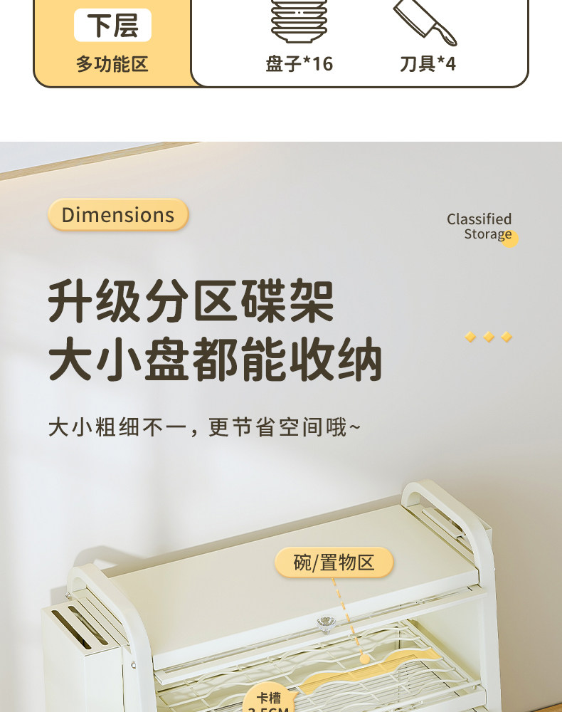- 窄款【42CM】奶白-双层碗碟柜(沥水盘+刀架+筷子筒)