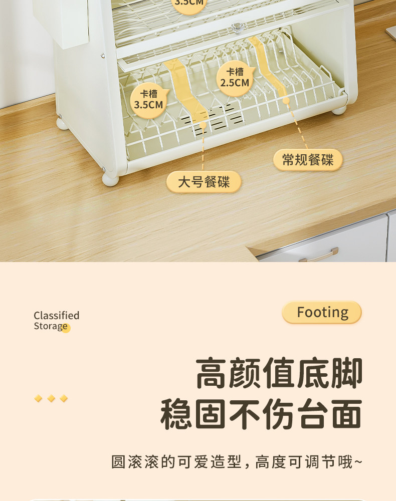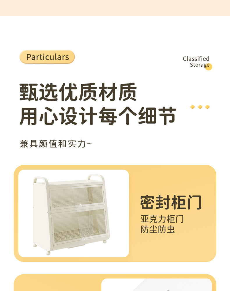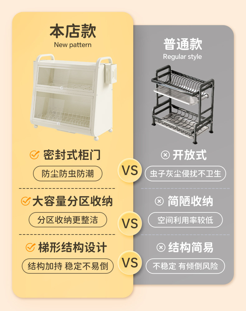 - 窄款【42CM】奶白-双层碗碟柜(沥水盘)