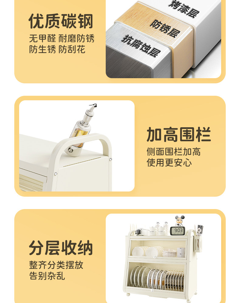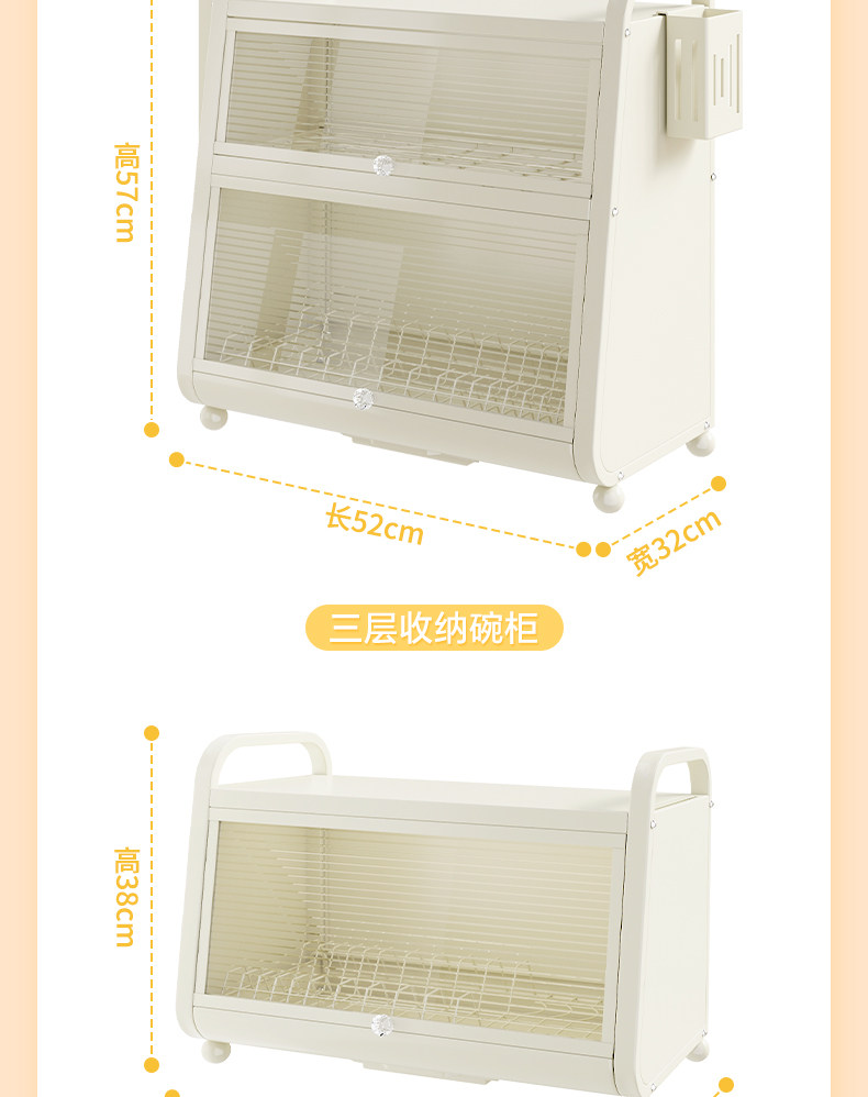 - 【加长款52CM】奶白-三层碗碟柜(沥水盘)