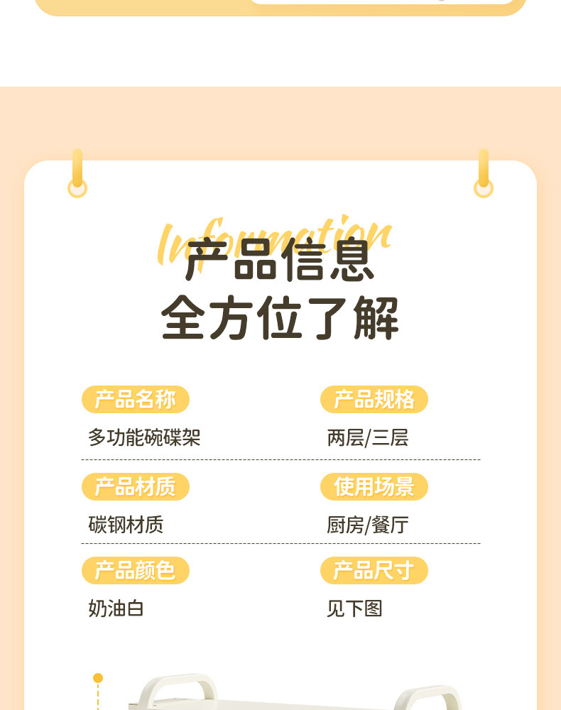 - 【42CM】奶白-双层碗碟柜(沥水盘+刀架+筷子架)