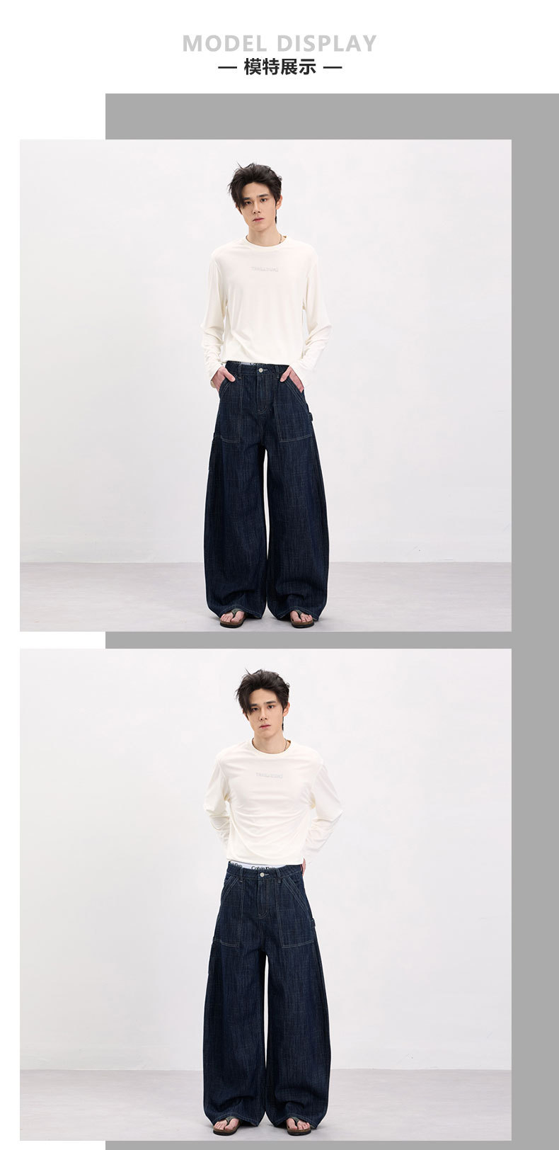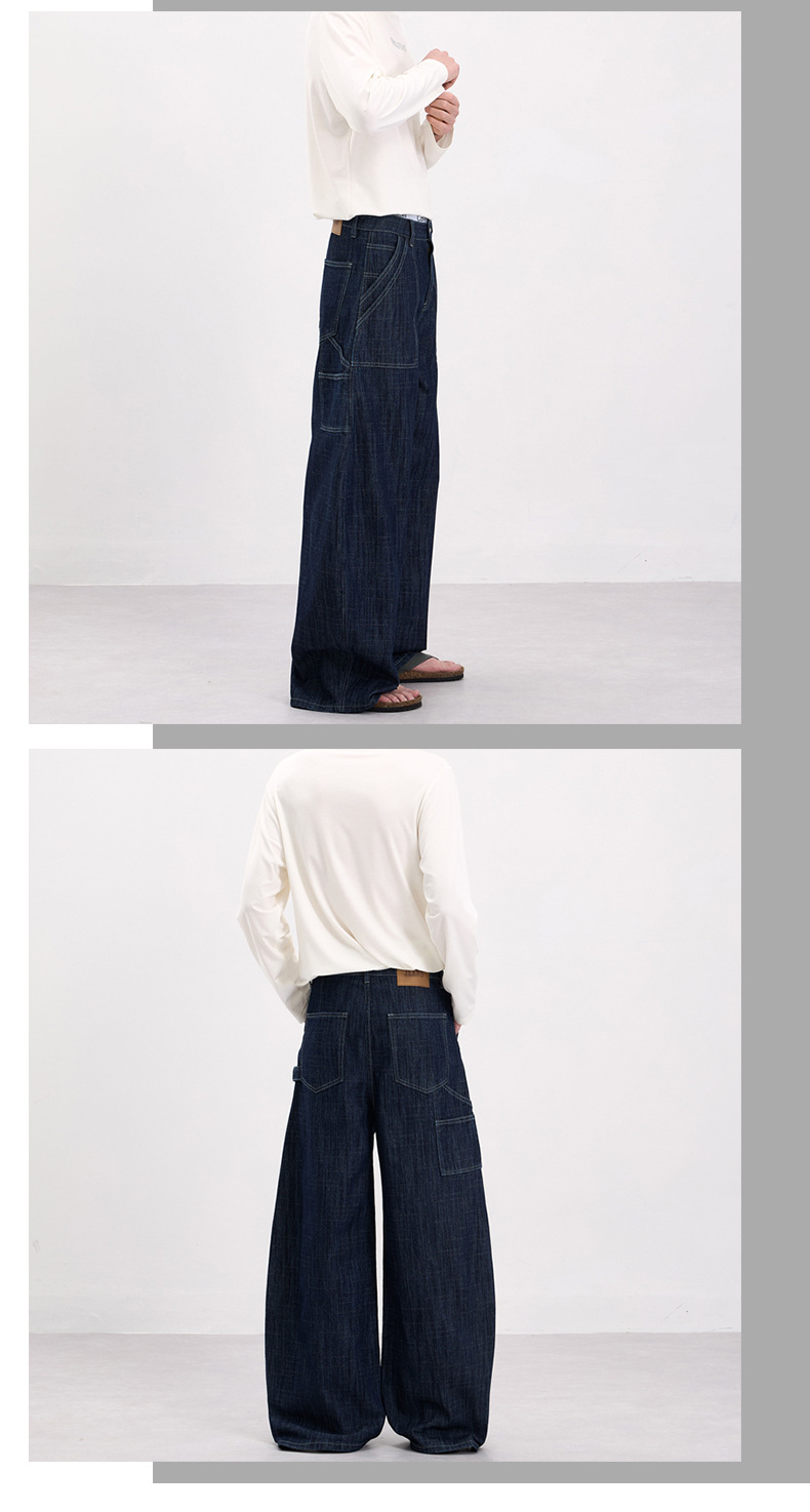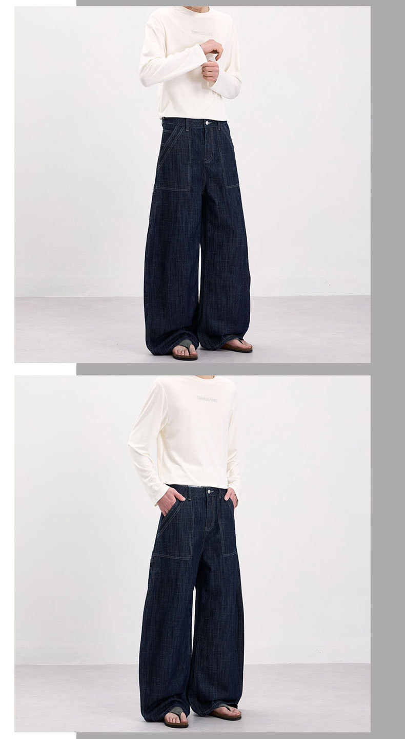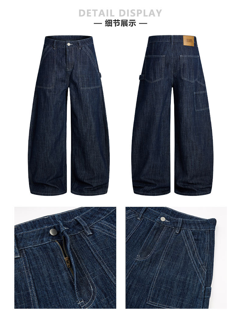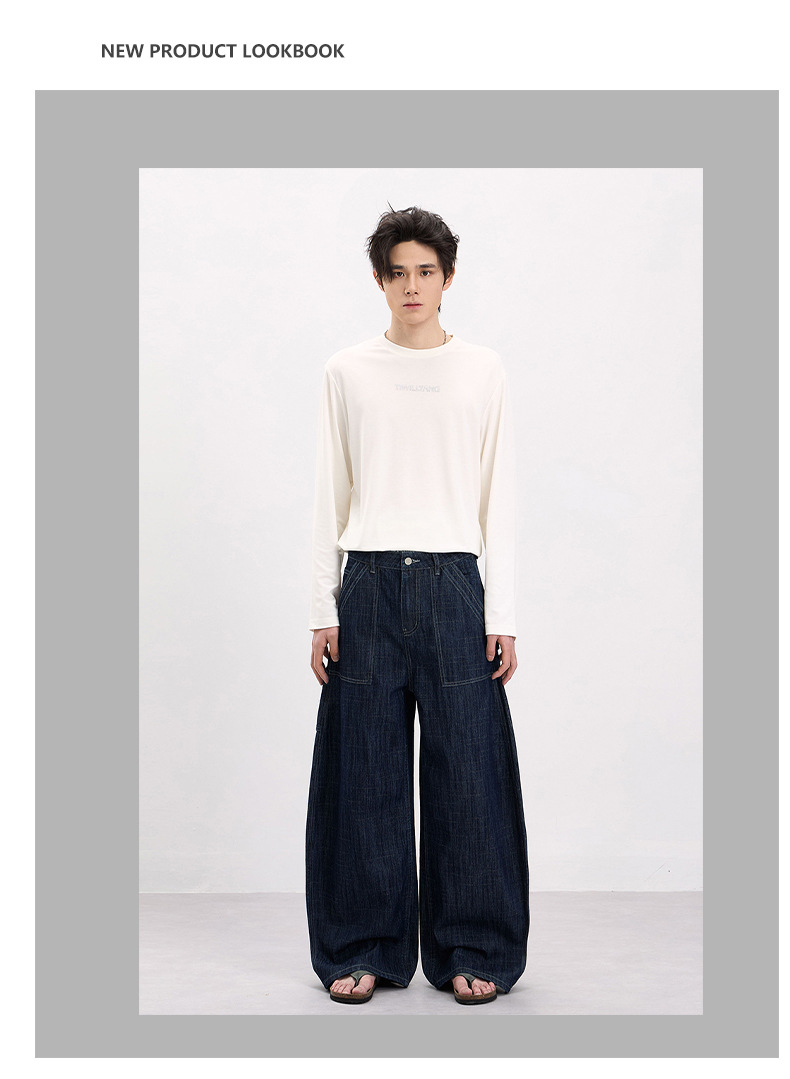LKTM男装 美式复古风横竖竹节纹弯刀牛仔裤男女baggy设计感工装裤