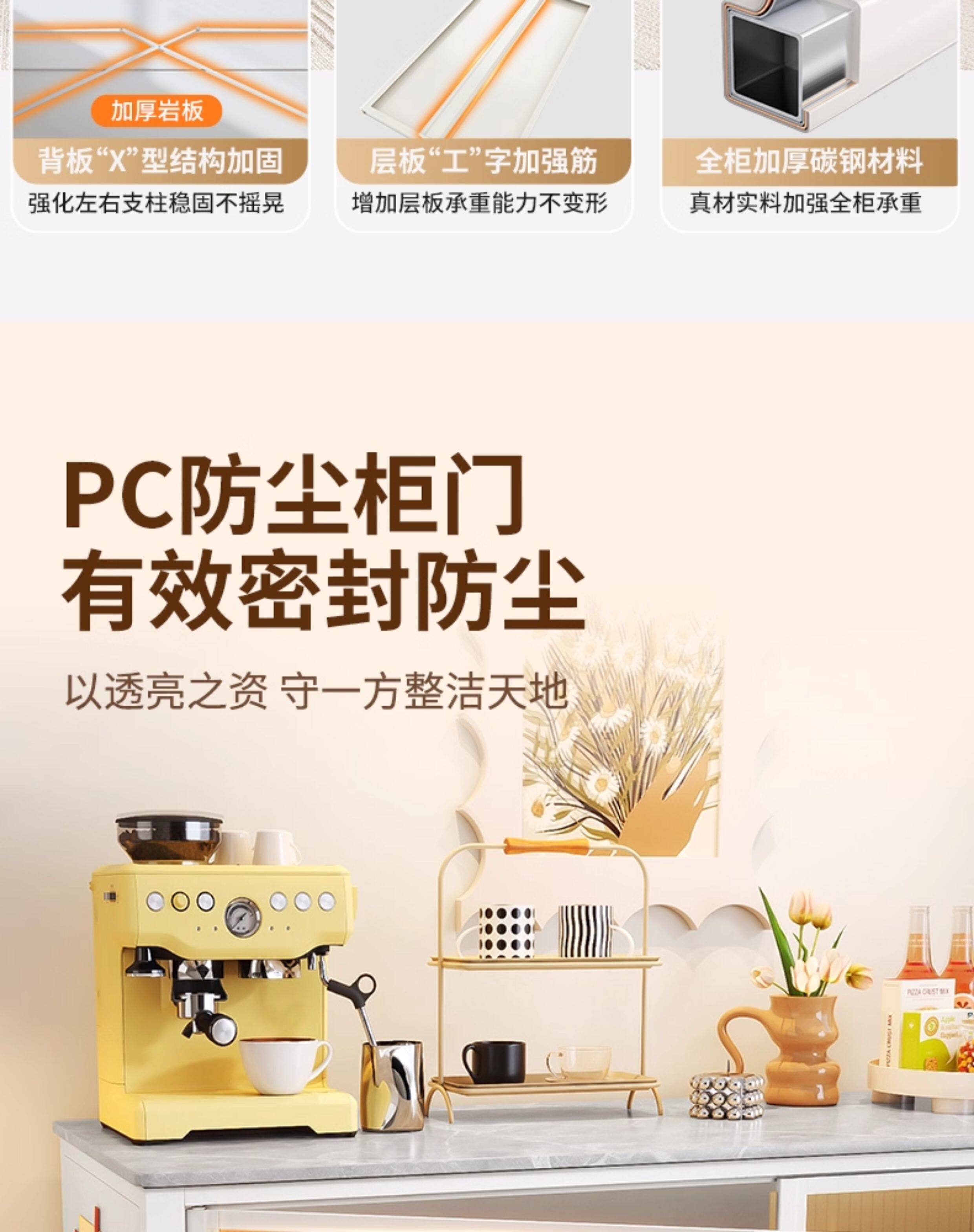 雅图诗金属餐边柜子储物柜茶水柜客厅厨房收纳柜斗柜靠墙边置物柜