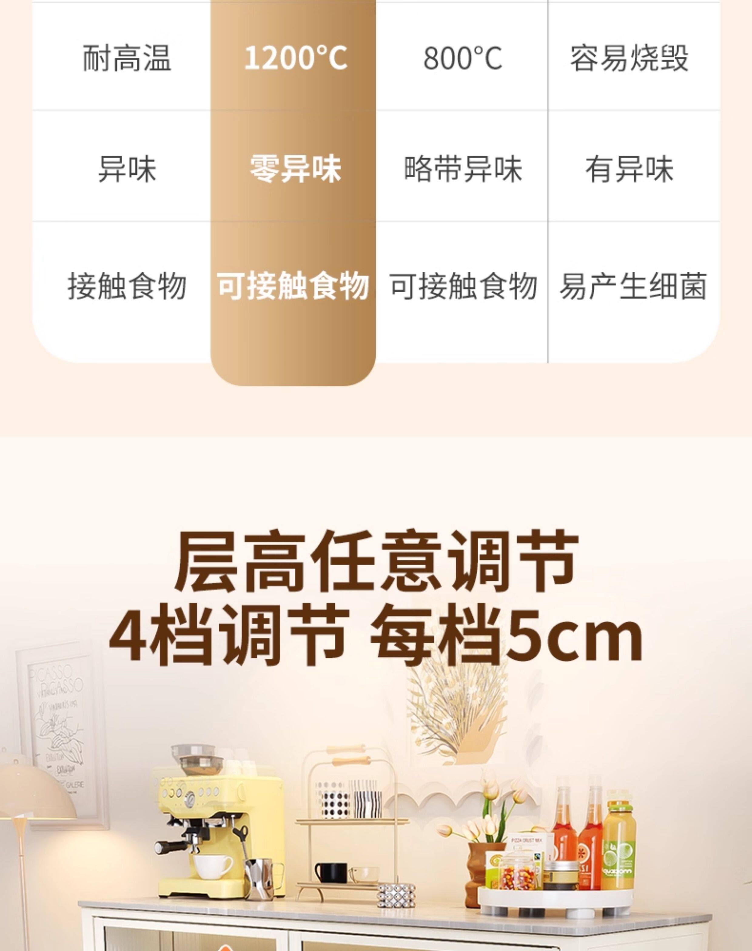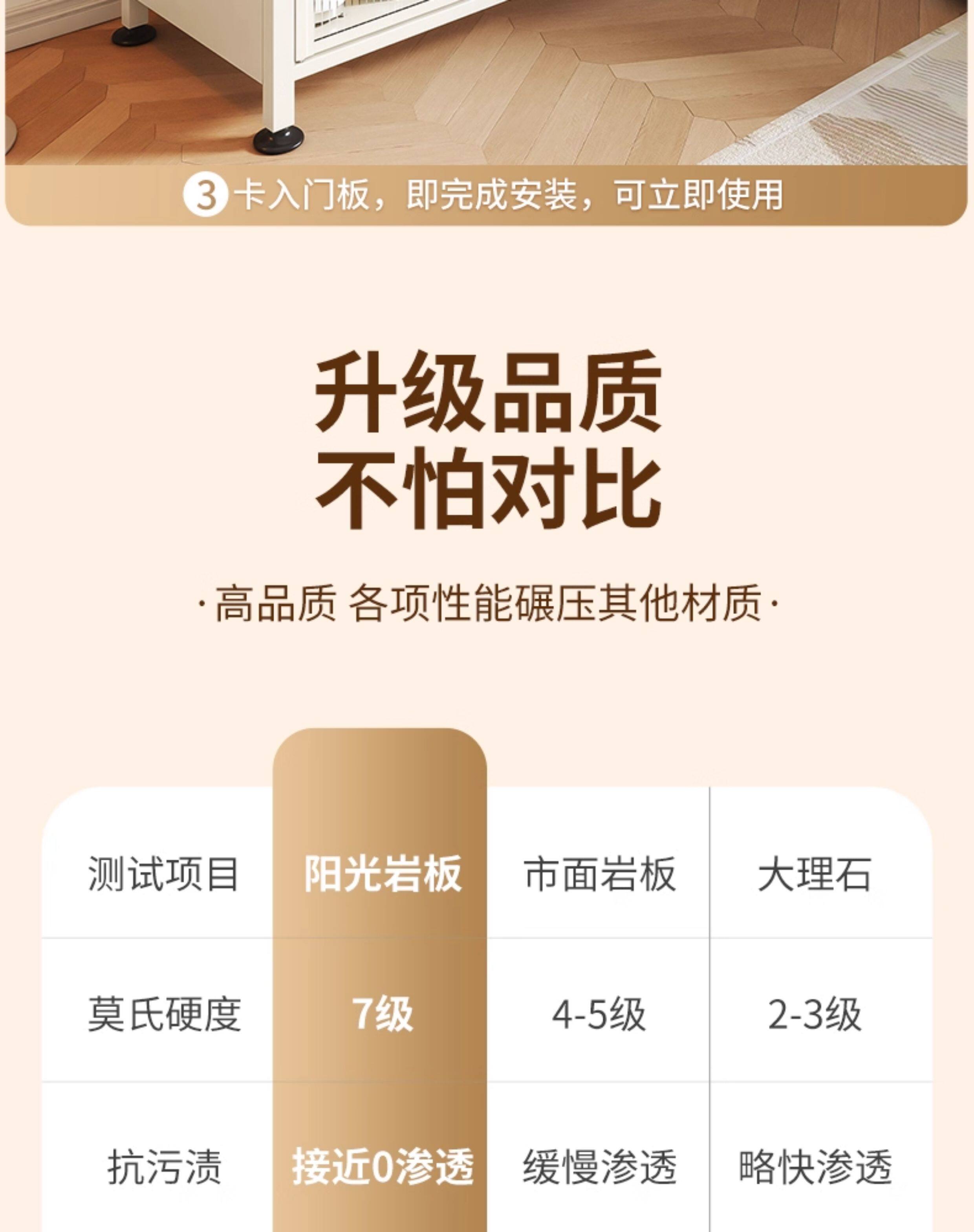 - 【免螺丝速装?特厚岩板】皎月白 四层长60*宽45cm一4档调节