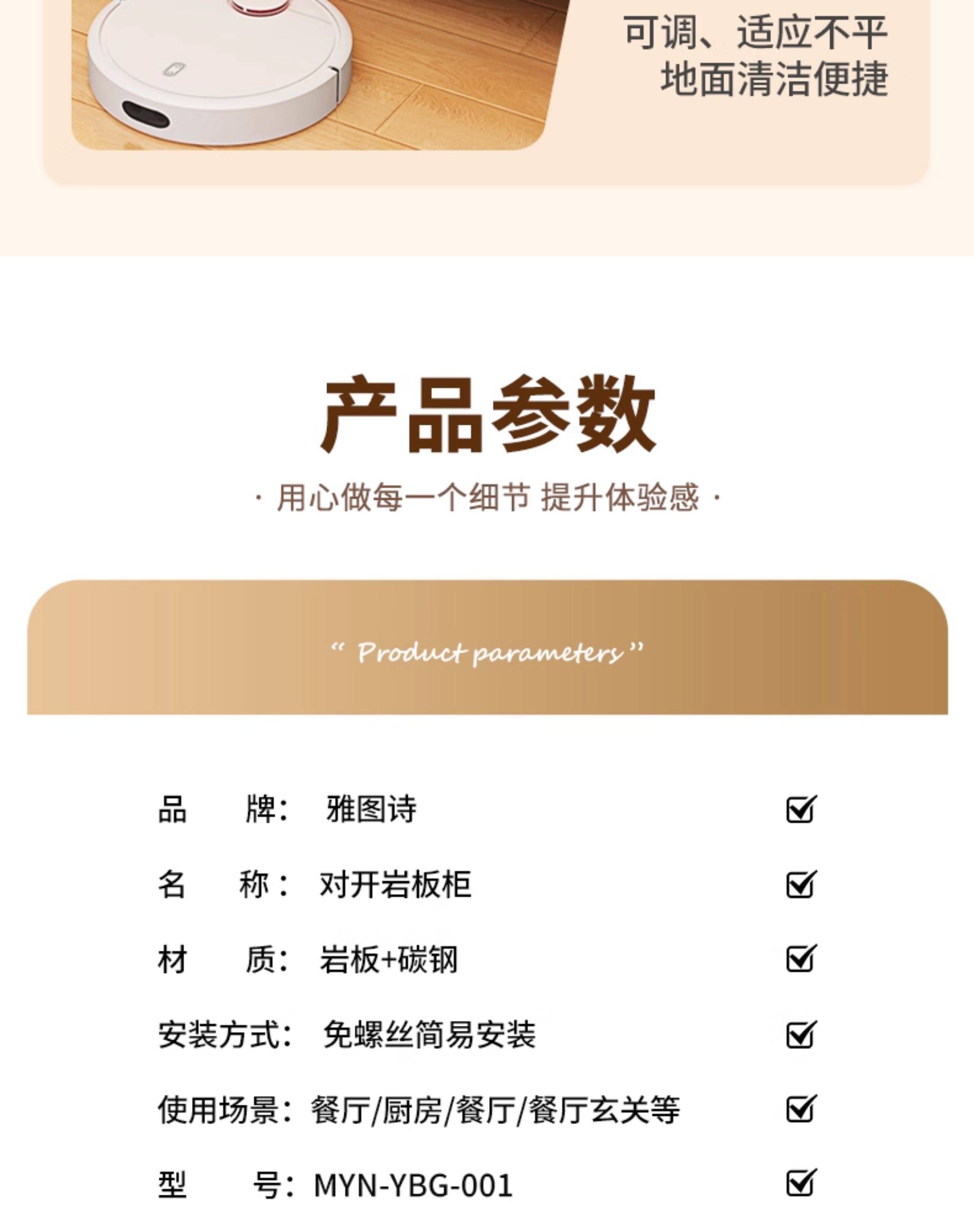 - 【免螺丝速装?特厚岩板】皎月白 四层长100*宽45cm一4档调节