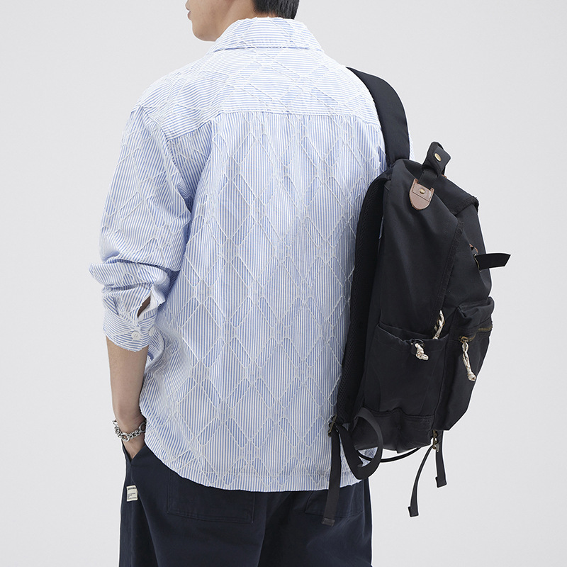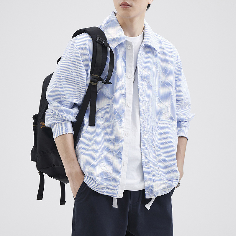 LKTM男装#秋季潮牌高级感菱形纹长袖衬衫男女ins美式小众宽松衬衣