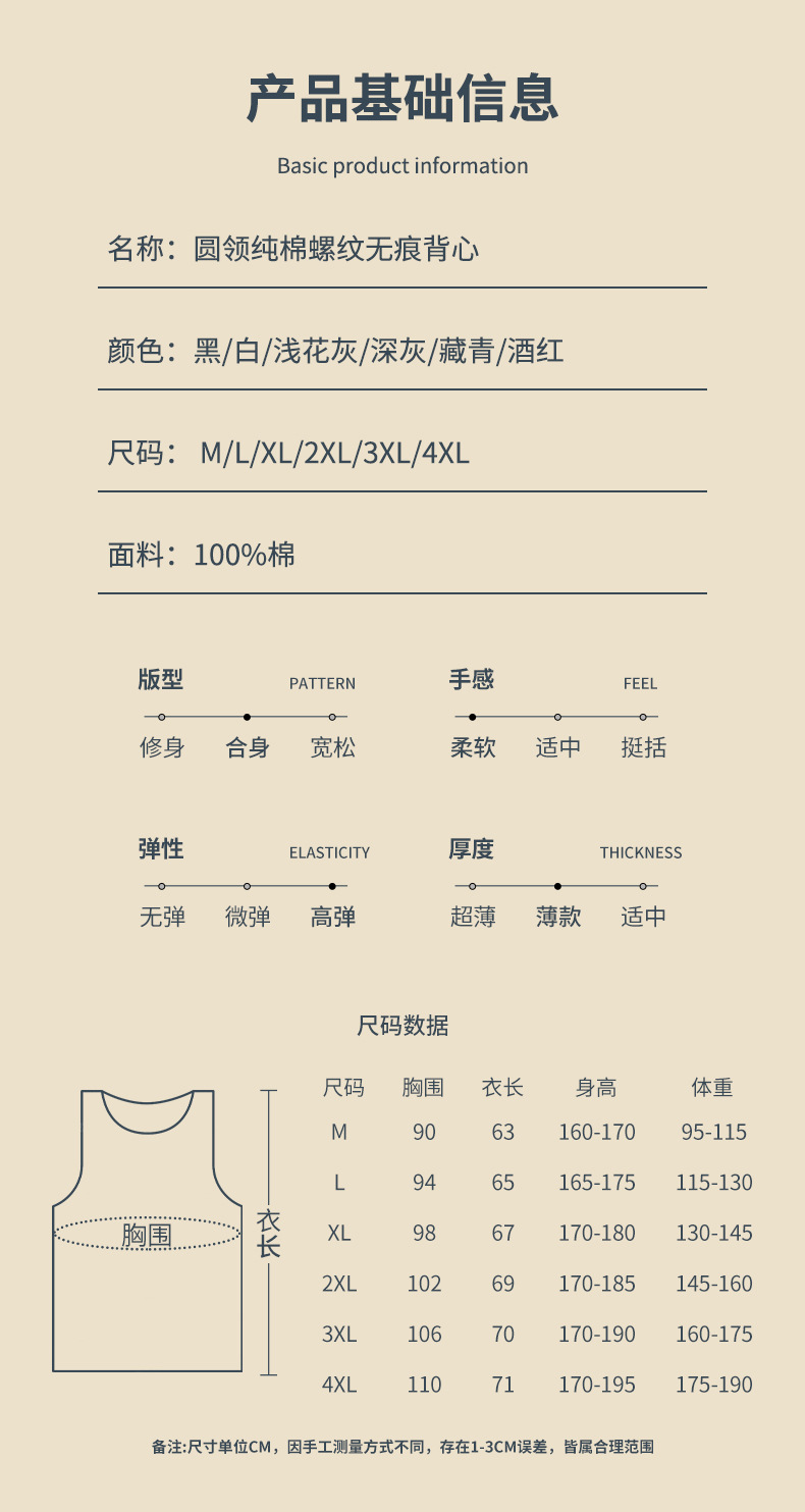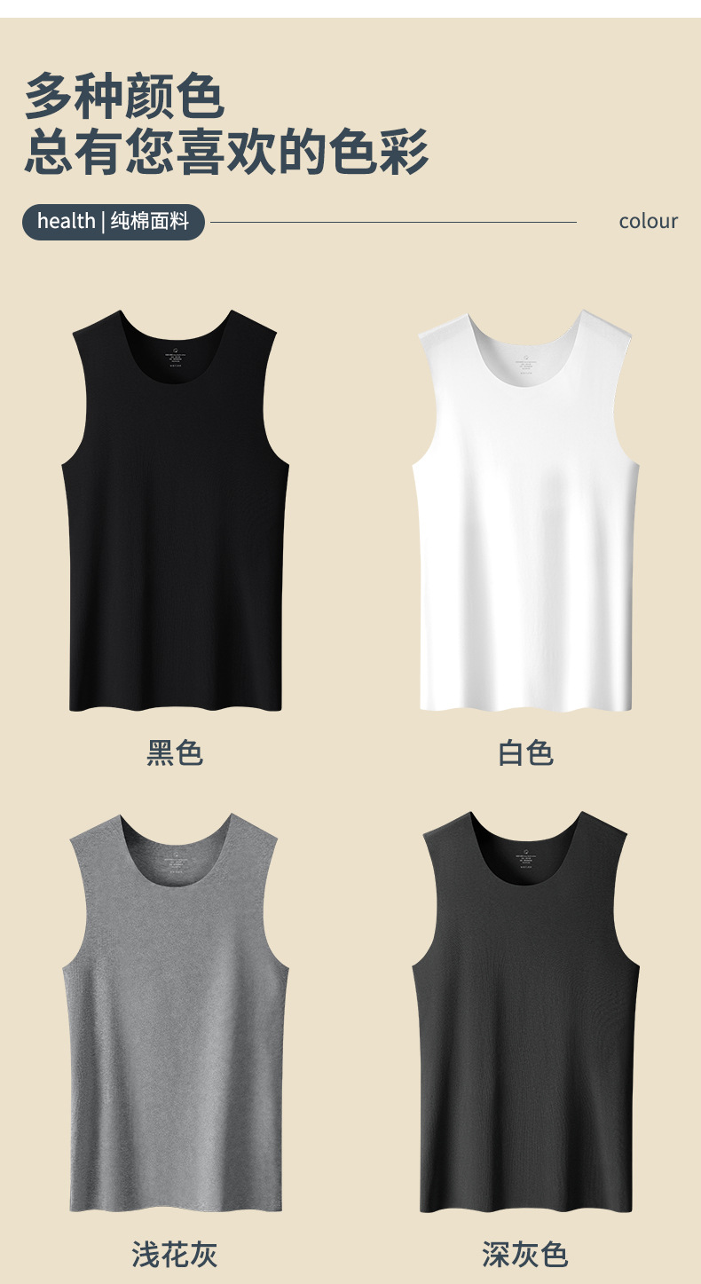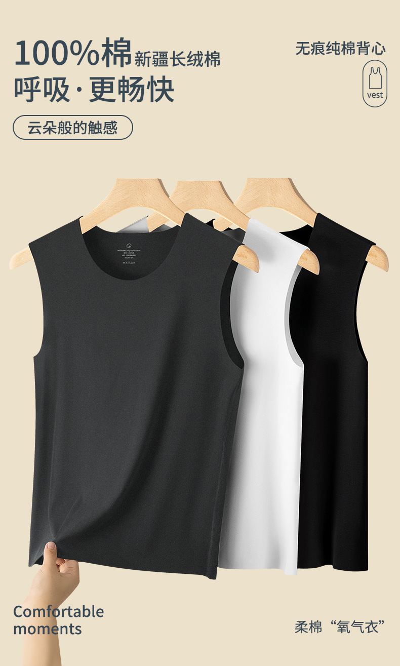 100%纯棉无痕男士背心纯棉内衣宽肩无袖内搭打底衫坎肩健身上衣潮
