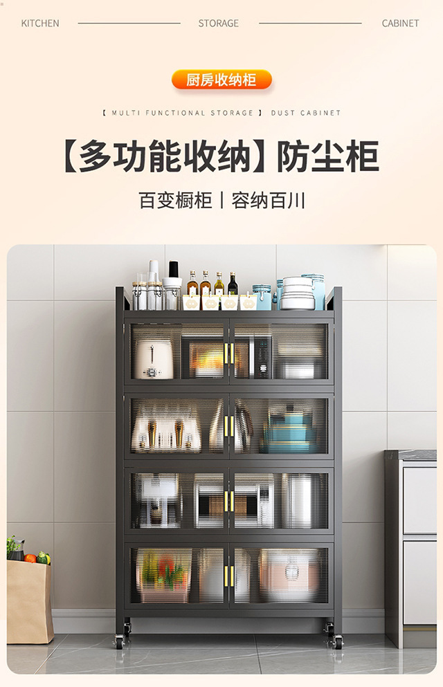 厨房置物架夹缝款落地多层收纳柜子多功能储物柜微波炉橱柜餐边柜