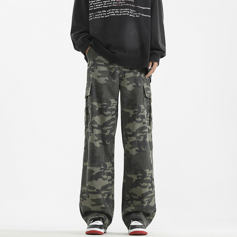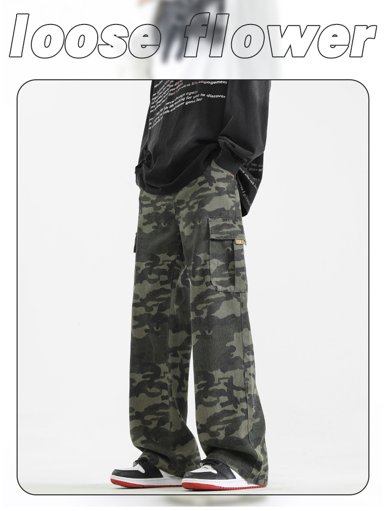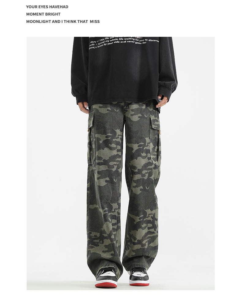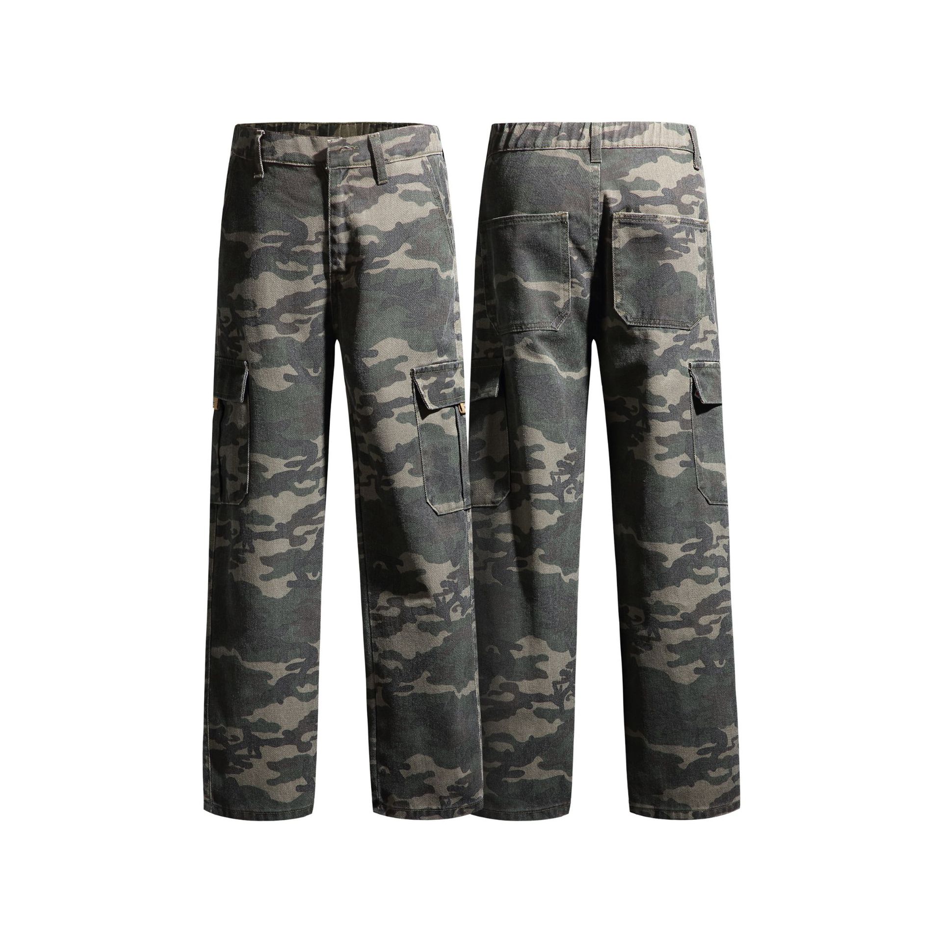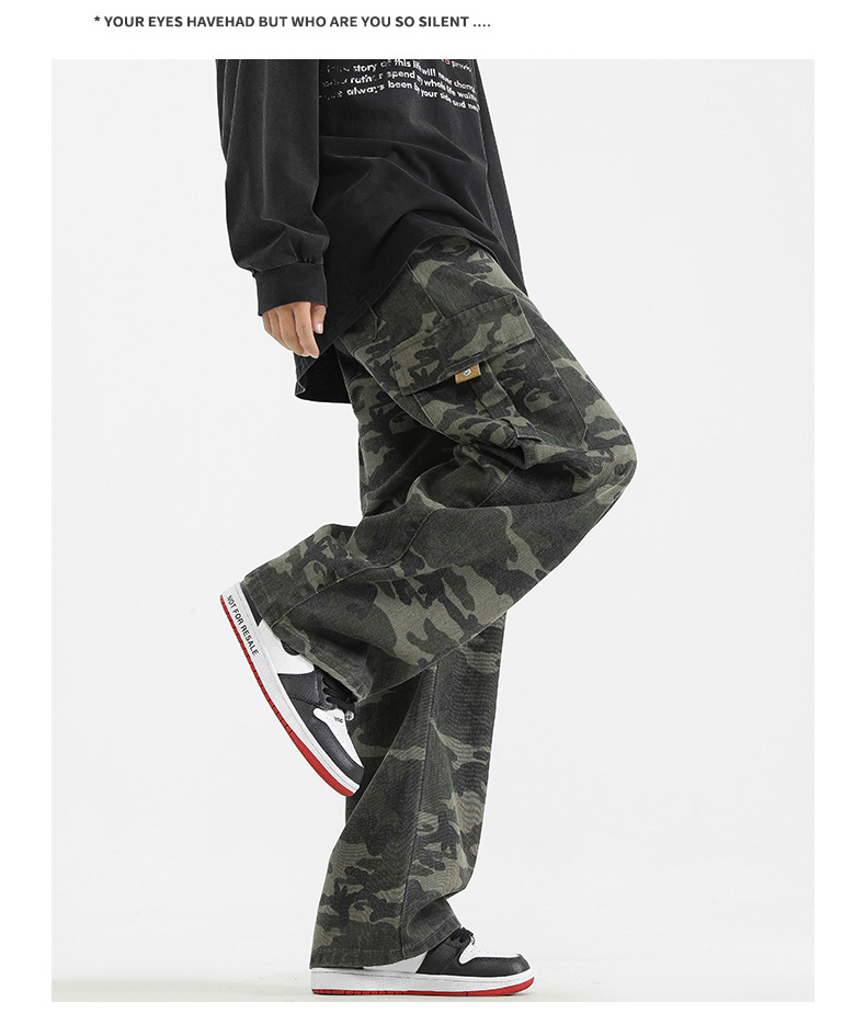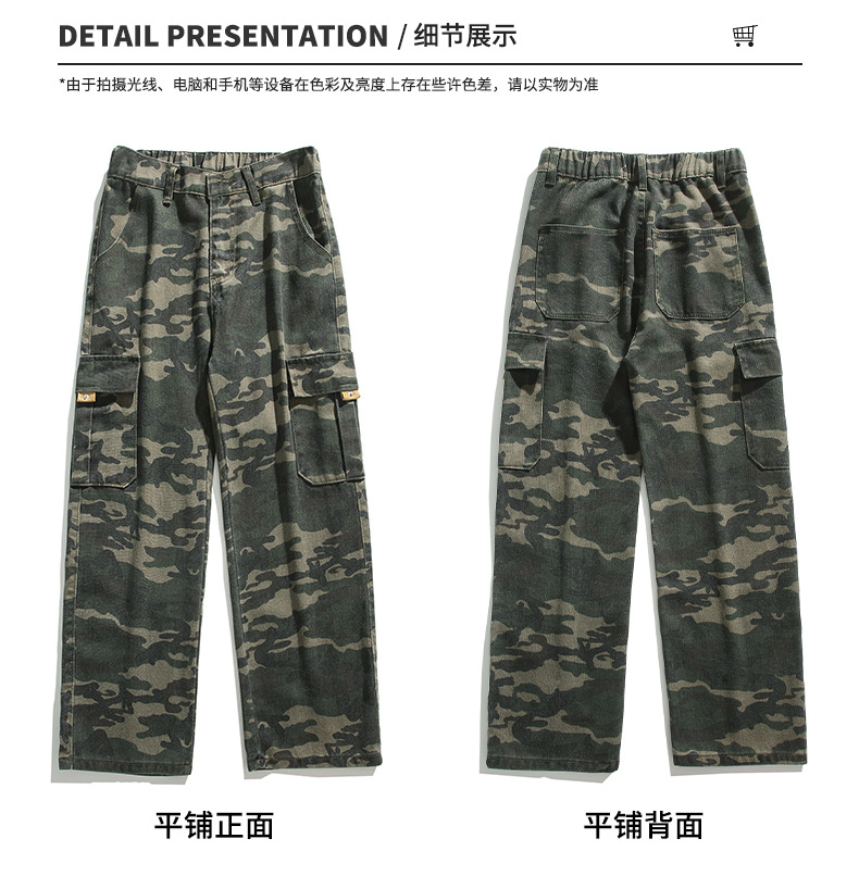 LKTM男装#美式复古vibe迷彩工装裤男潮牌痞帅半松紧腰直筒休闲裤
