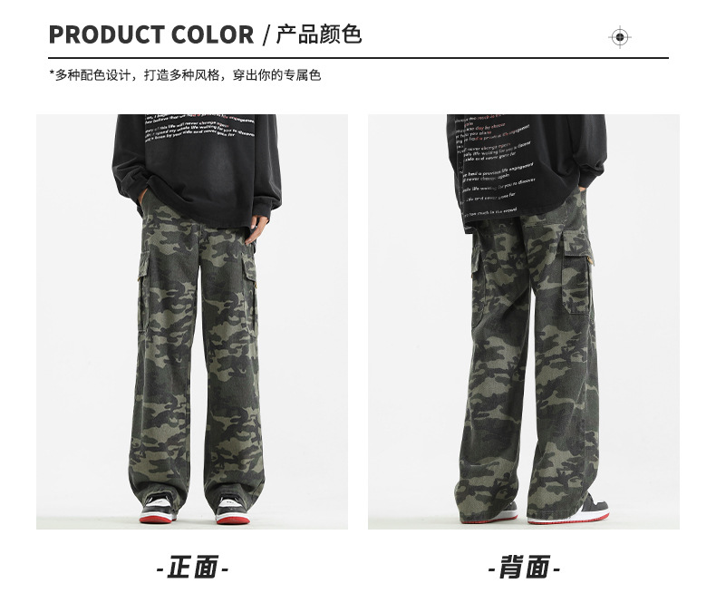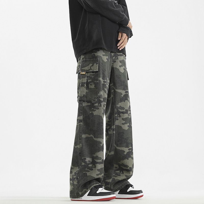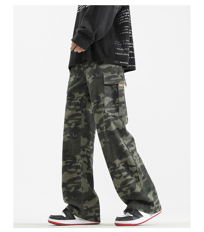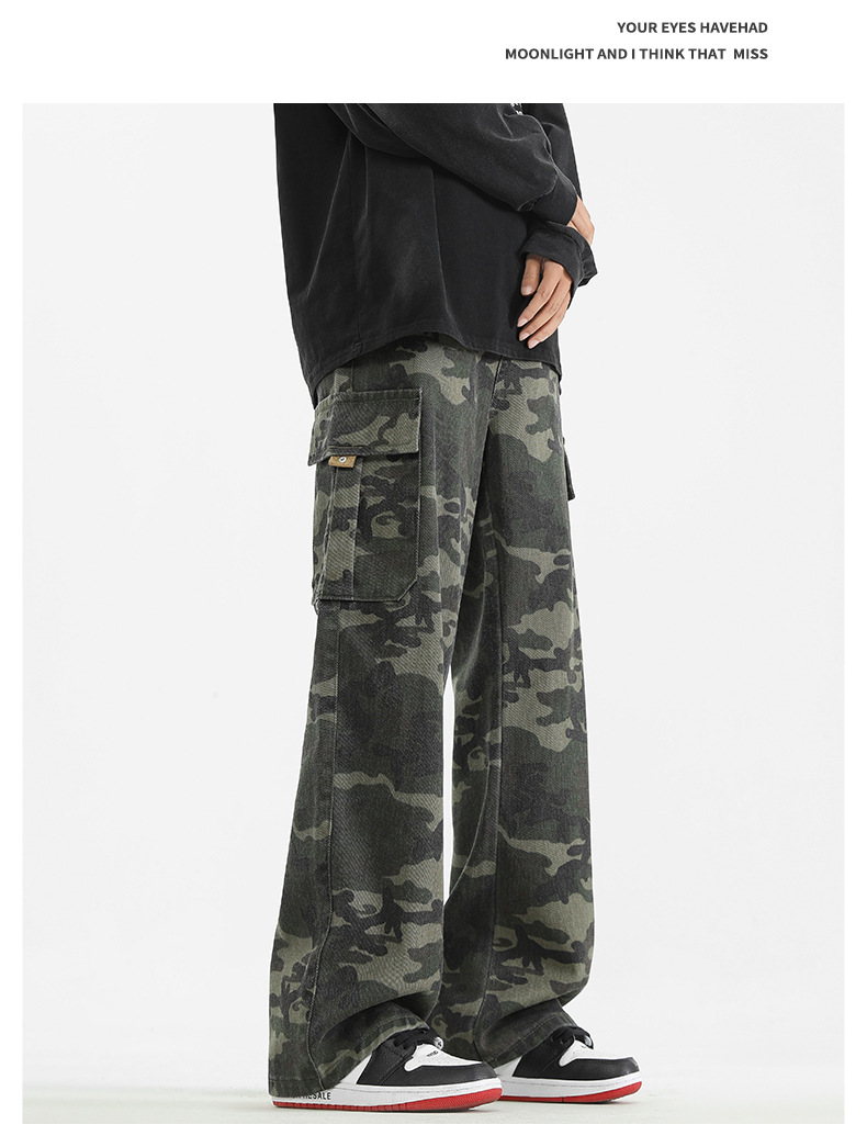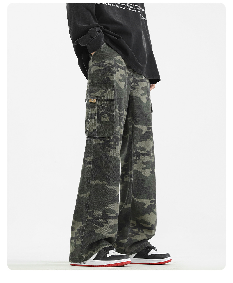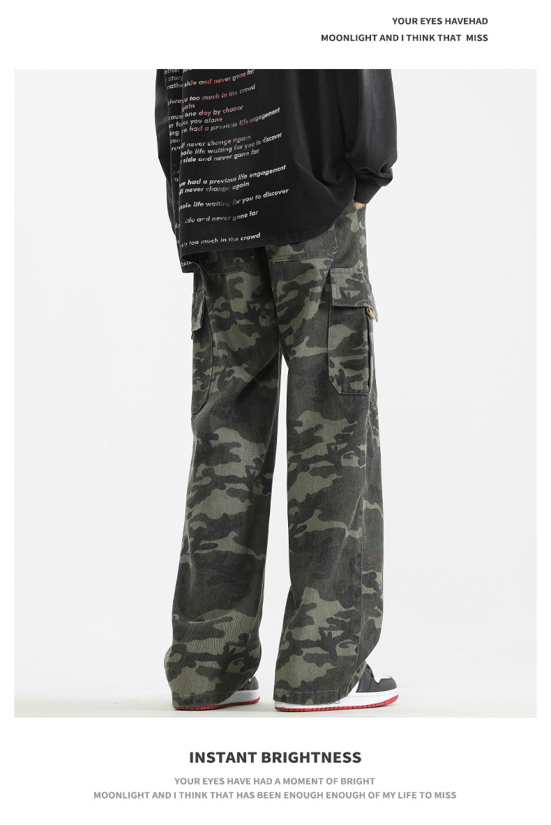 LKTM男装#美式复古vibe迷彩工装裤男潮牌痞帅半松紧腰直筒休闲裤