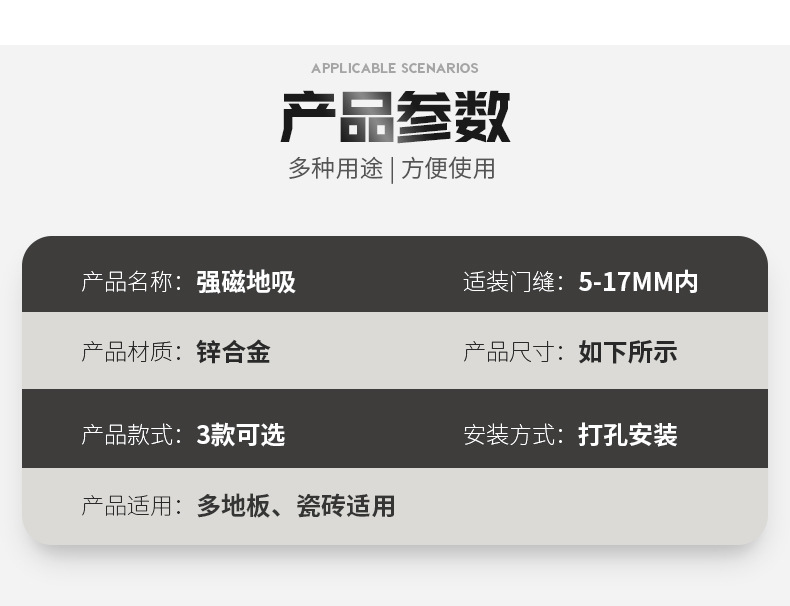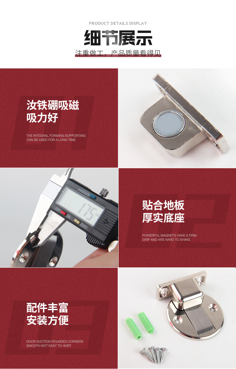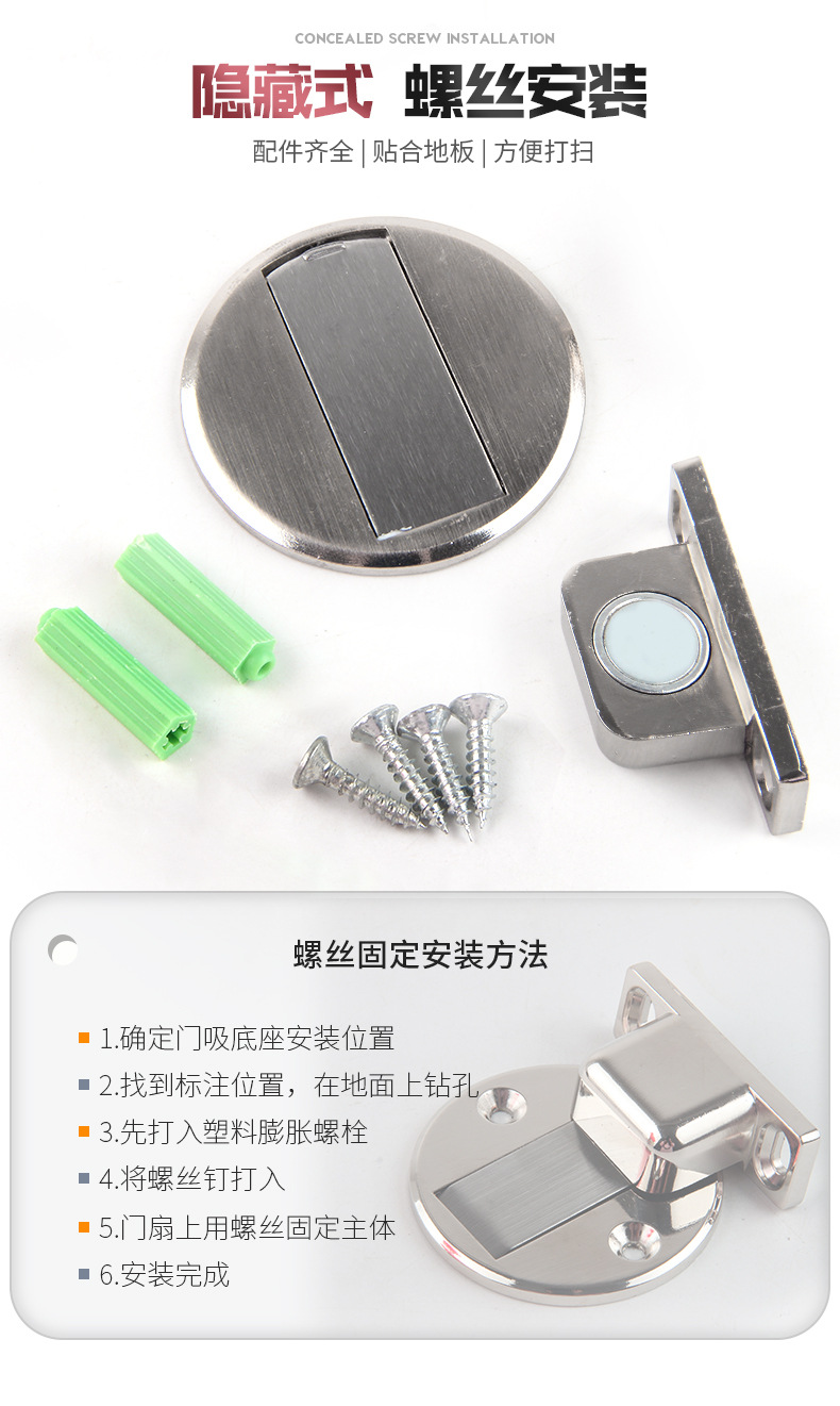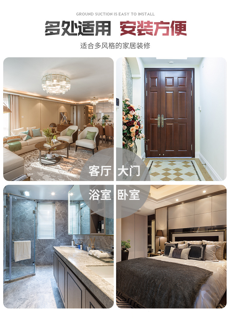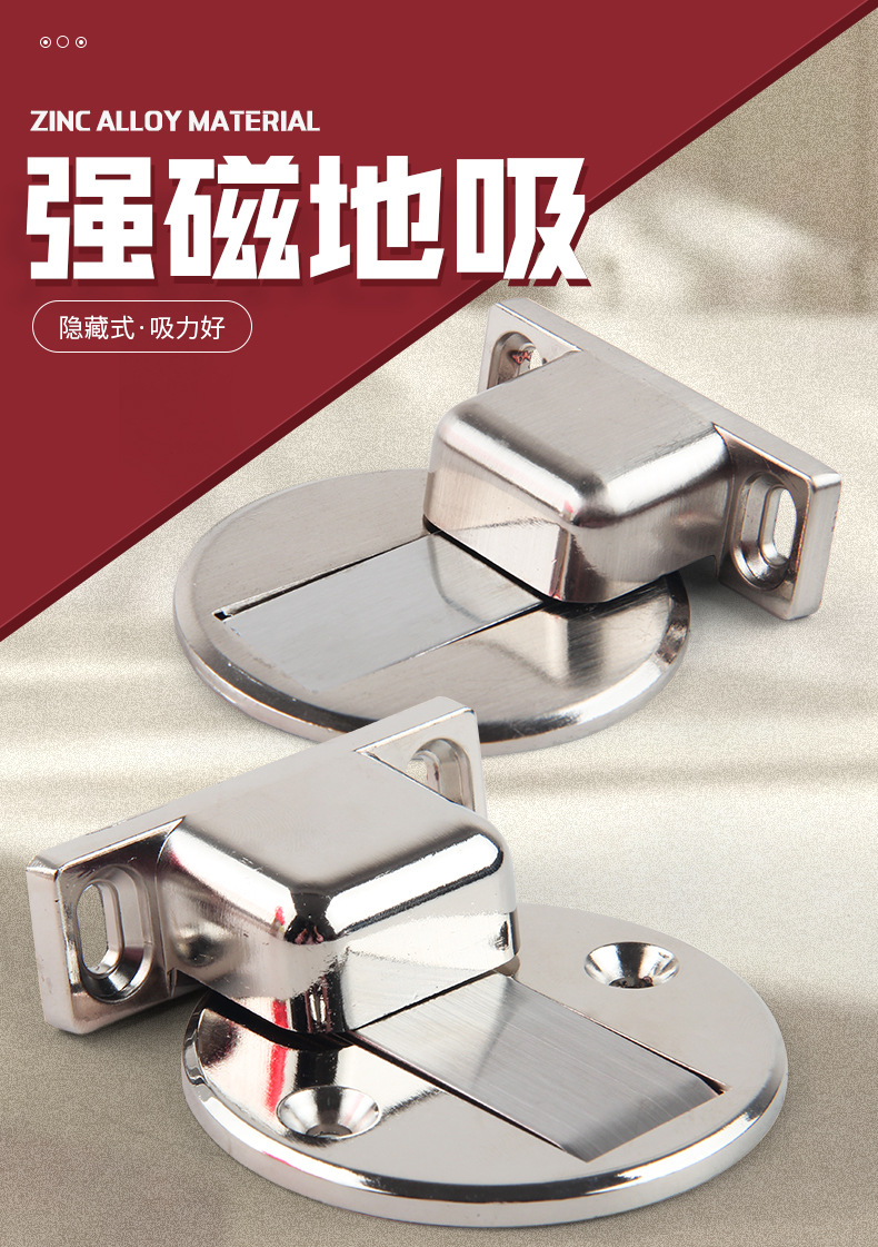 锌合金隐形打孔式强磁地吸卫生间卧室瓷砖地板防撞门家用阻门器