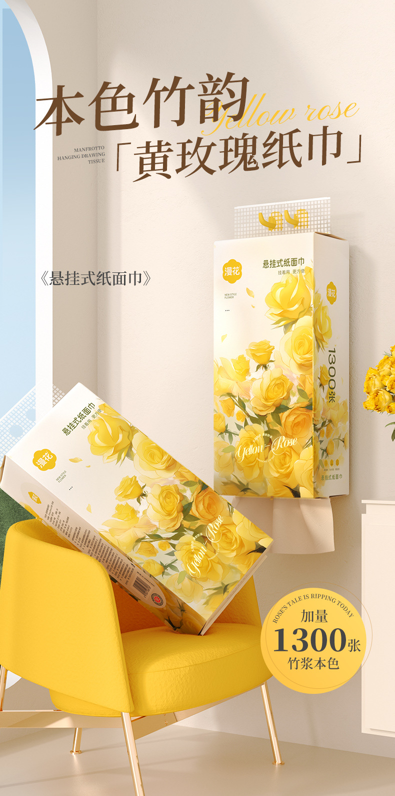 漫花1300张悬挂式纸巾抽纸整箱擦手餐巾纸家用实惠装卫生纸