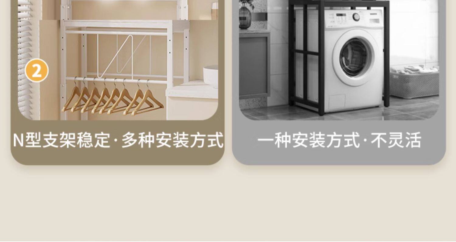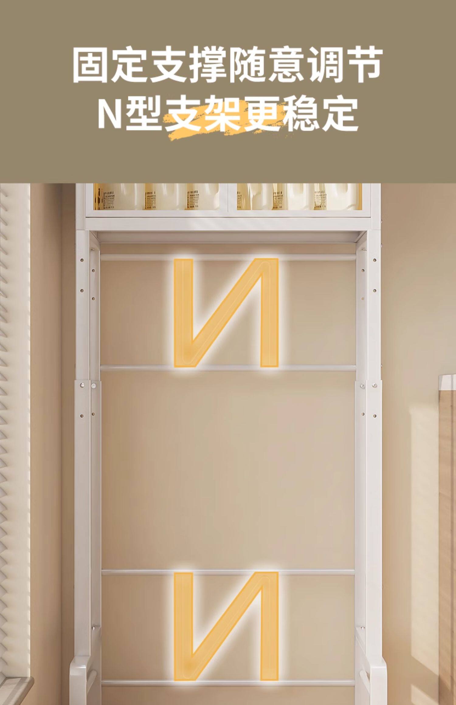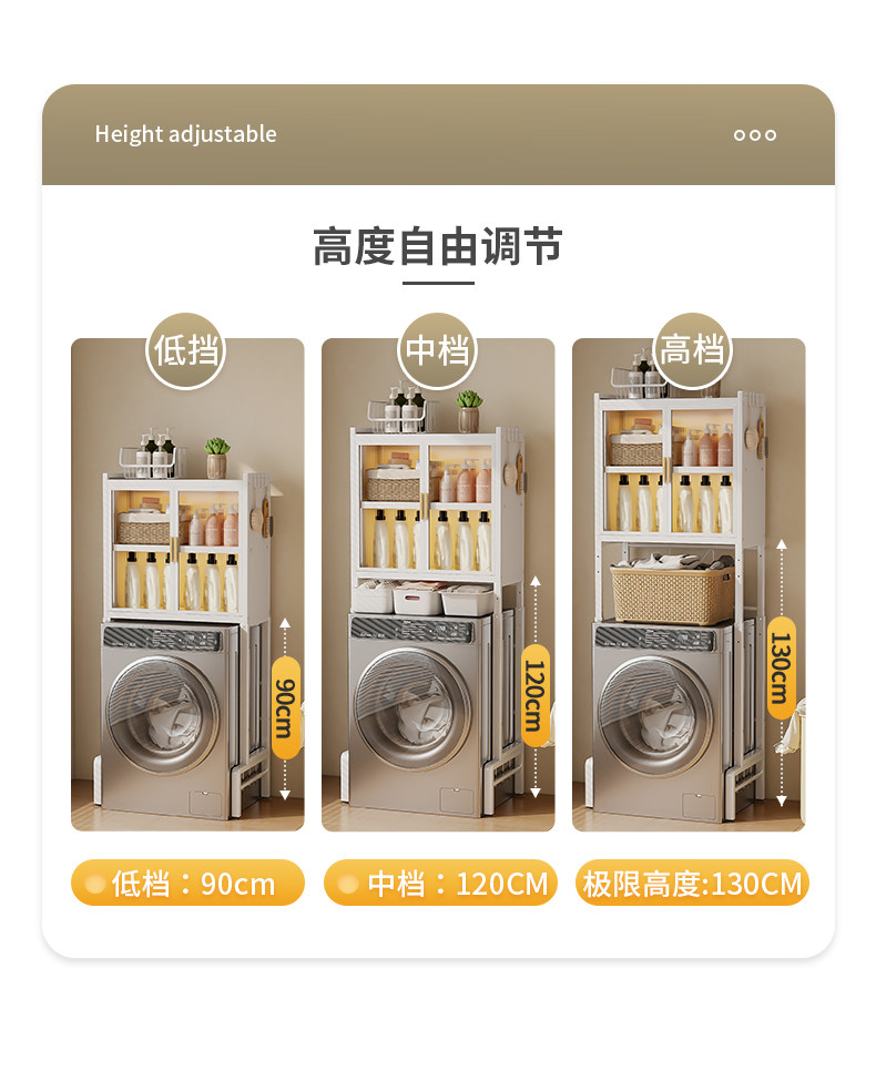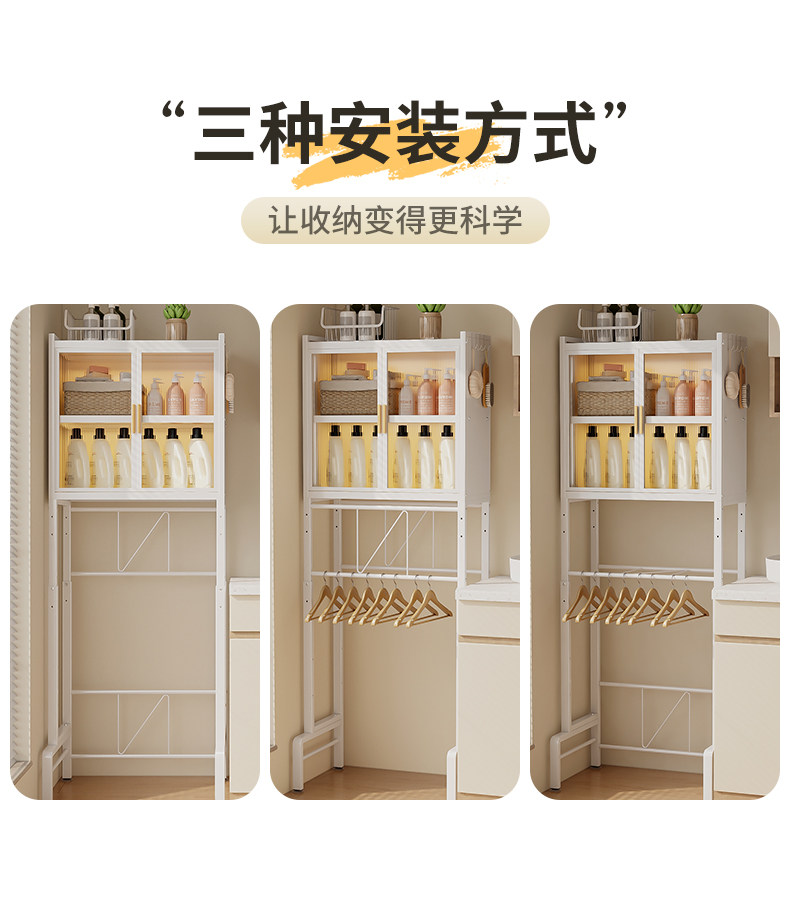 - 【高度可调】3层-皎月白+感应灯+挂钩3【滚筒波轮通用】
