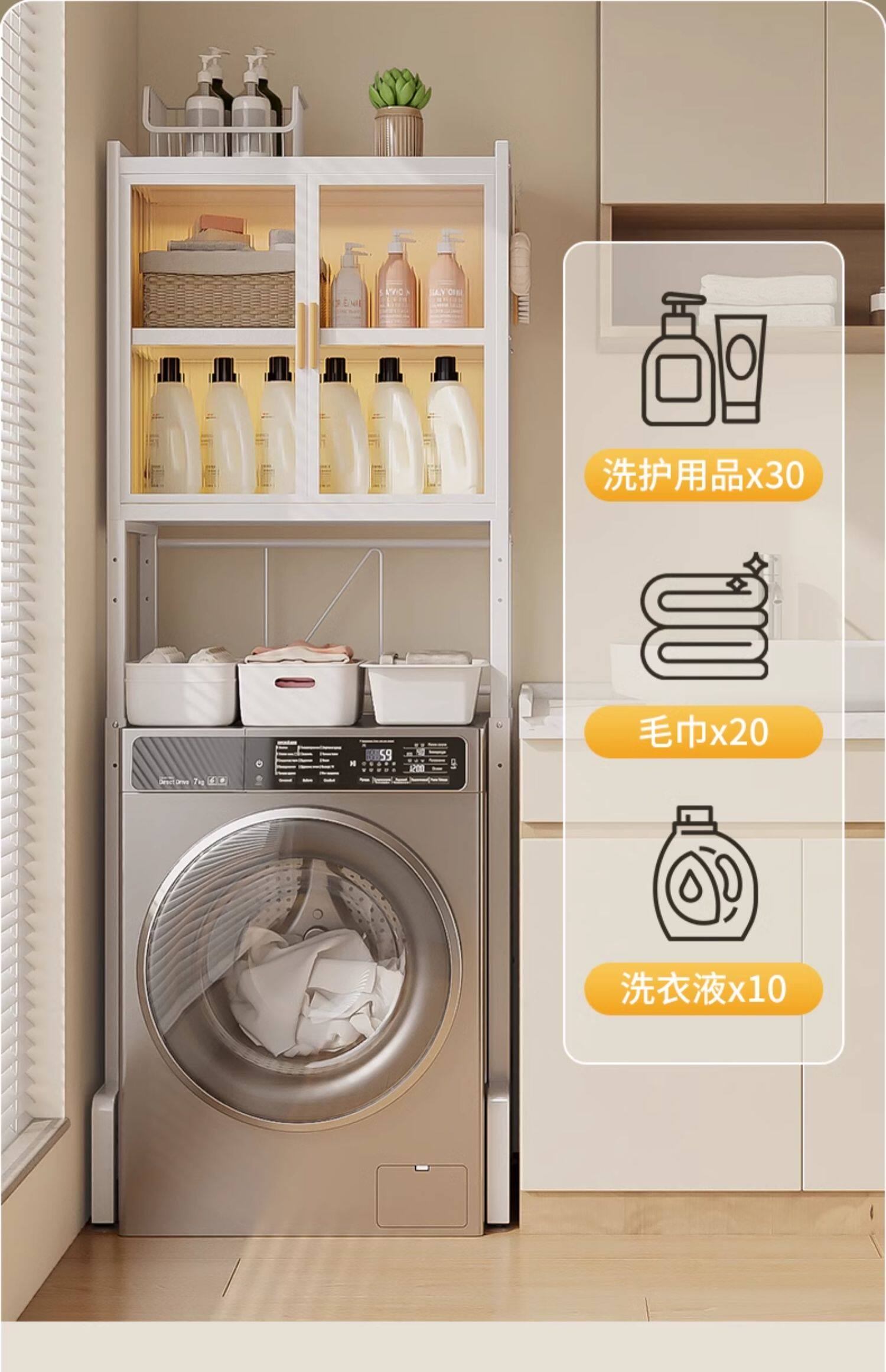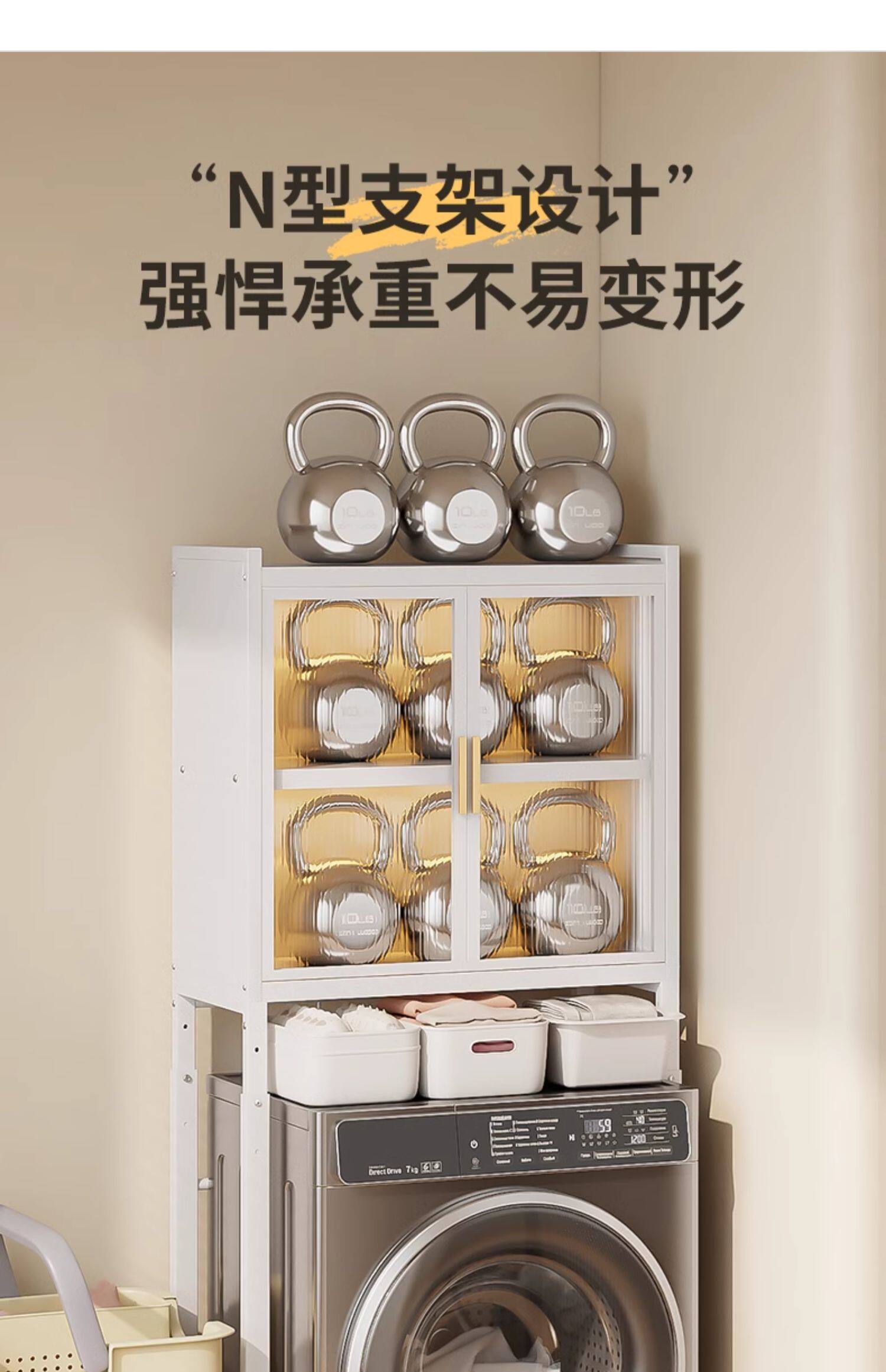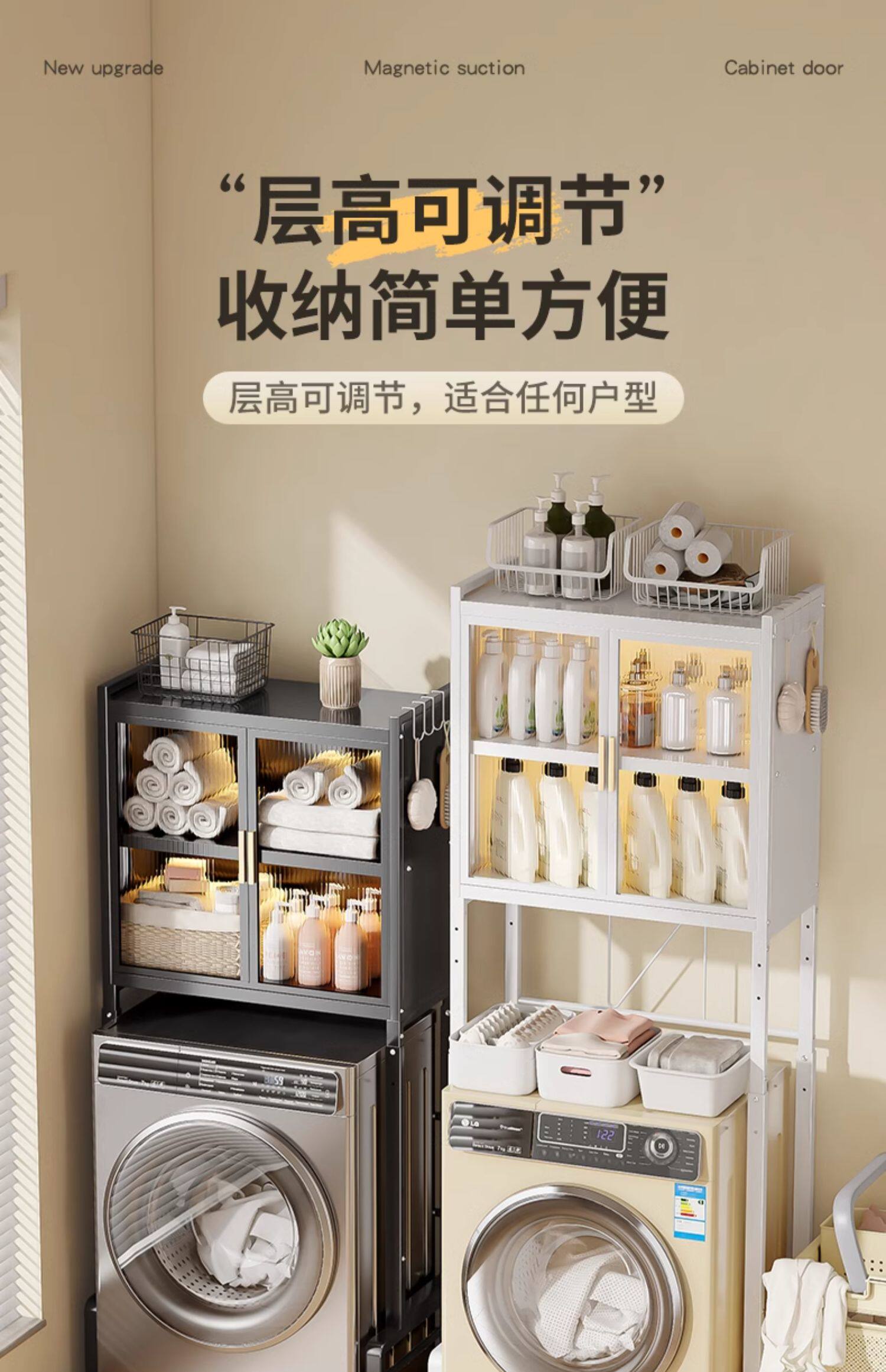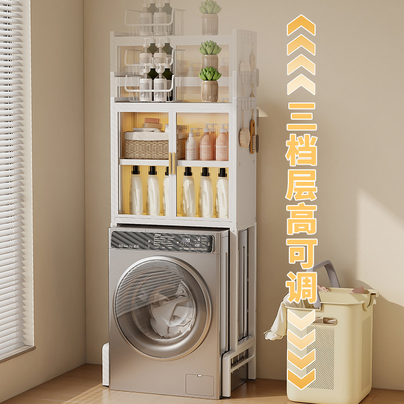- 【高度可调】3层-双门-皎月白-带灯【滚筒波轮通用】