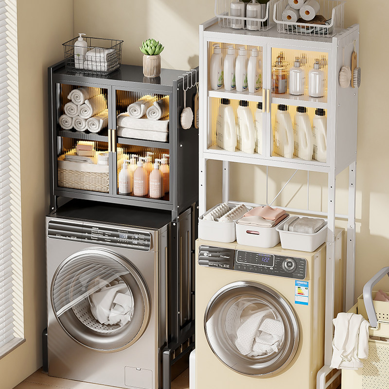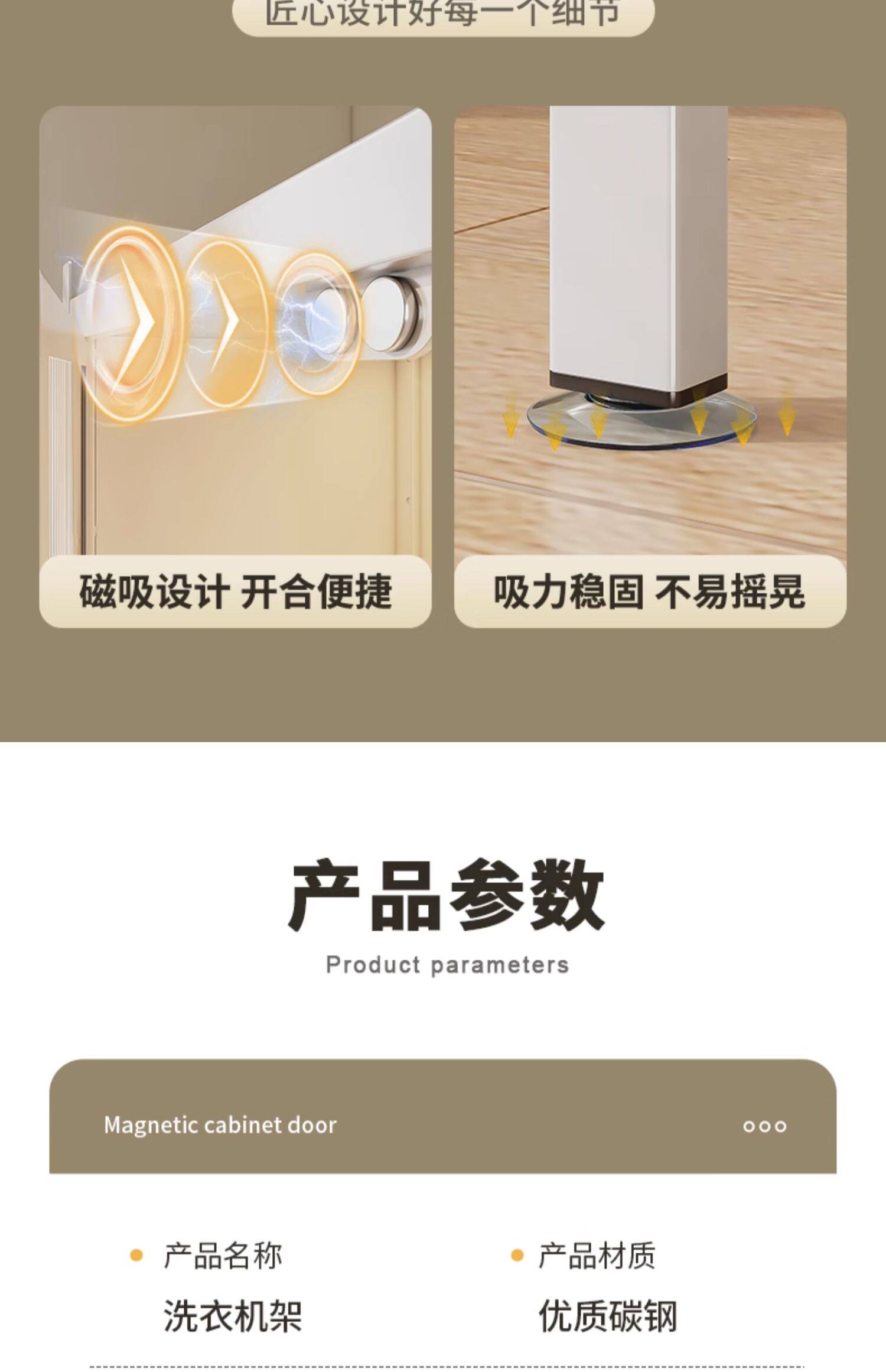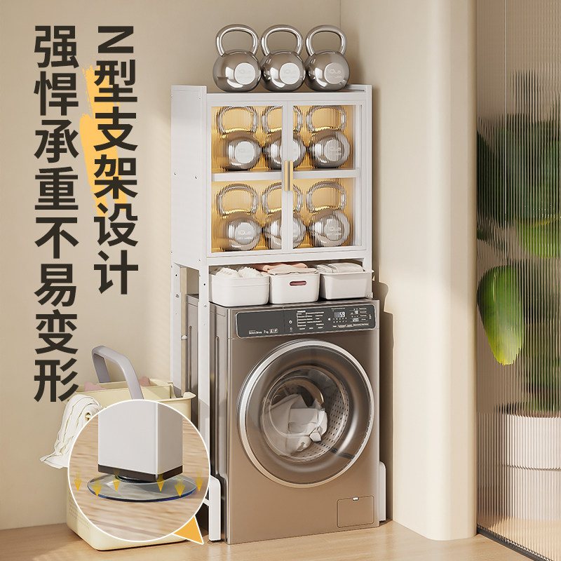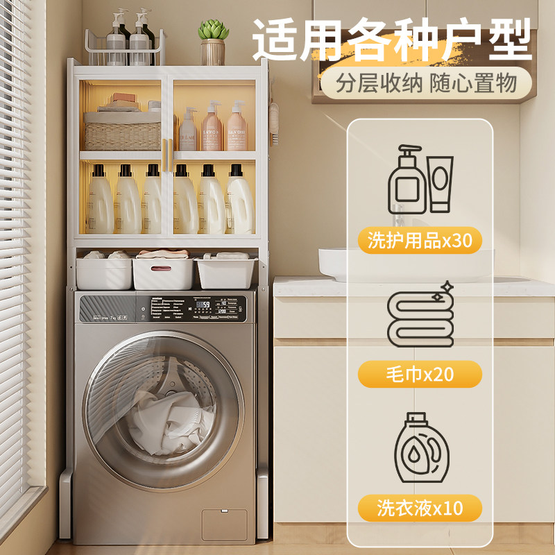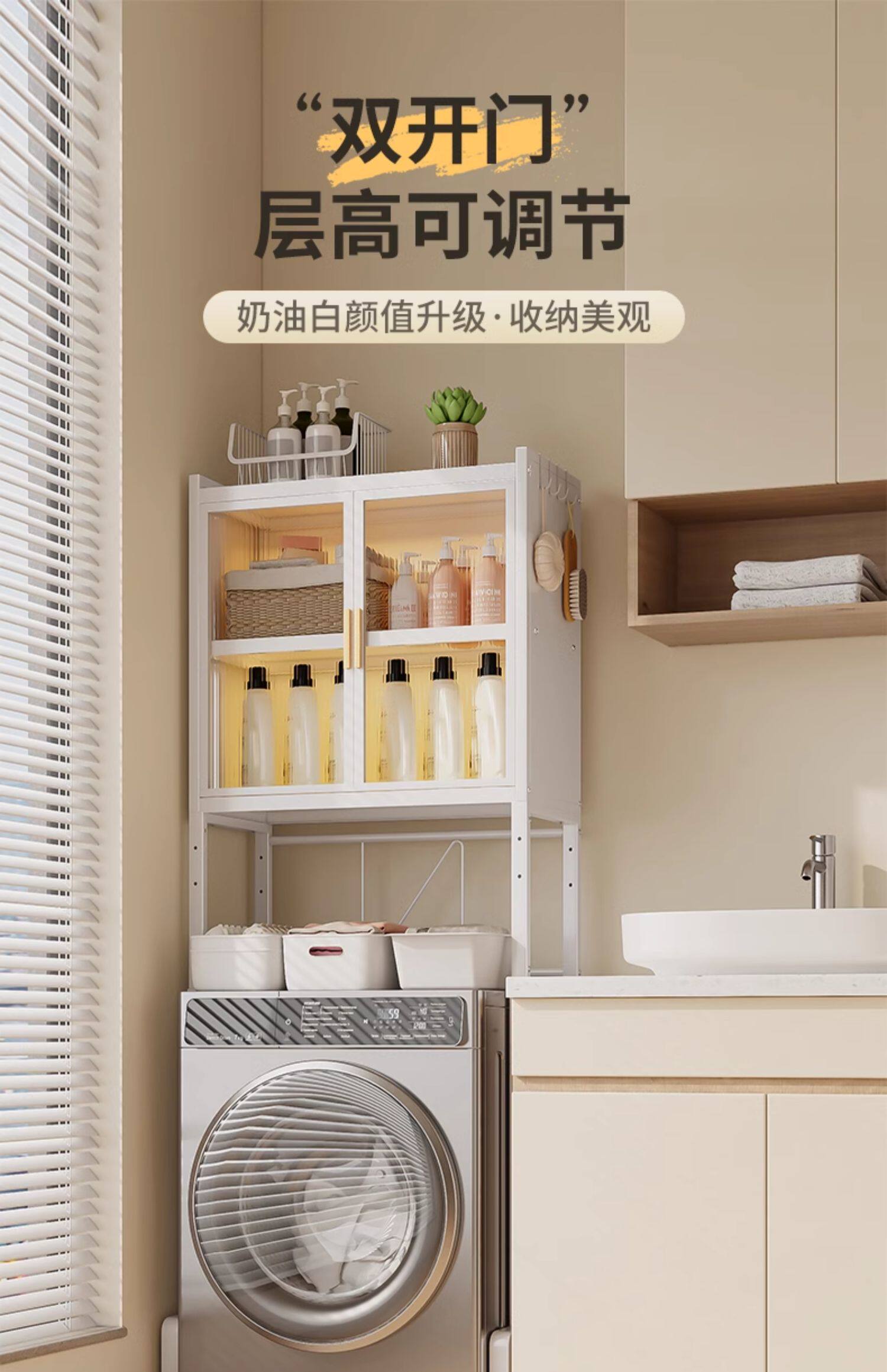 - 【高度可调】3层-双门-皎月白-带灯【滚筒波轮通用】