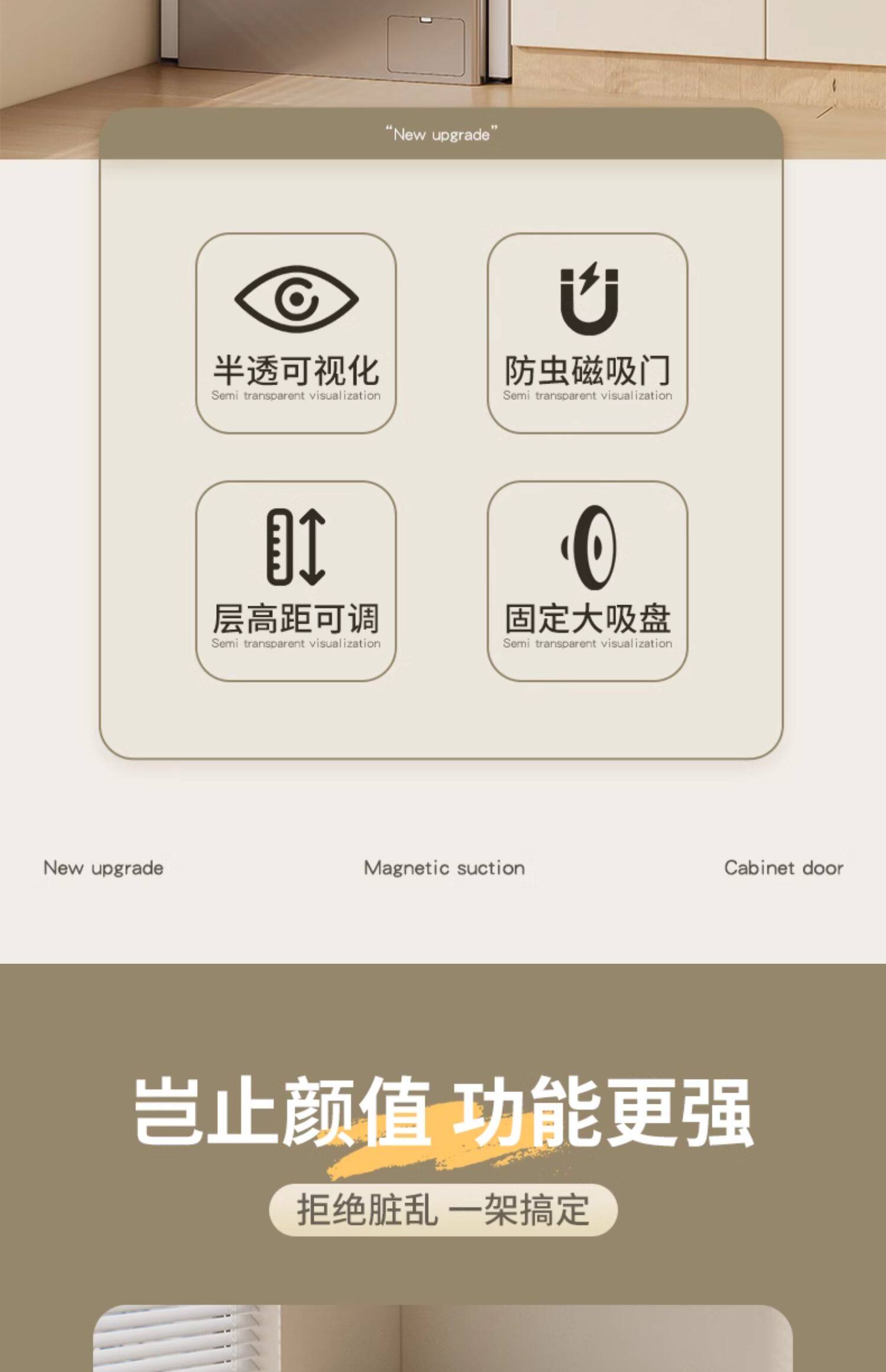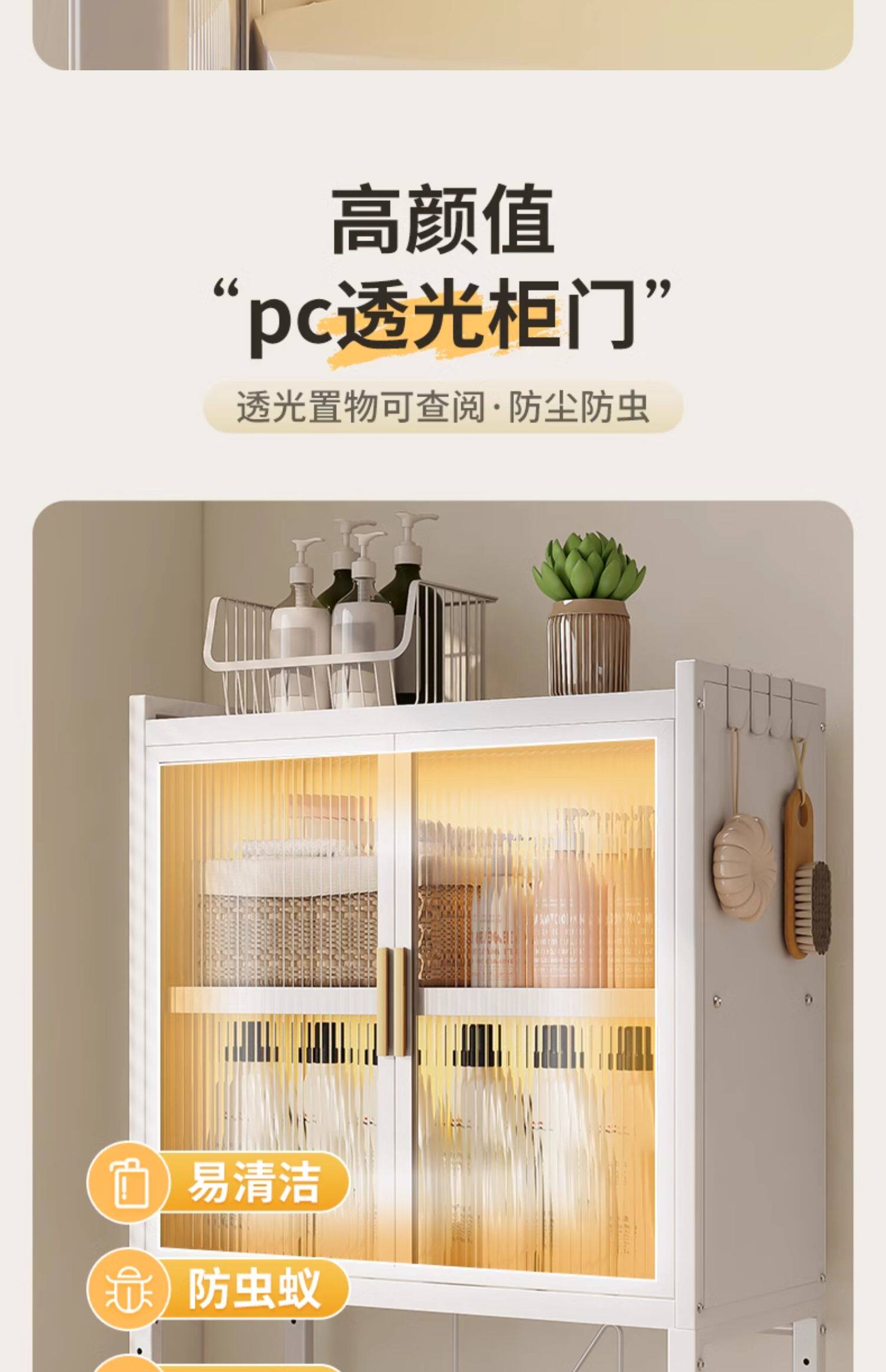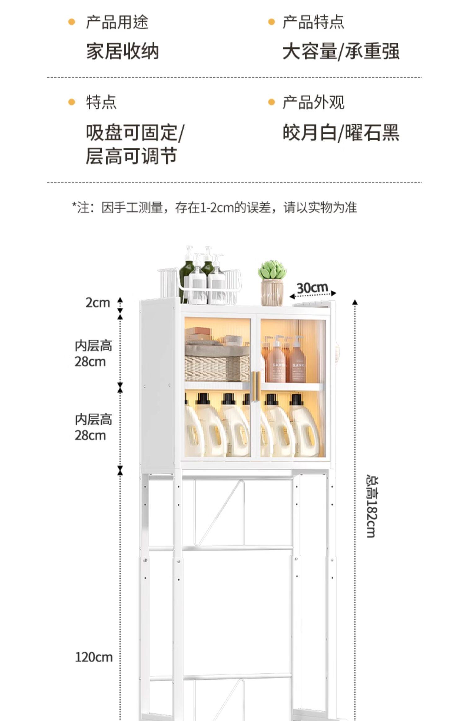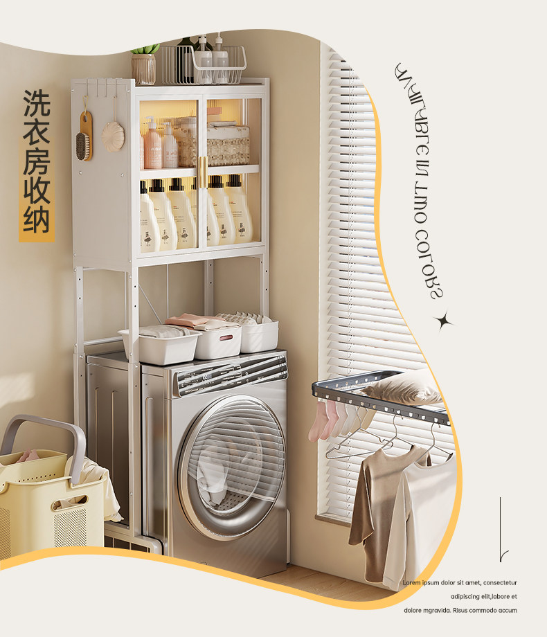 - 【高度可调】3层-双门-皎月白-带灯【滚筒波轮通用】