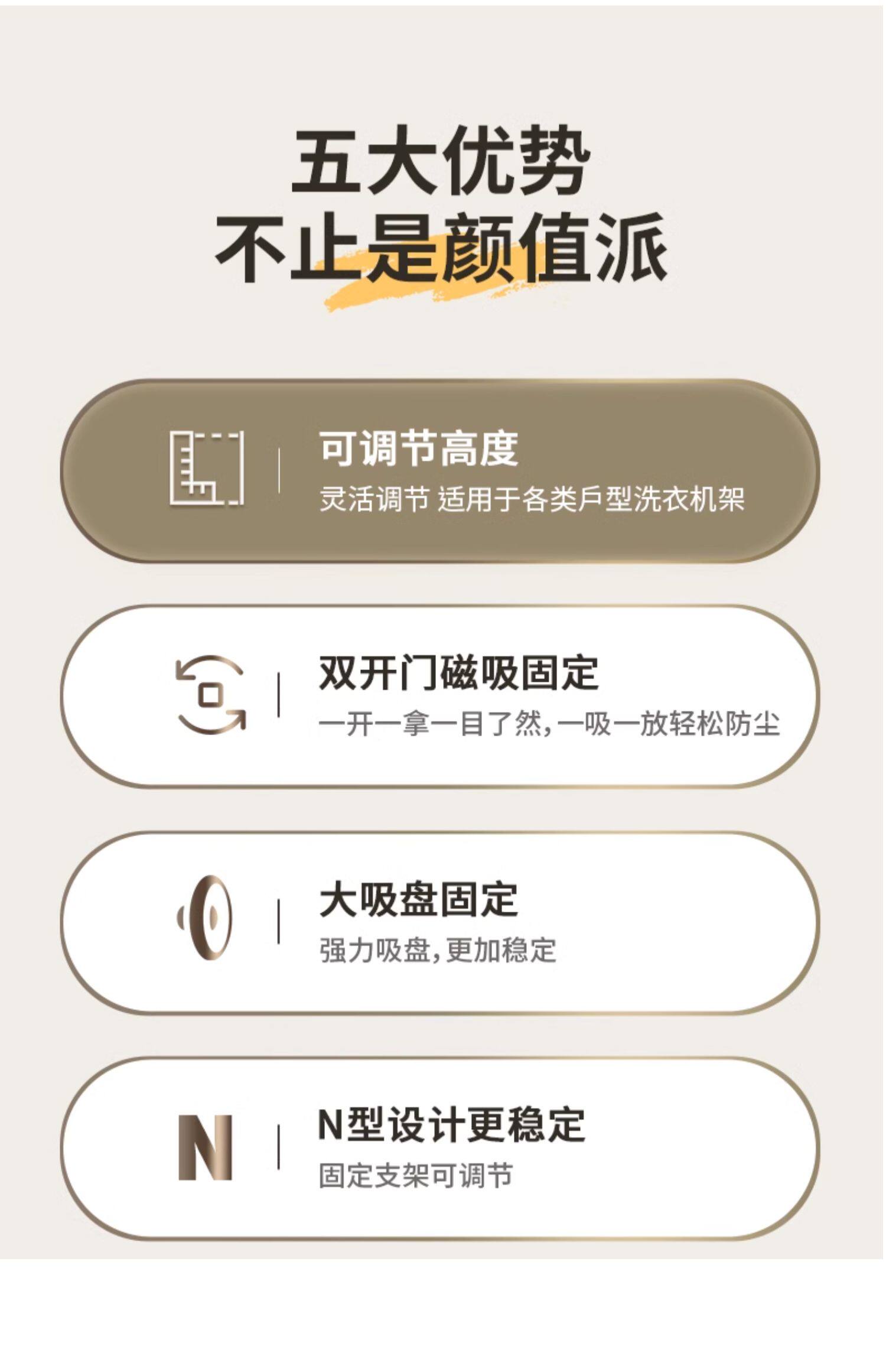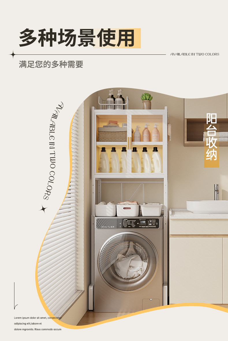 - 【高度可调】3层-双门-皎月白【滚筒波轮通用】