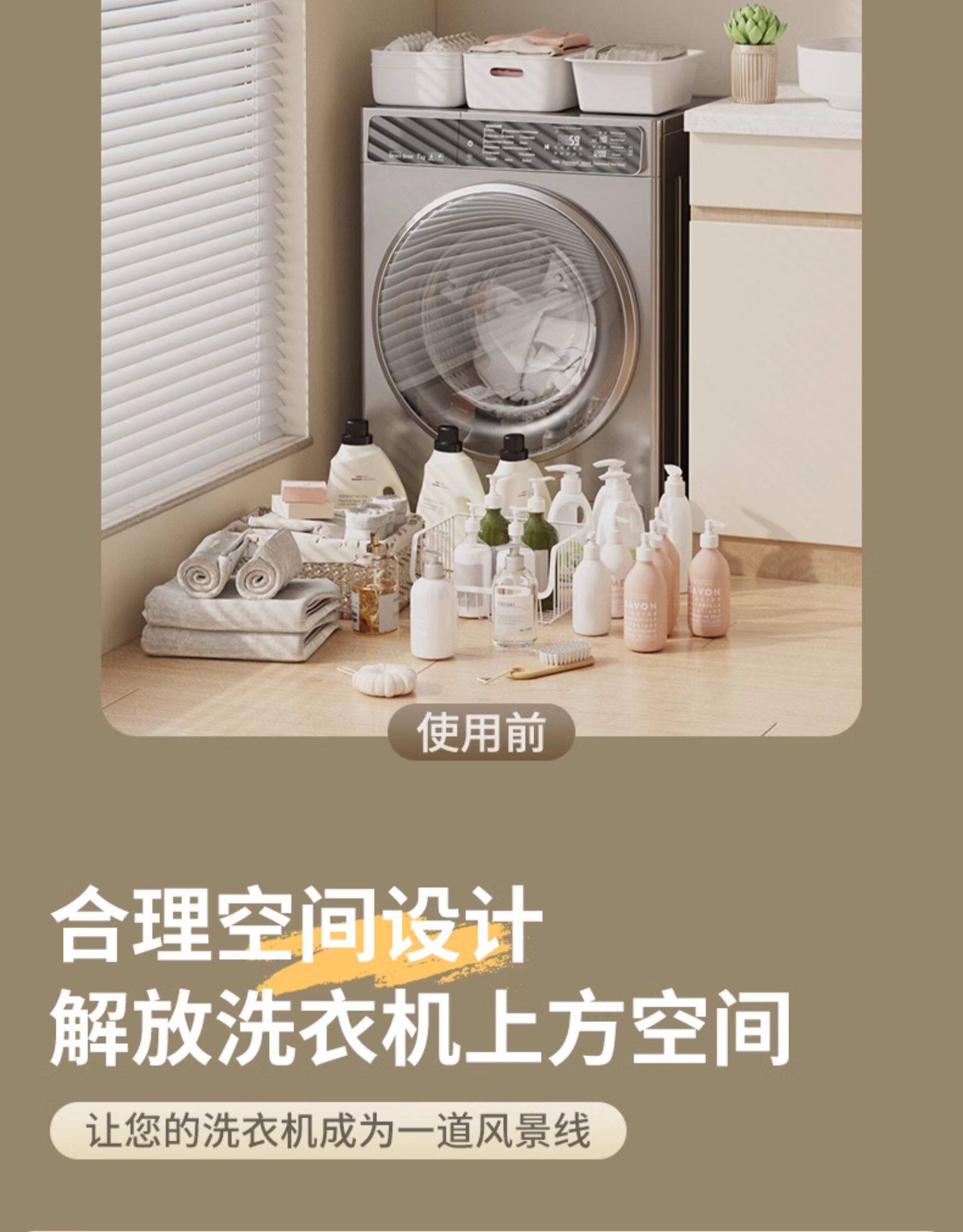 - 【奶油白】3层洗衣机收纳层架(可伸缩51-81CM)【滚筒波轮通用】