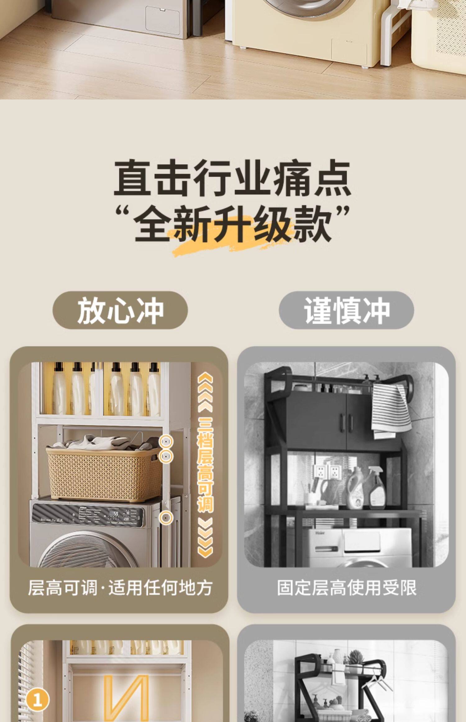 - 【奢韵灰】3层洗衣机收纳层架(可伸缩51-81CM)【滚筒波轮通用】