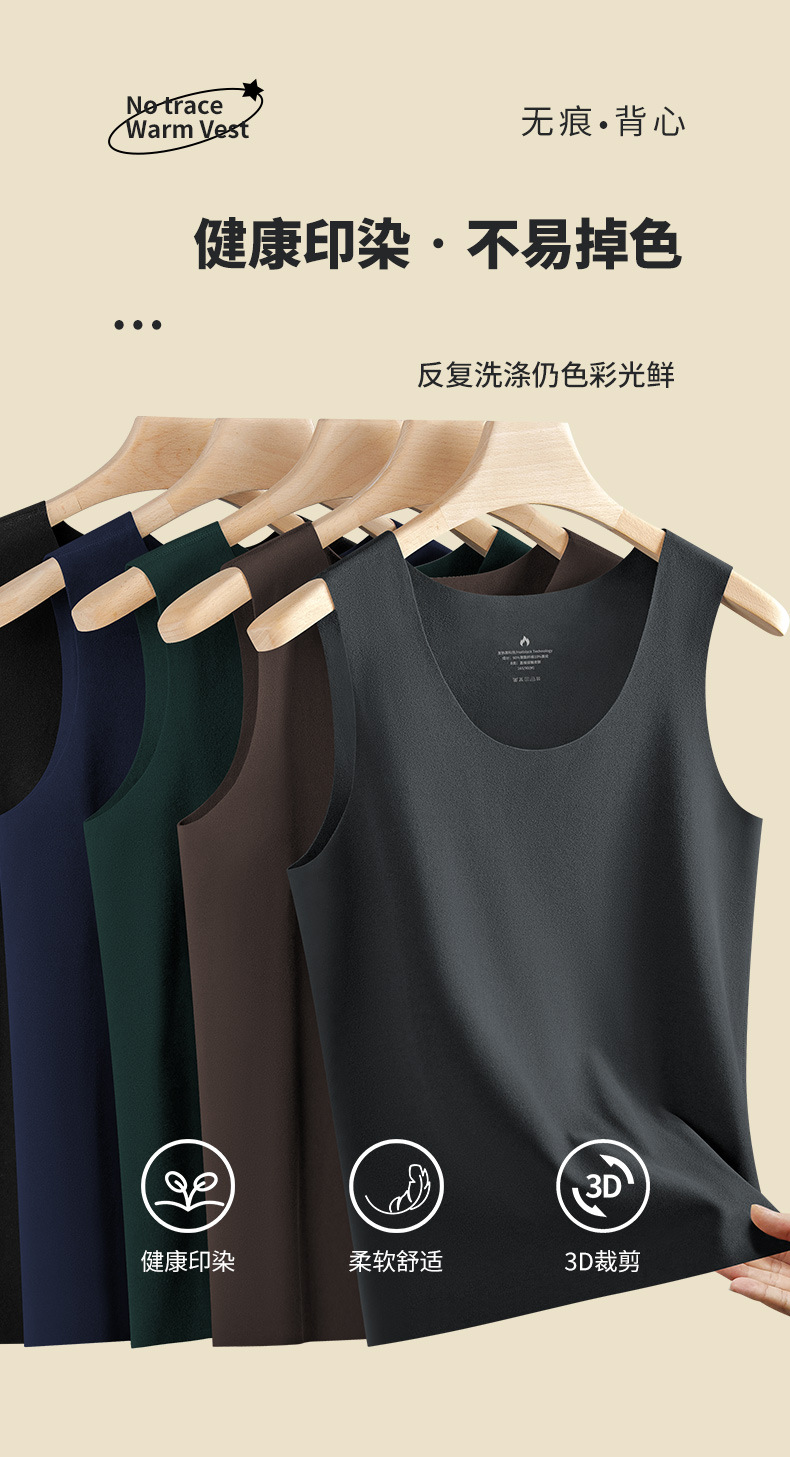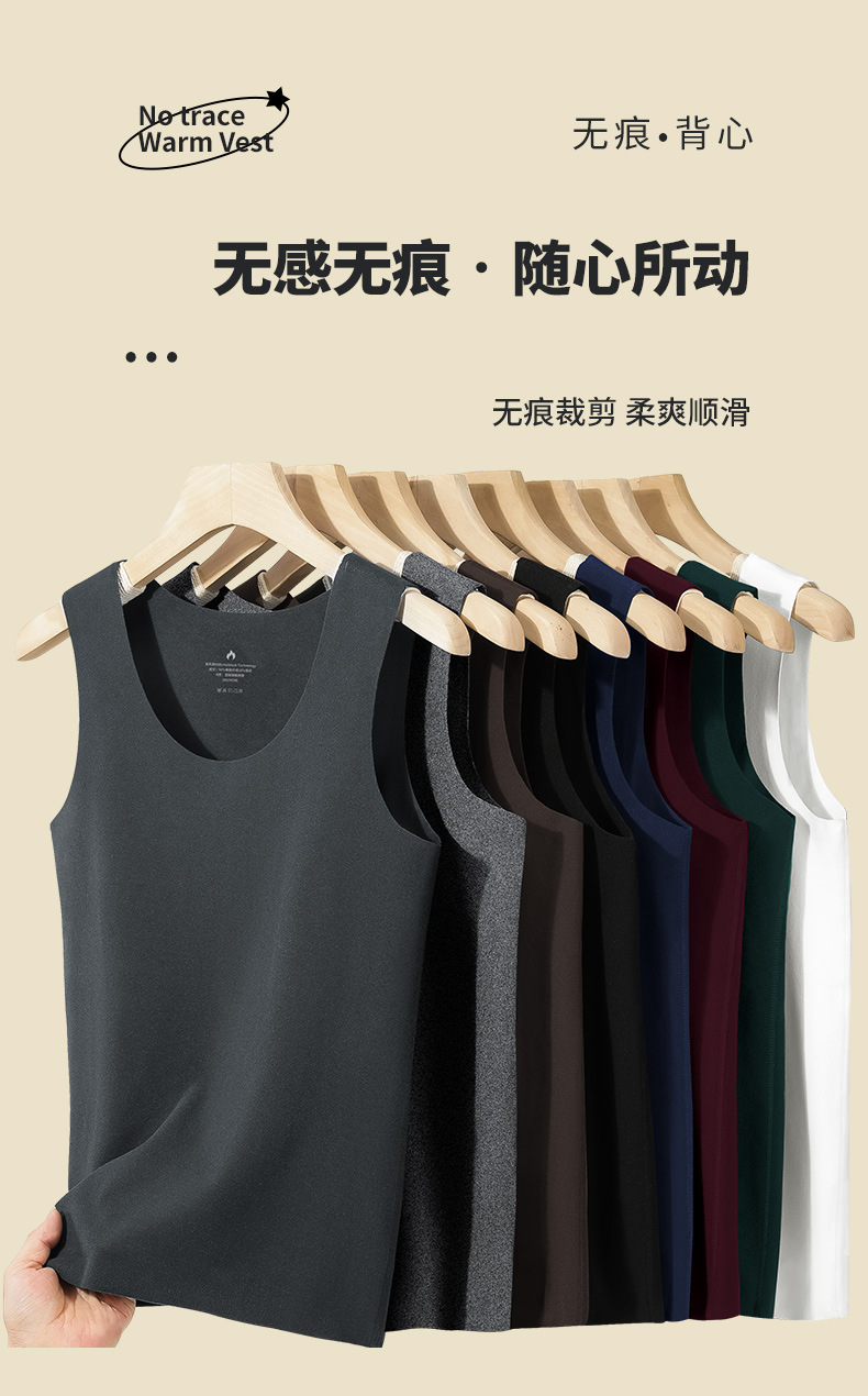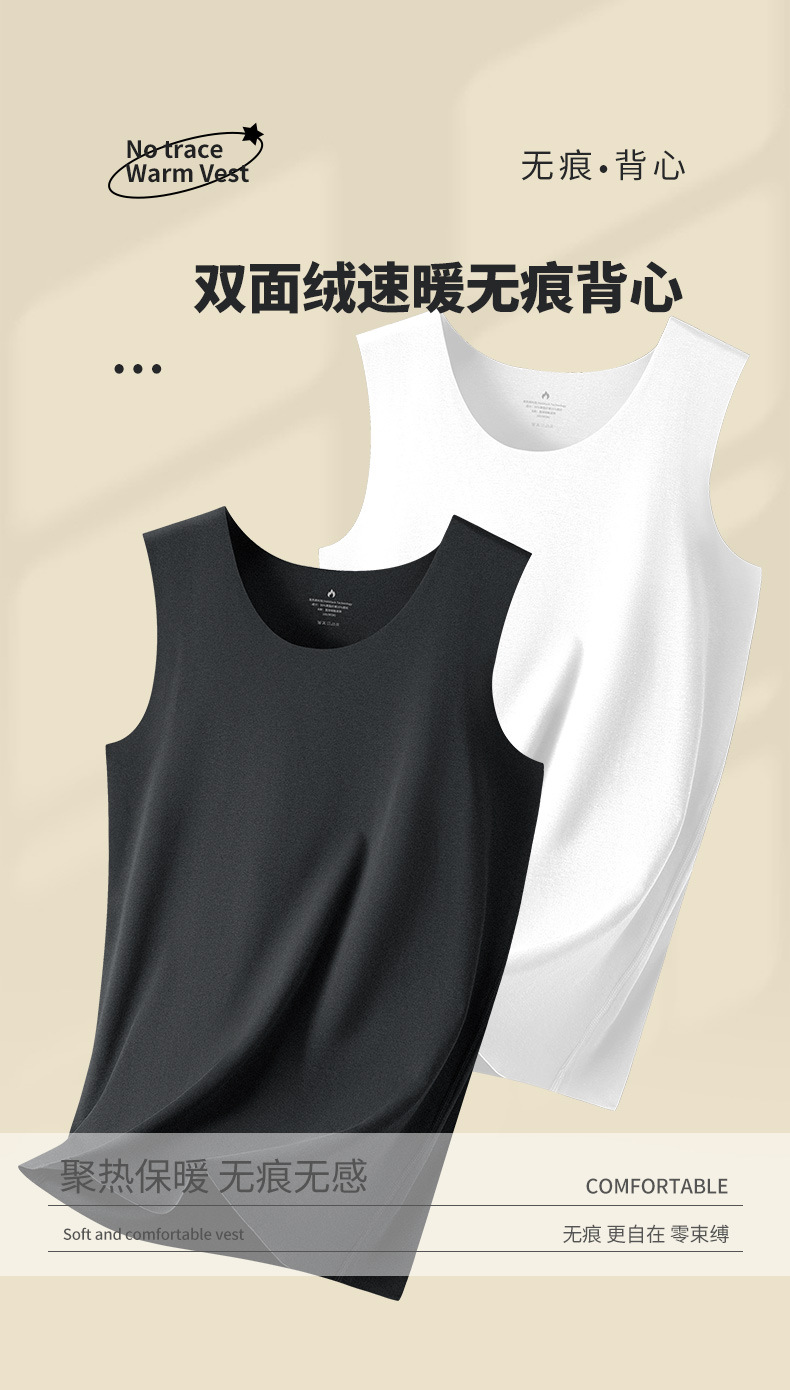 300g双面德绒保暖内衣男士无痕发热加绒加厚背心冬季上衣坎肩马甲