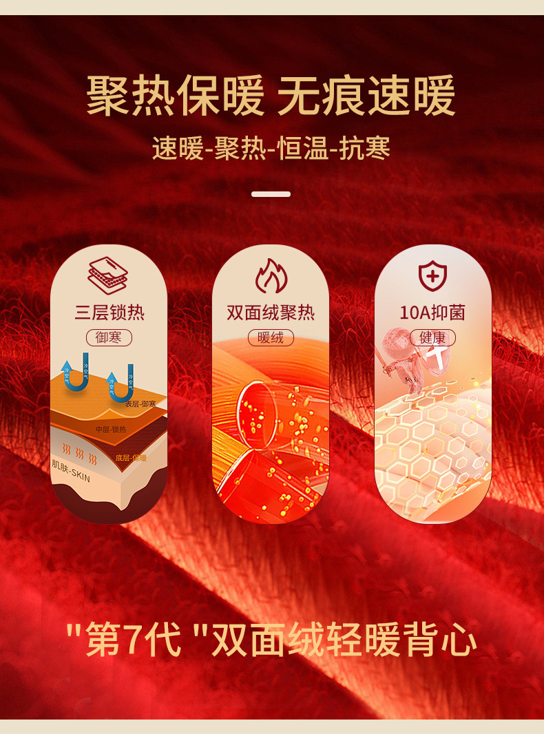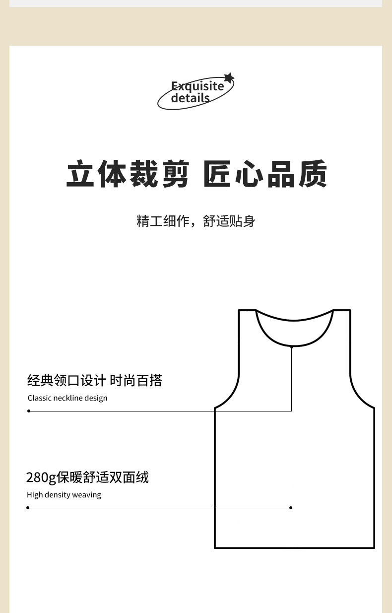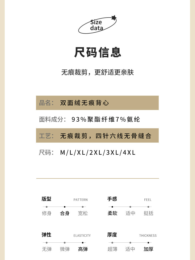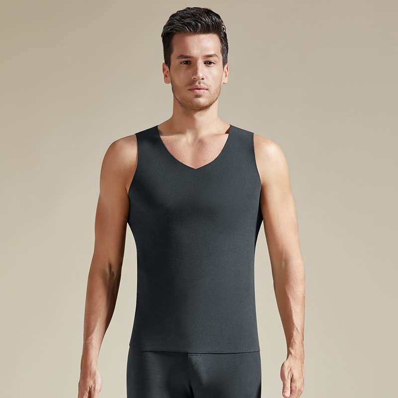 300g双面德绒保暖内衣男士无痕发热加绒加厚背心冬季上衣坎肩马甲