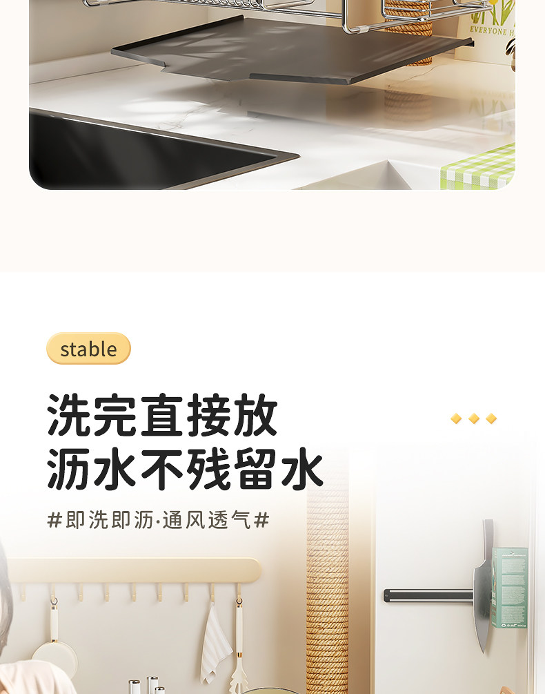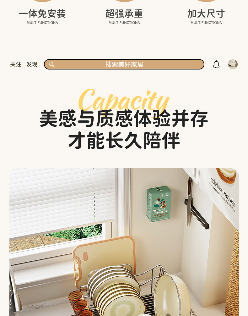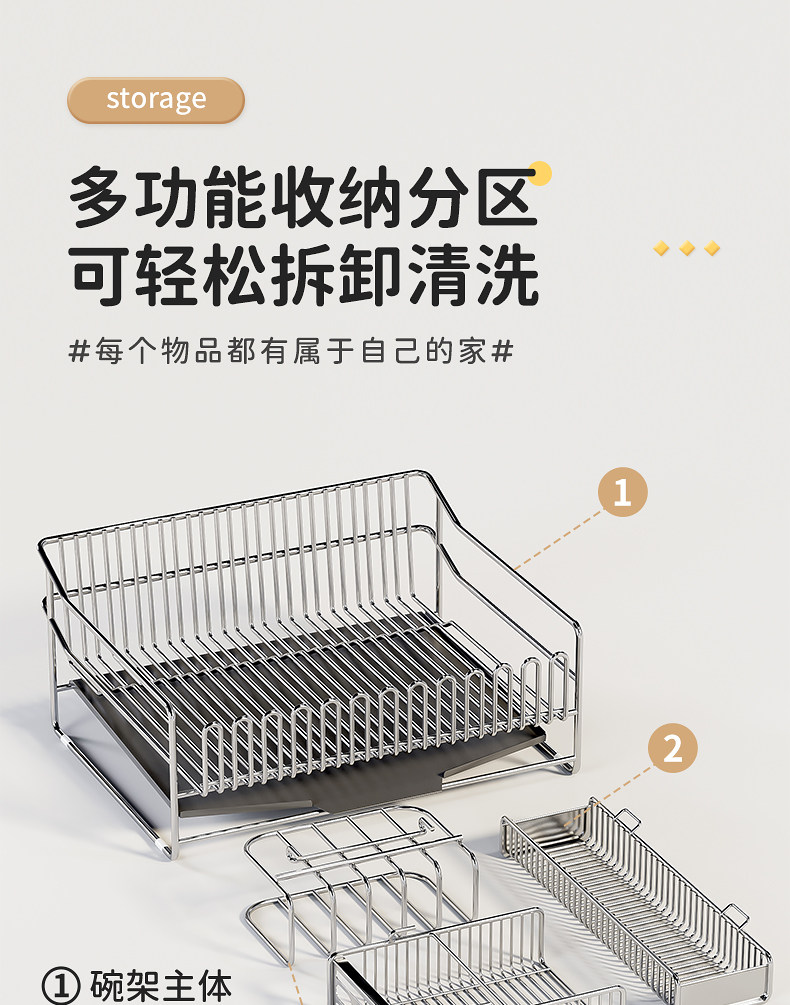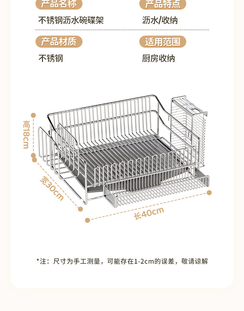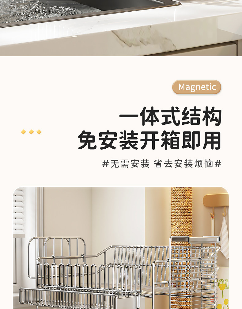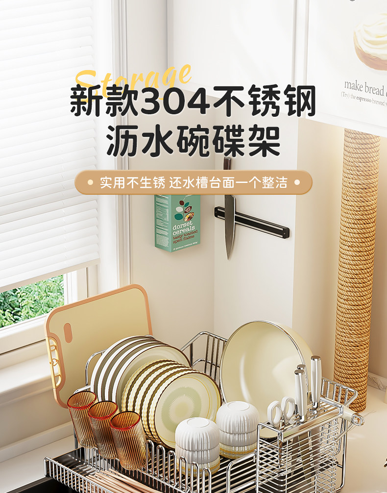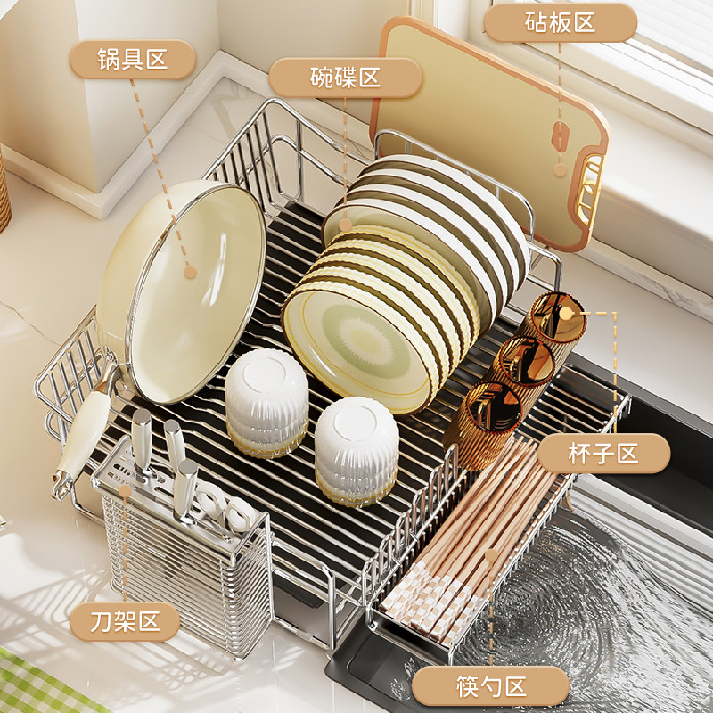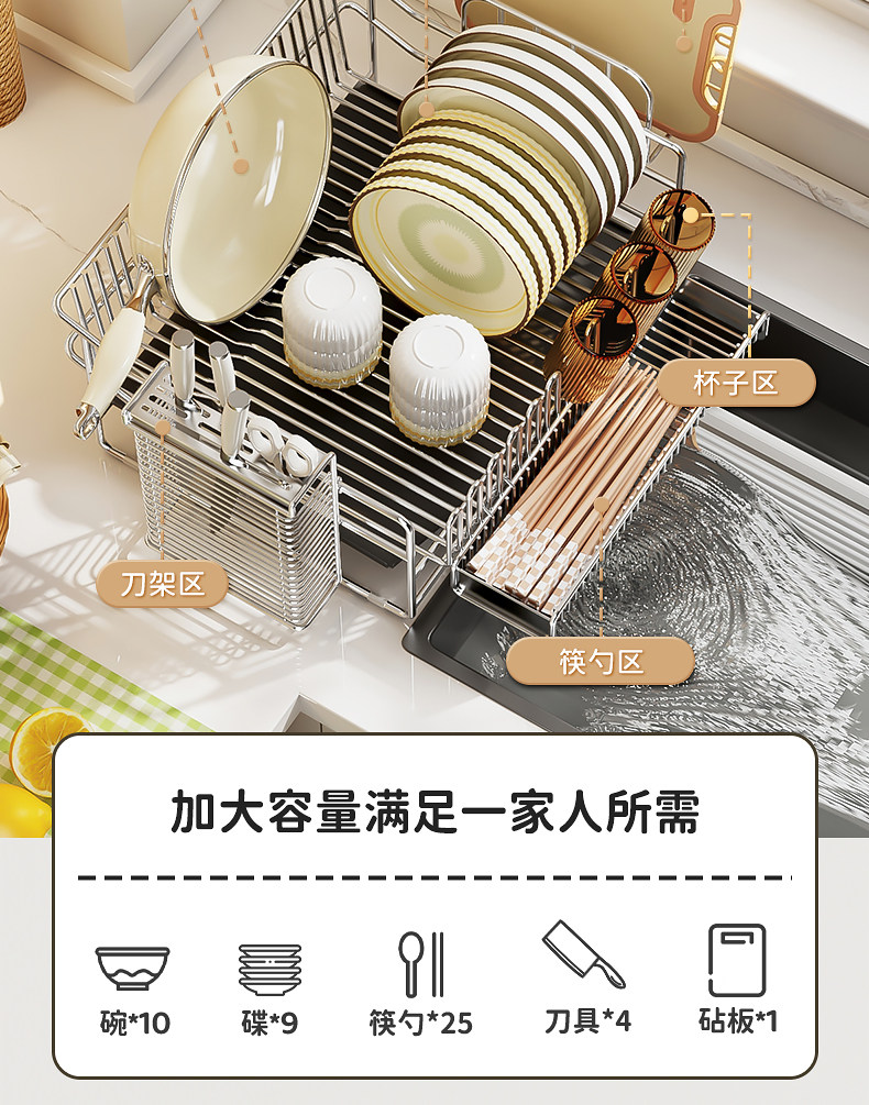 - 免安装【304不锈钢升级款】碗碟沥水架+刀架
