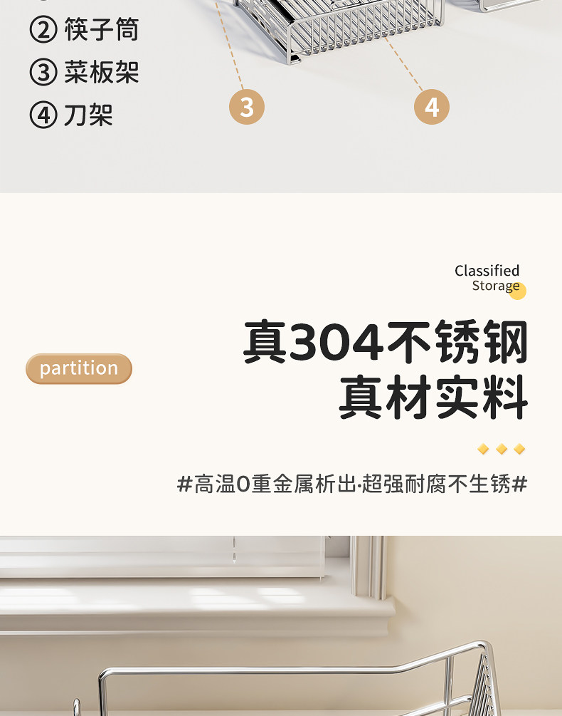 - 免安装【304不锈钢升级款】碗碟沥水架+刀架+砧板架+筷子架