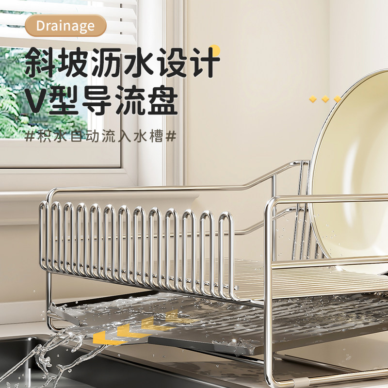 - 免安装【304不锈钢升级款】碗碟沥水架+砧板架