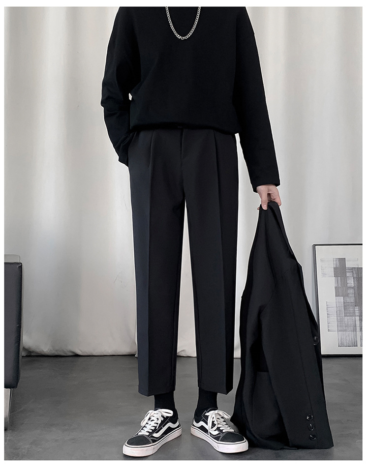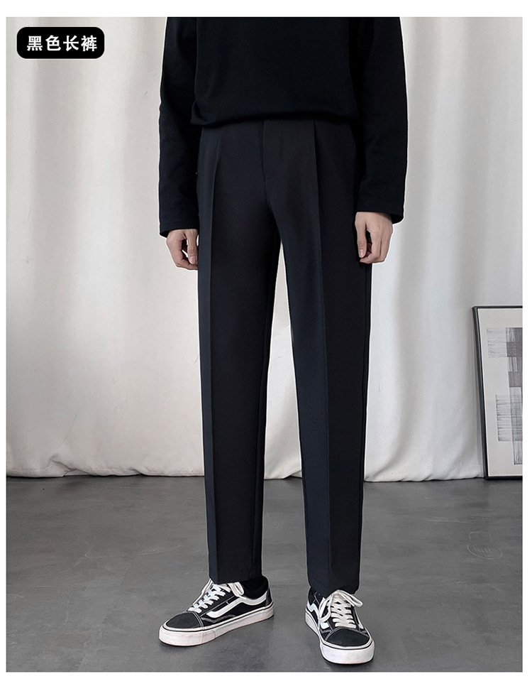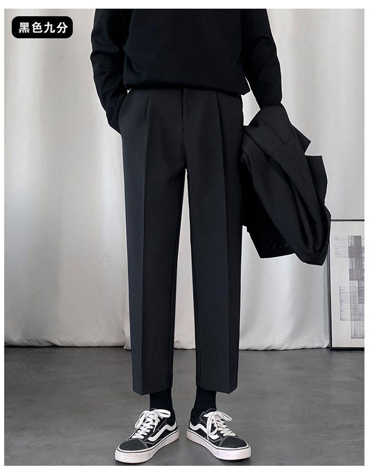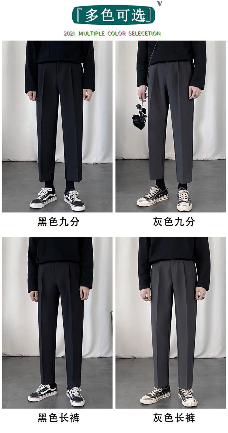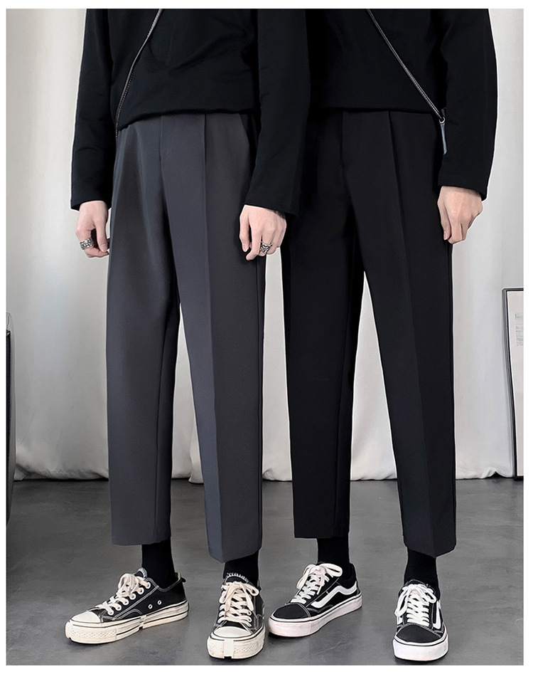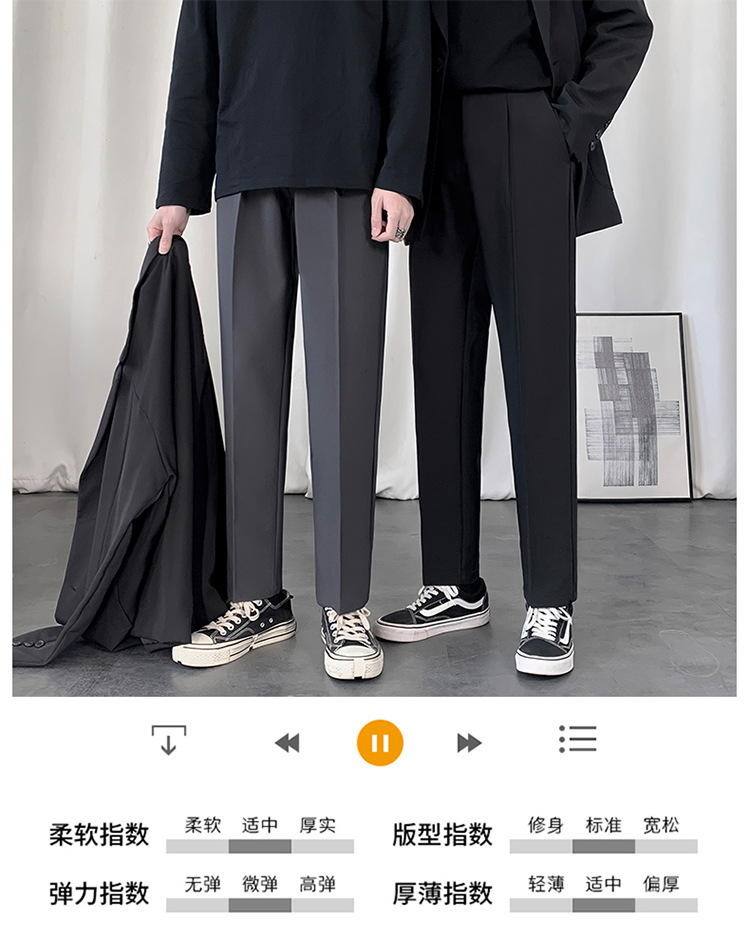 LKTM男装#男士西装裤夏季宽松直筒松紧腰轻熟风九分休闲小西裤男