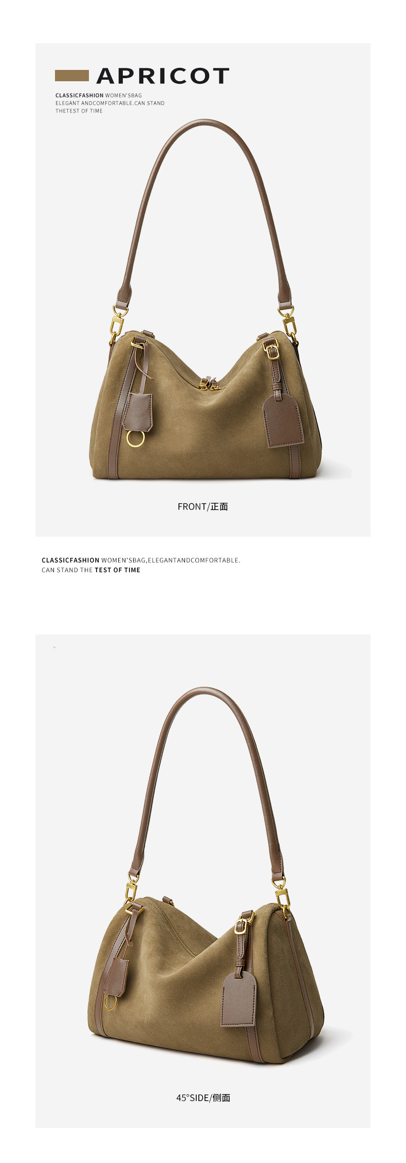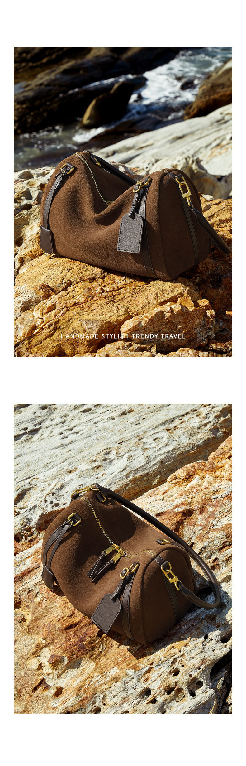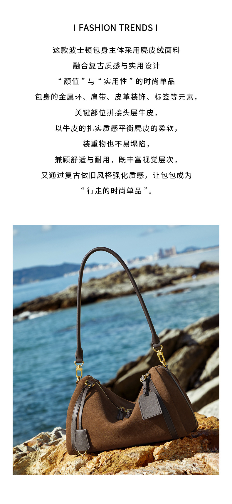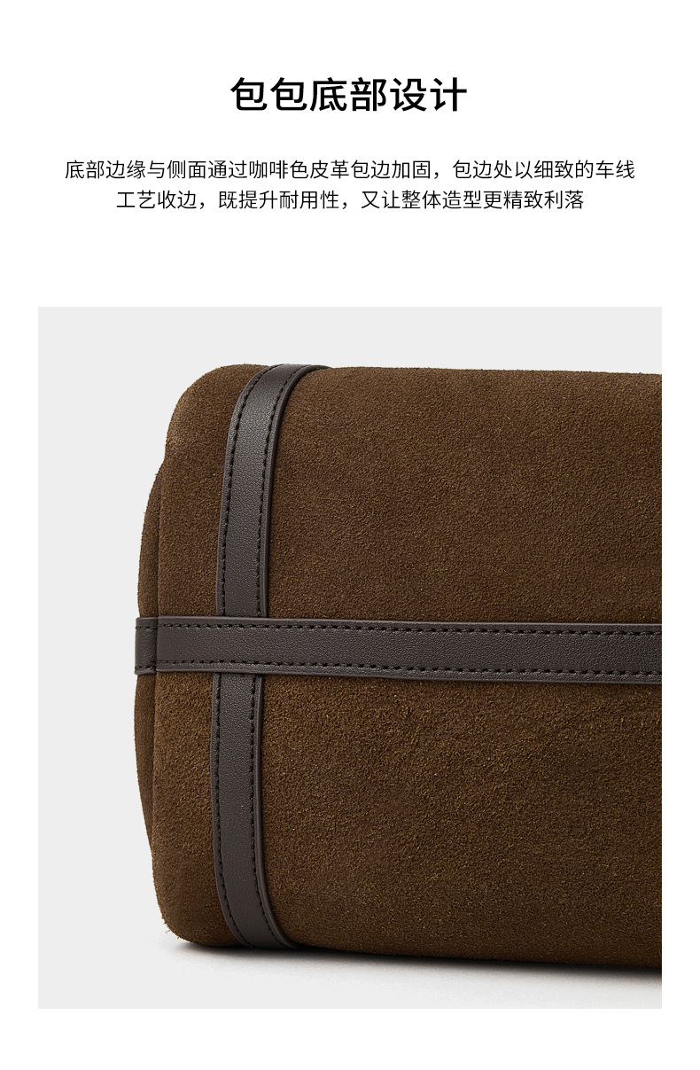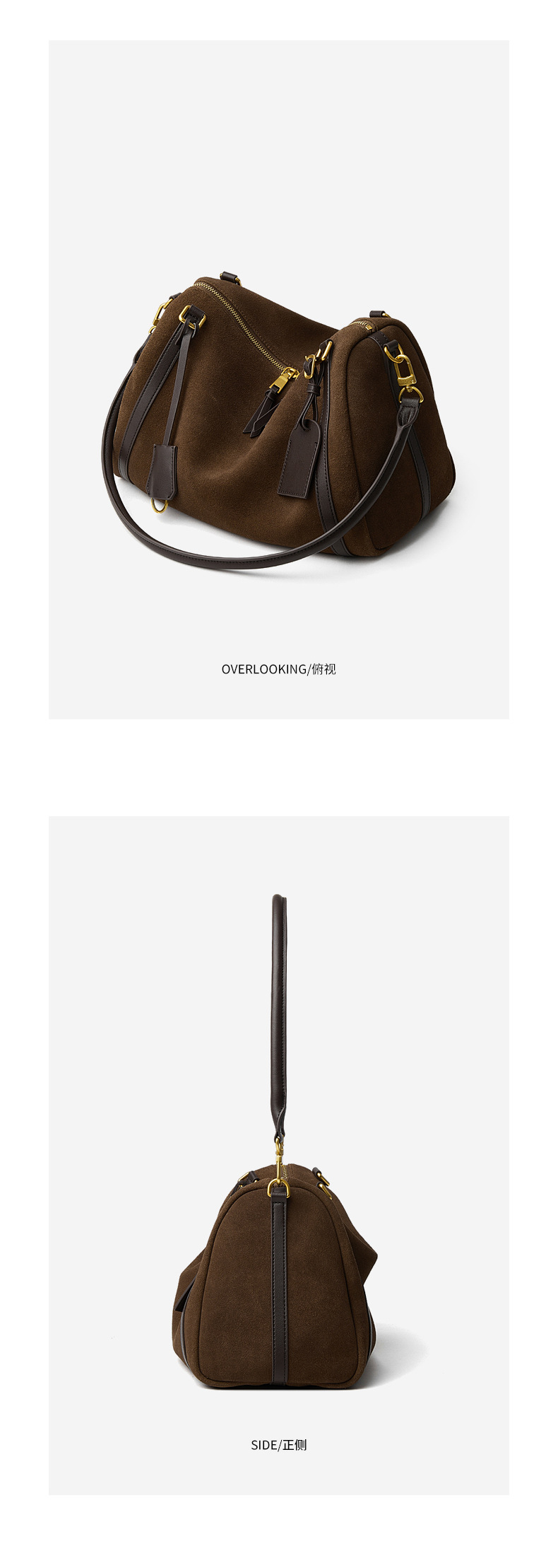 磨砂牛皮保龄球包大容量通勤百搭波士顿单肩斜挎包鹿皮绒托特女包